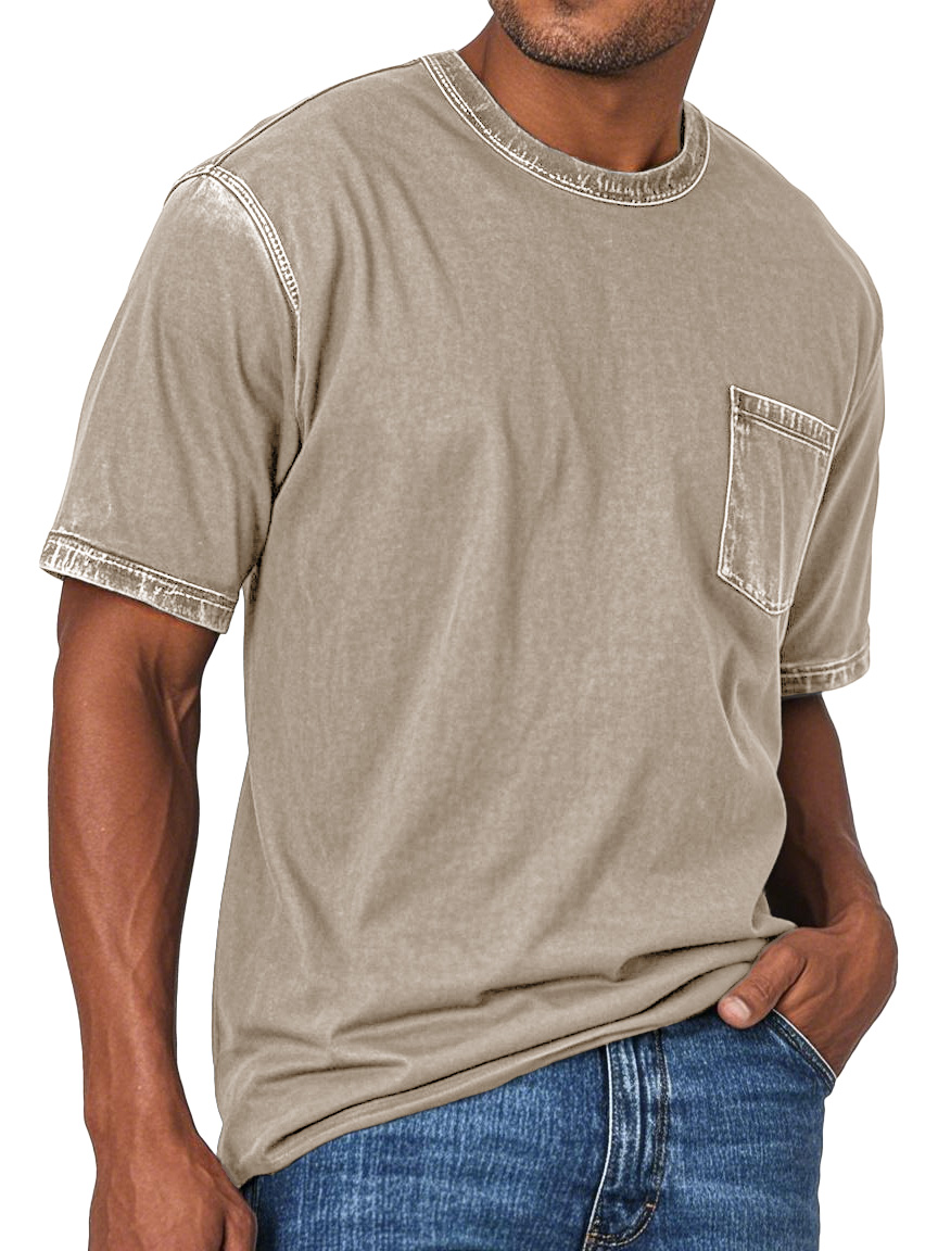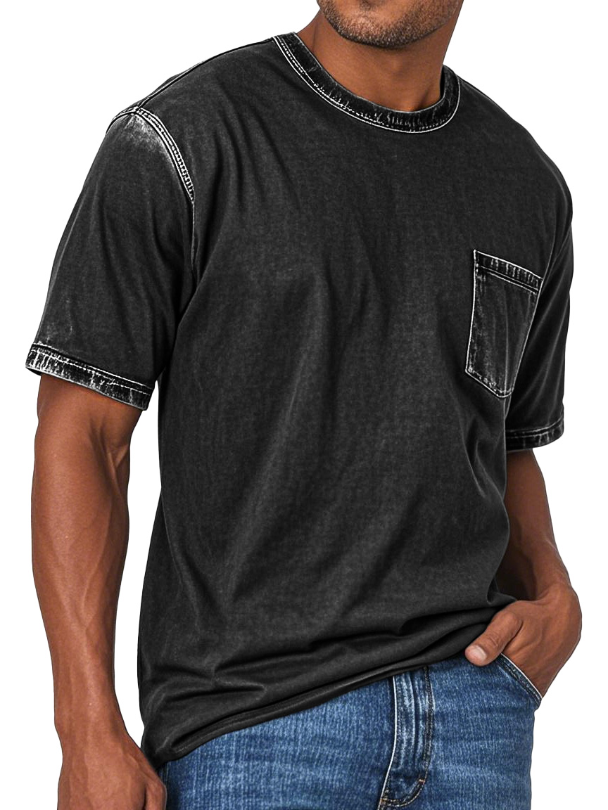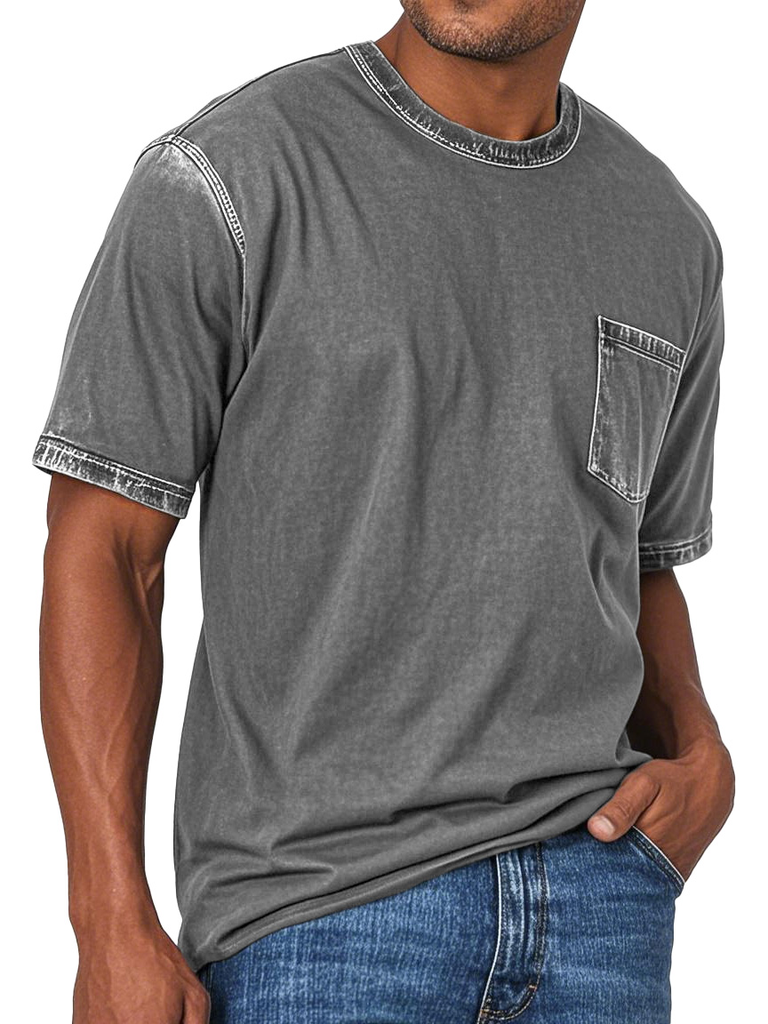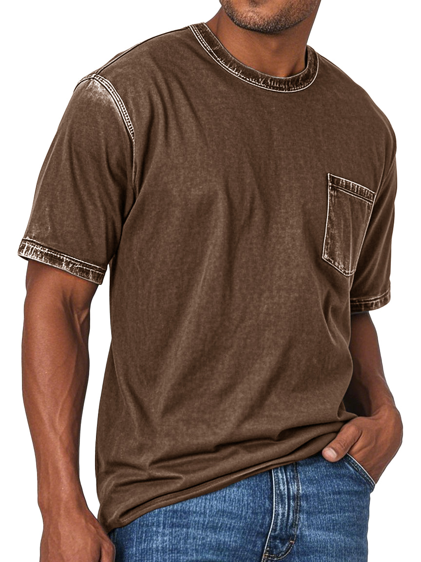 Men's Fashion Retro Washed Round Neck Pocket Short Sleeve T-shirt