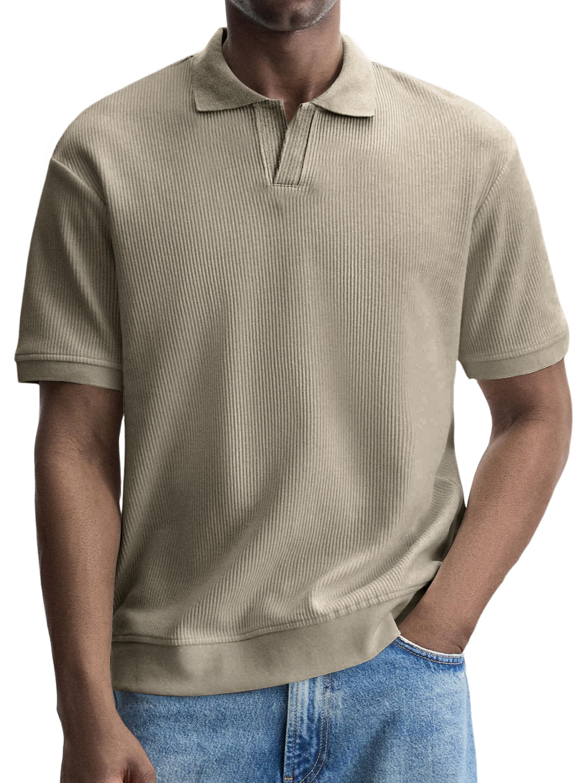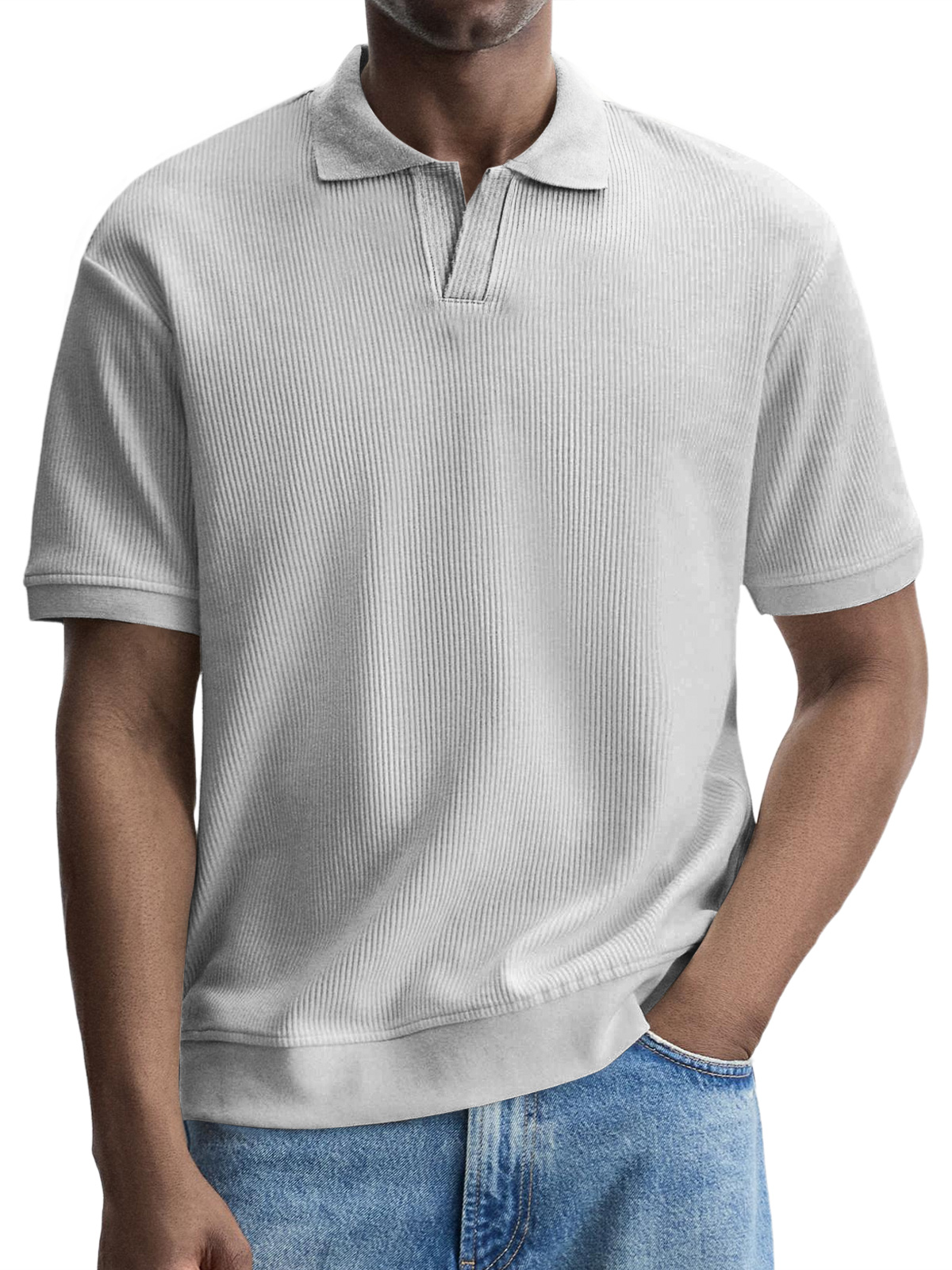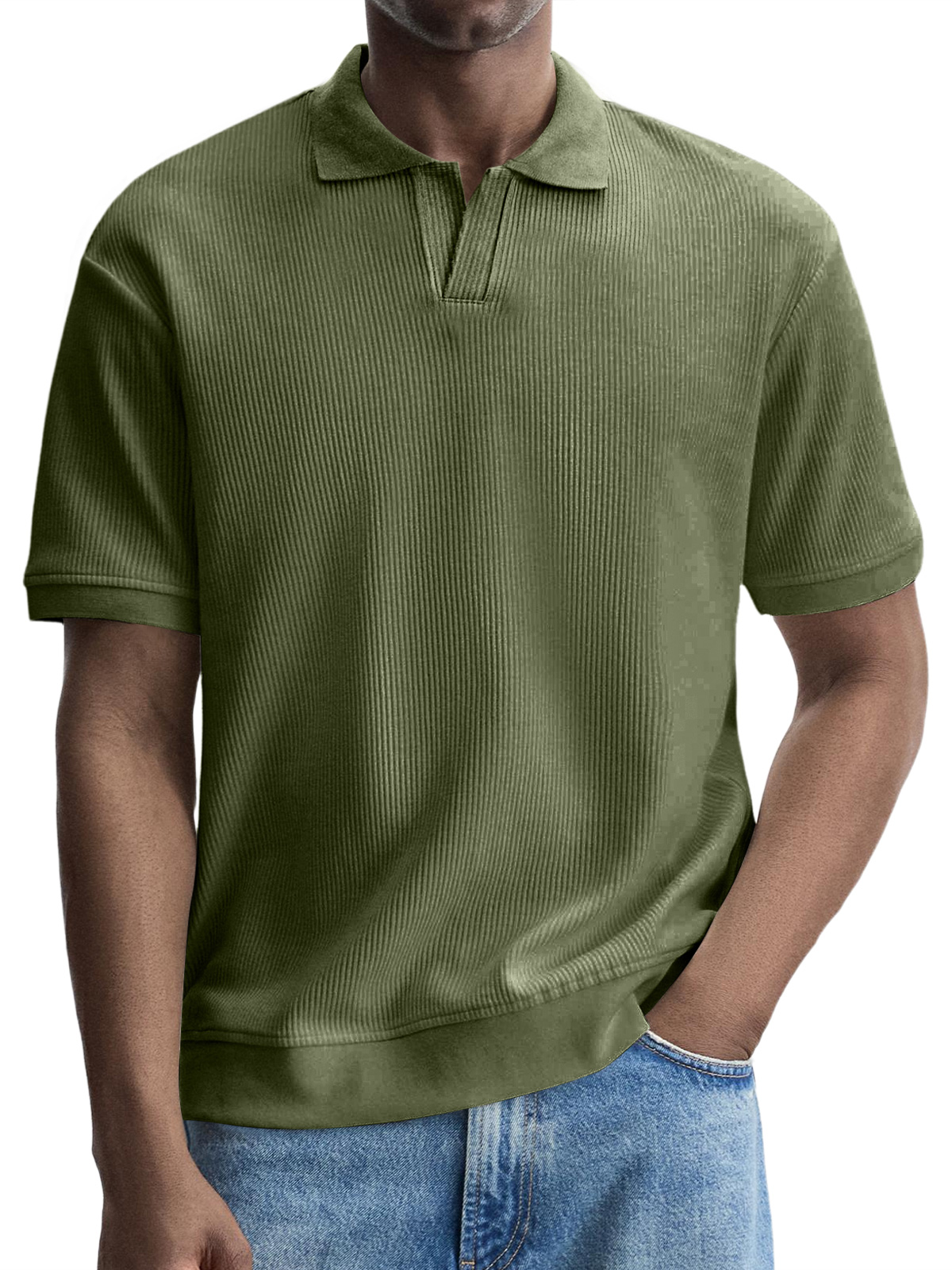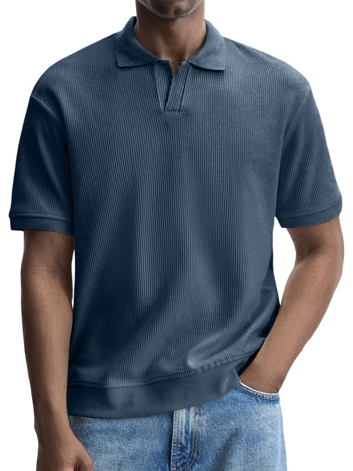 Men's Fashionable Casual Pitted V-neck Solid Color Short-sleeved Polo Shirt