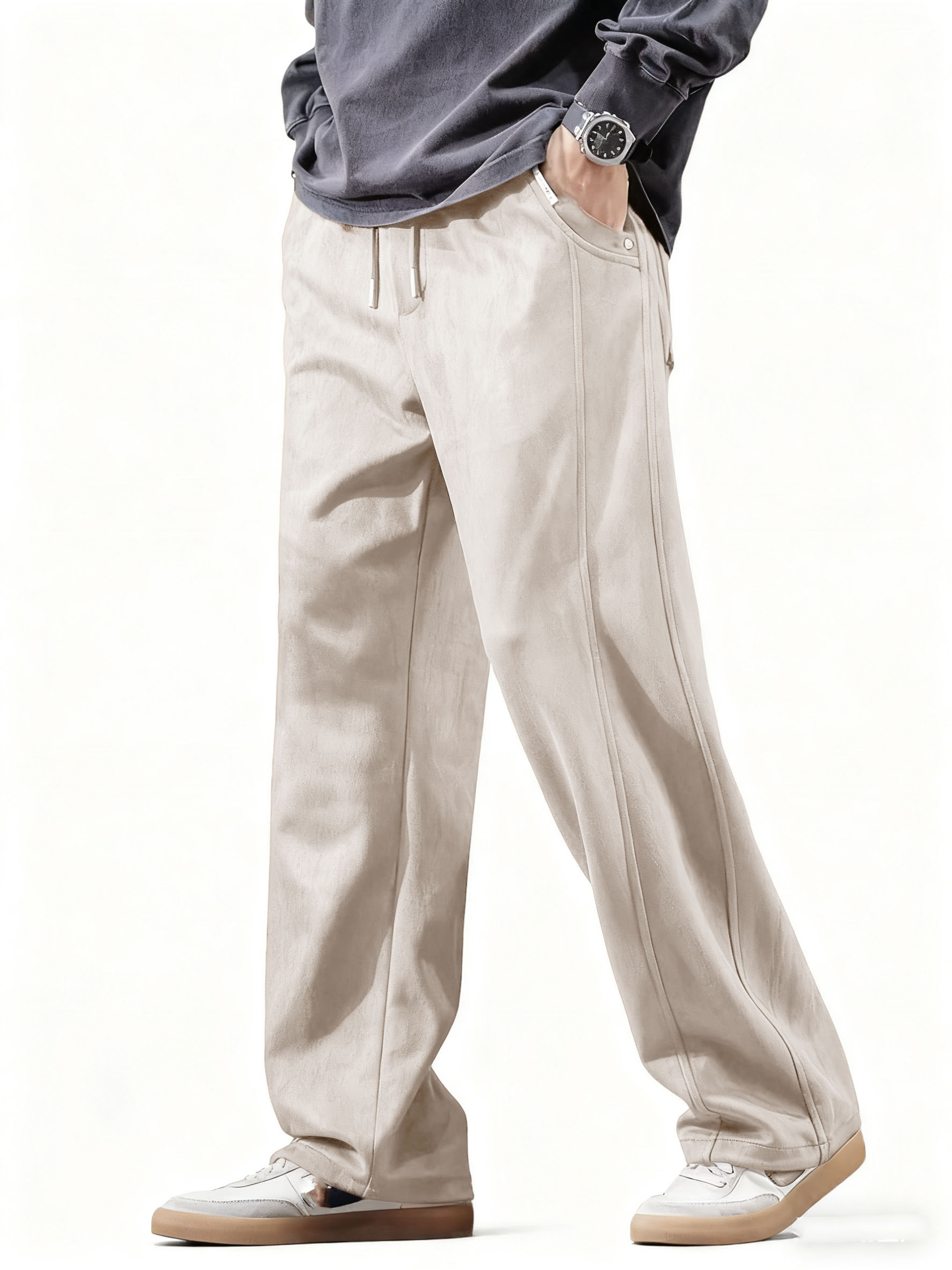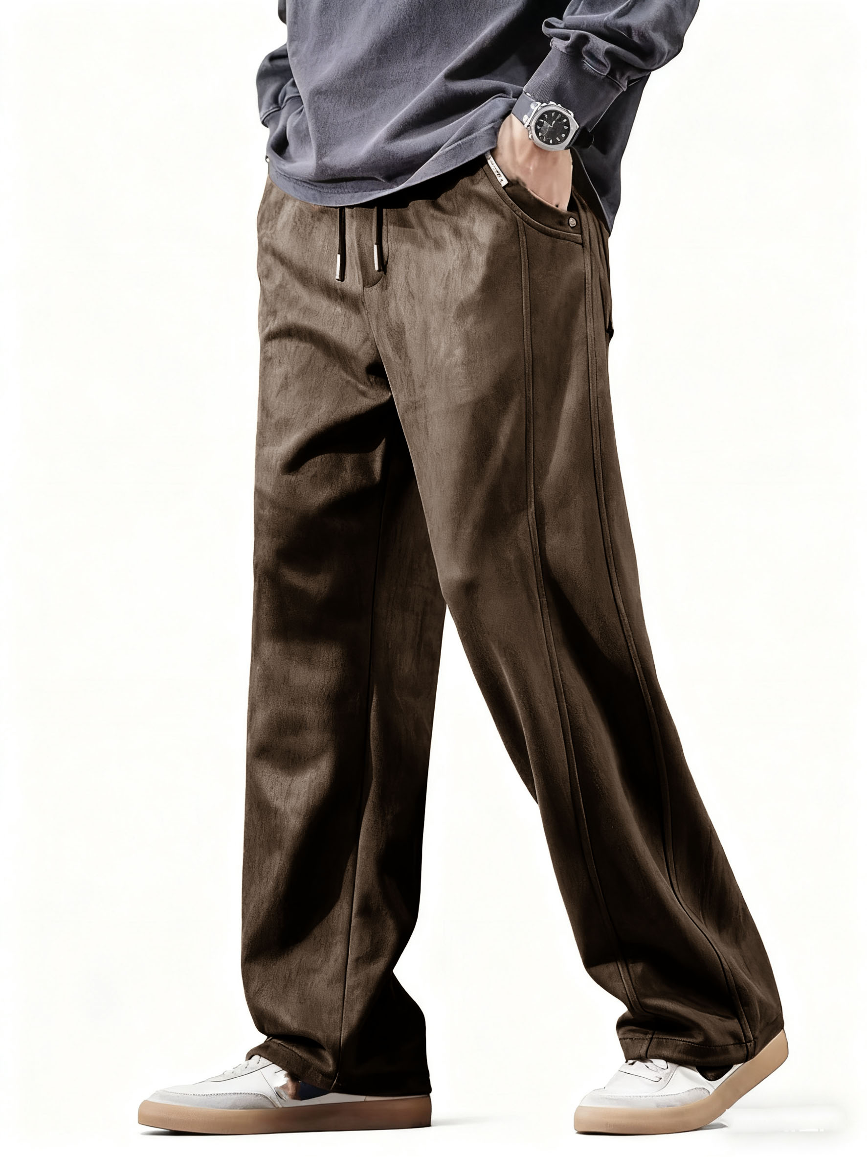 Men's Fashionable Casual Suede Fabric Loose-fitting Pocket Drawstring Elastic Trousers