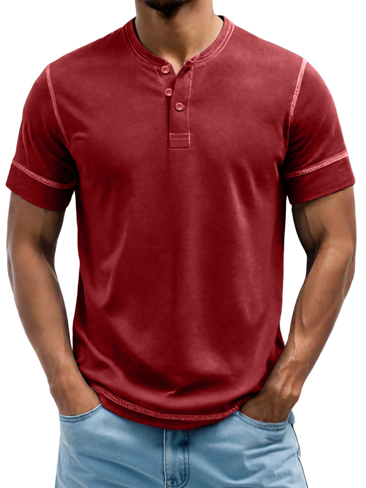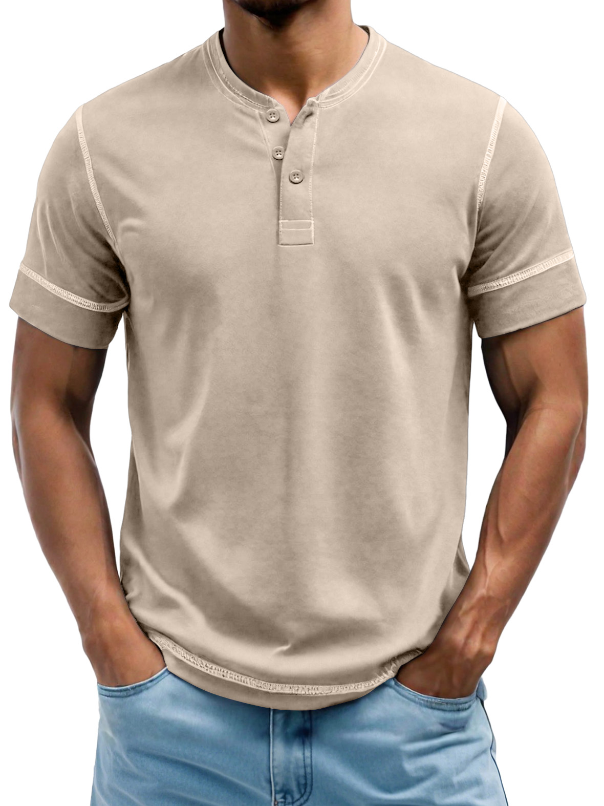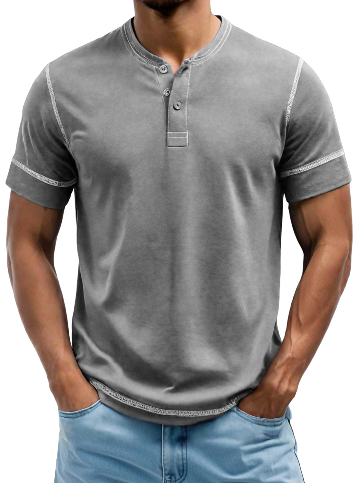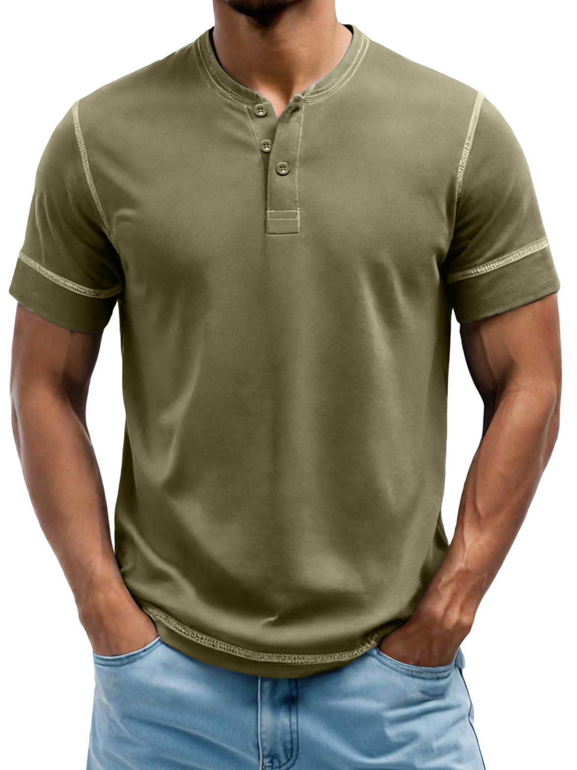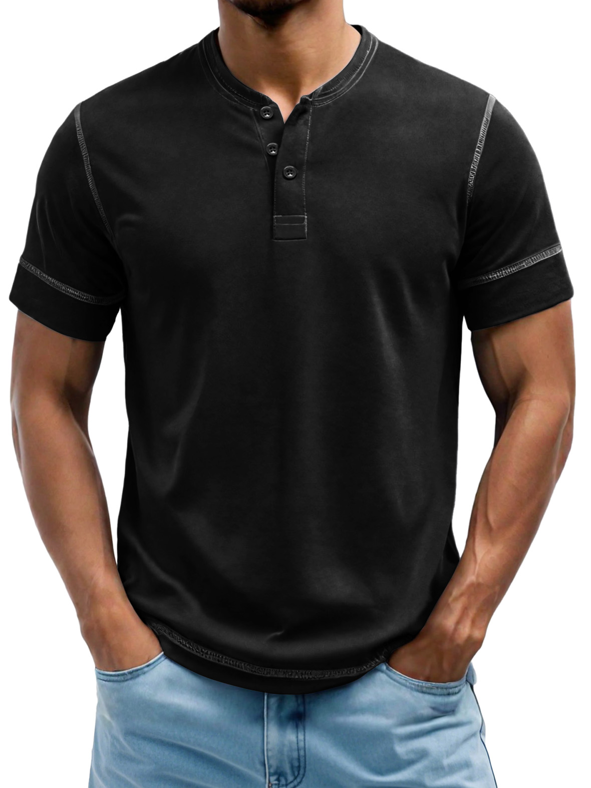 Men's Henry Elastic Cotton Daily Casual T-shirt