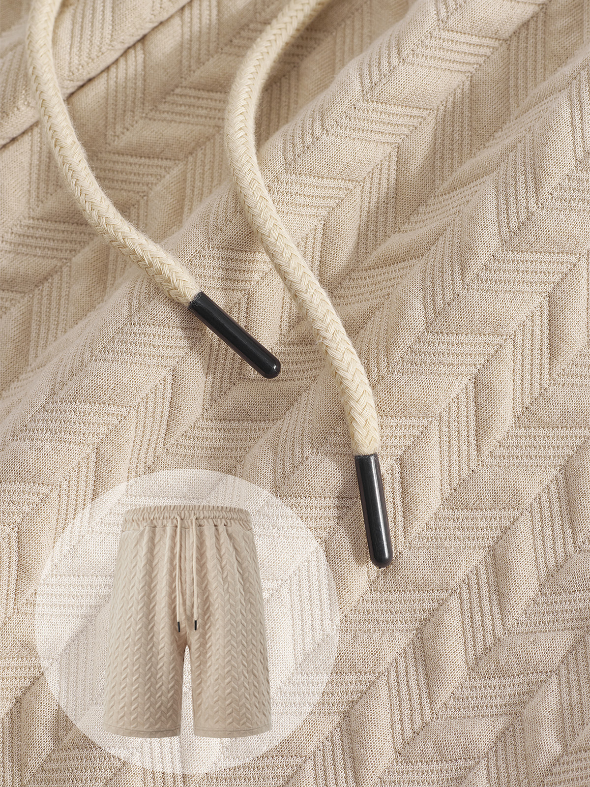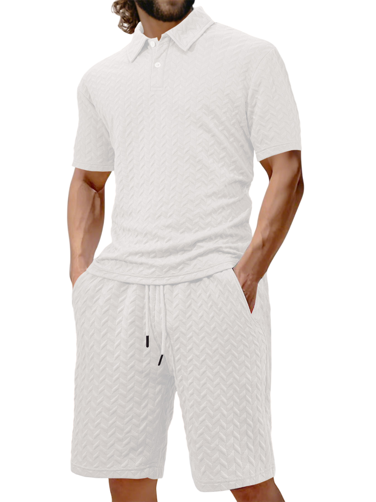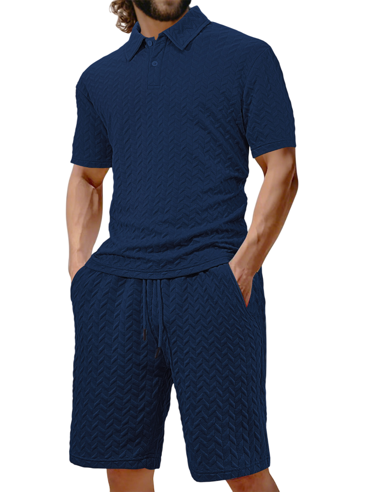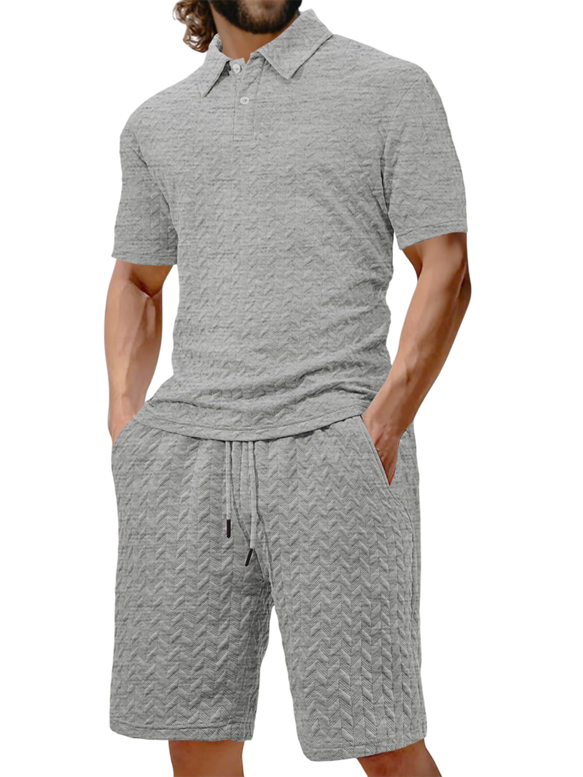Men's Jacquard Texture Holiday Casual Polo Shirt Lapel Short-sleeved Shorts Suit