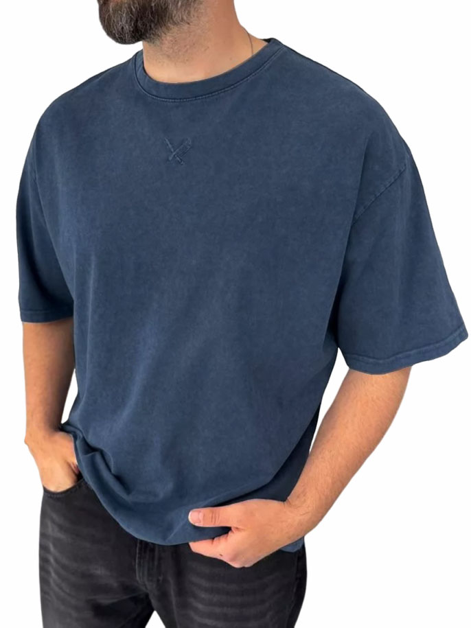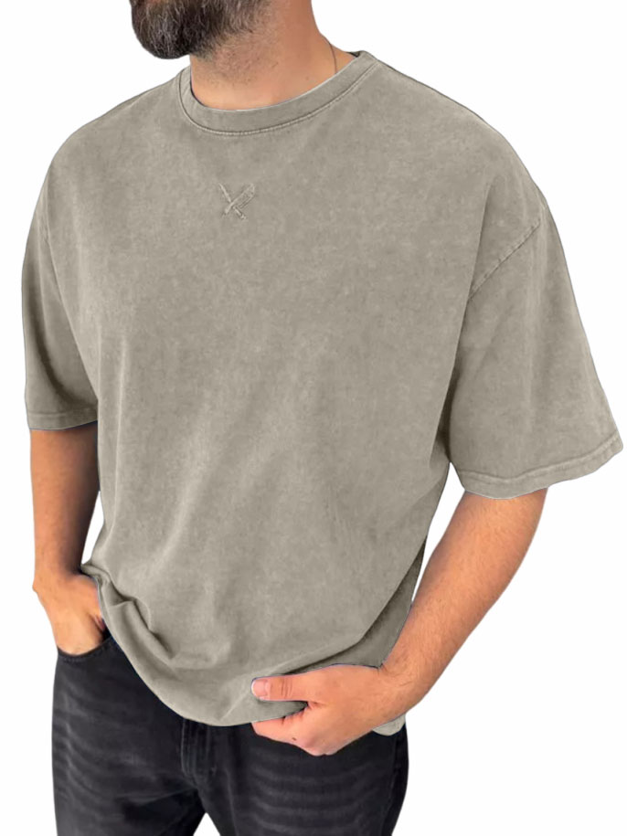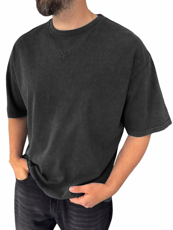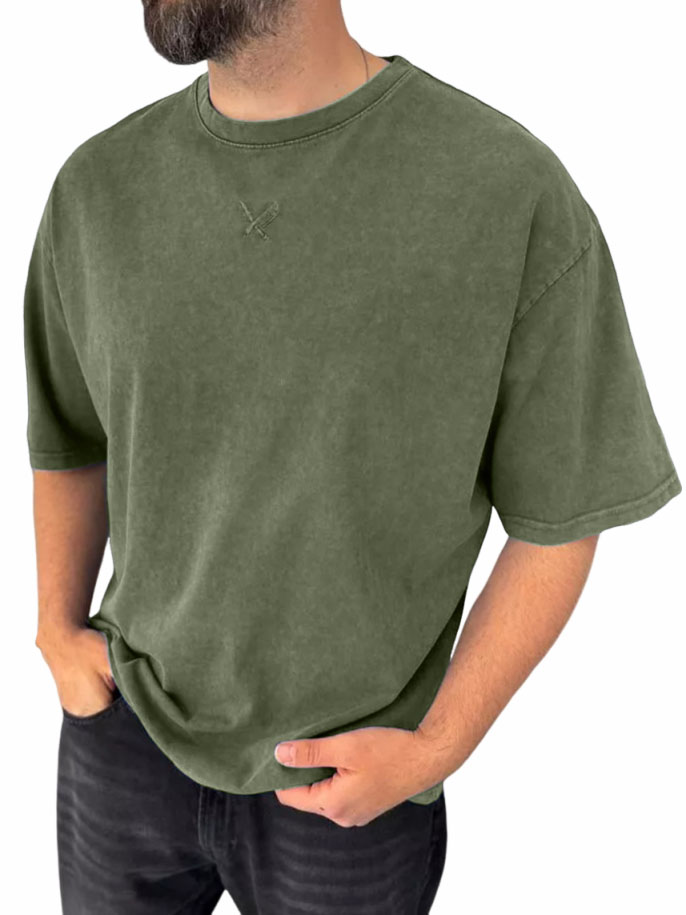 Men's Pure Cotton Washed And Distressed Retro Fashion Short-sleeved T-shirt