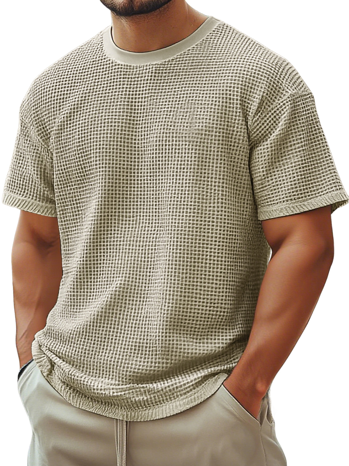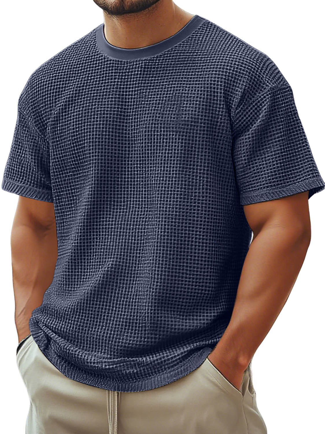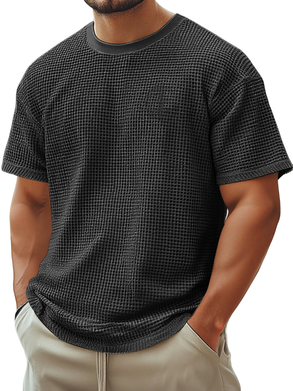 Men's Retro Crew Neck Waffle Casual Short Sleeve T-Shirt