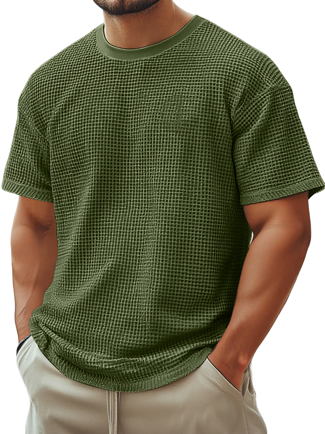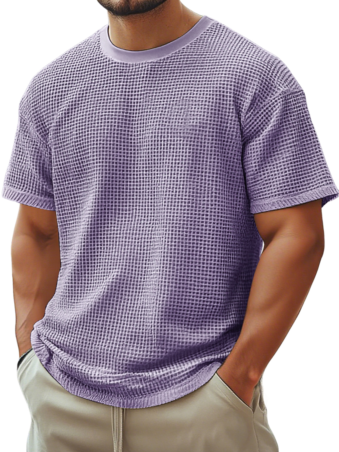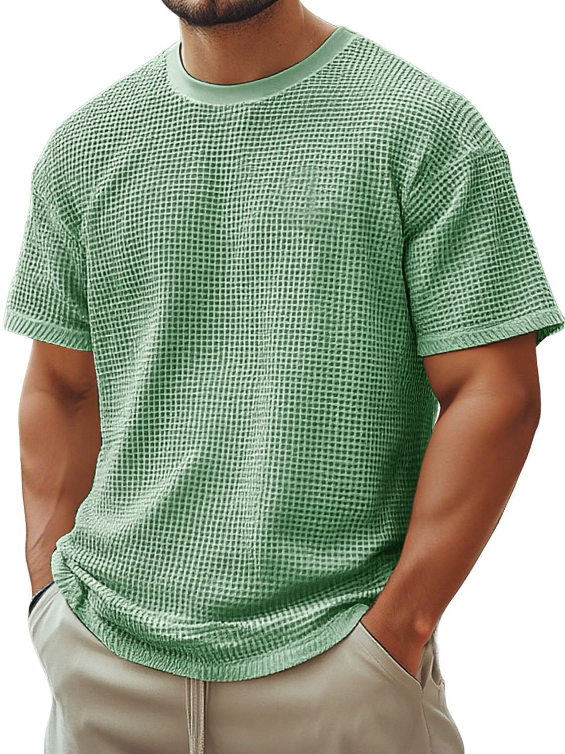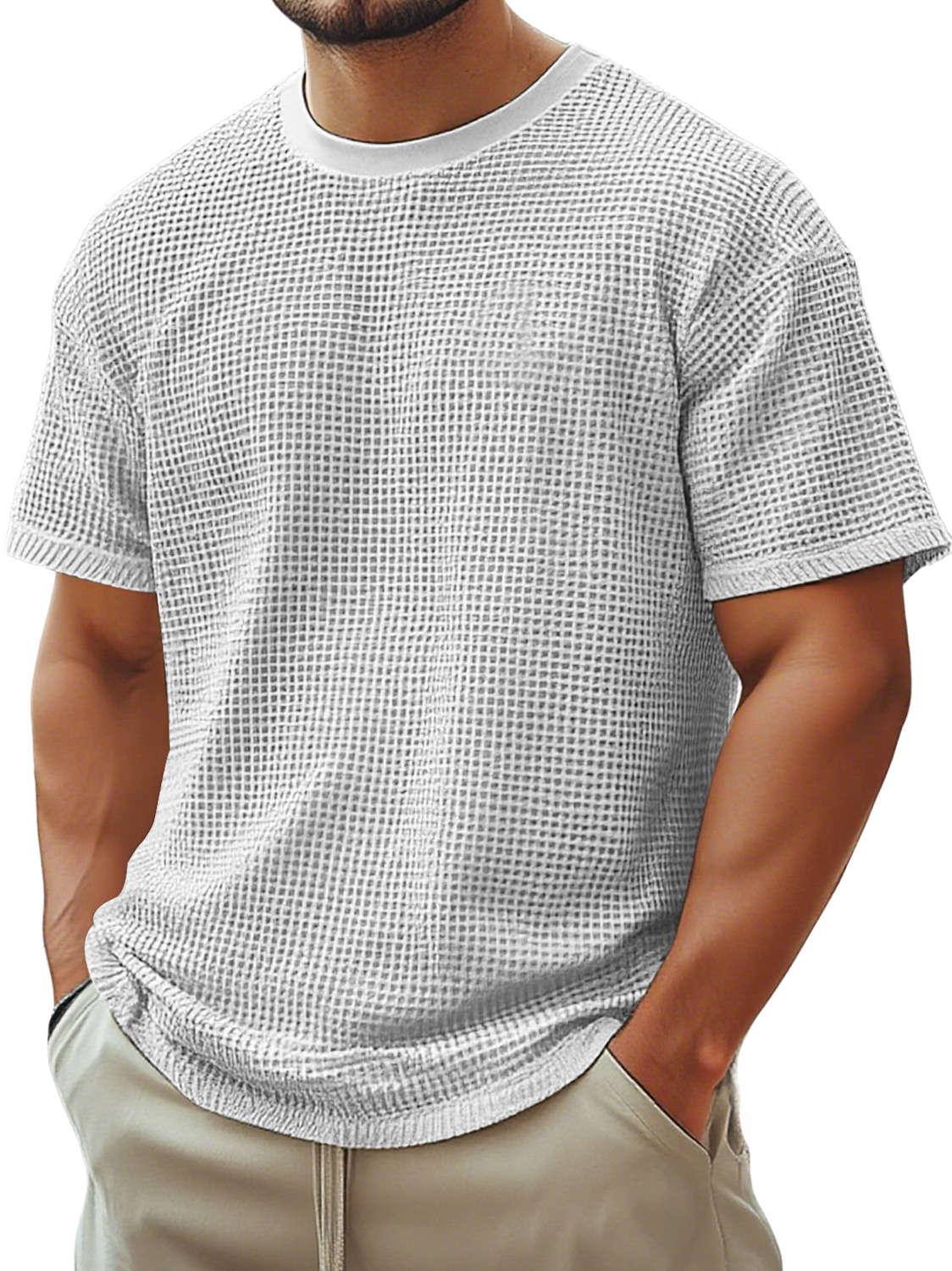 Men's Retro Crew Neck Waffle Casual Short Sleeve T-Shirt