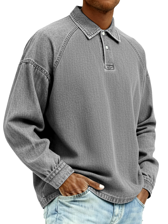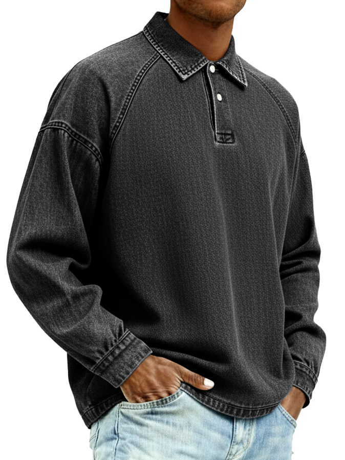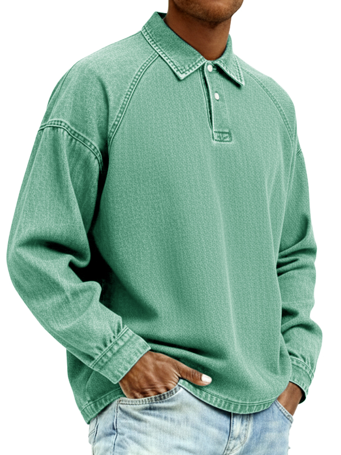 Men's Retro Distressed Fashion Raglan Collared Polo Shirt