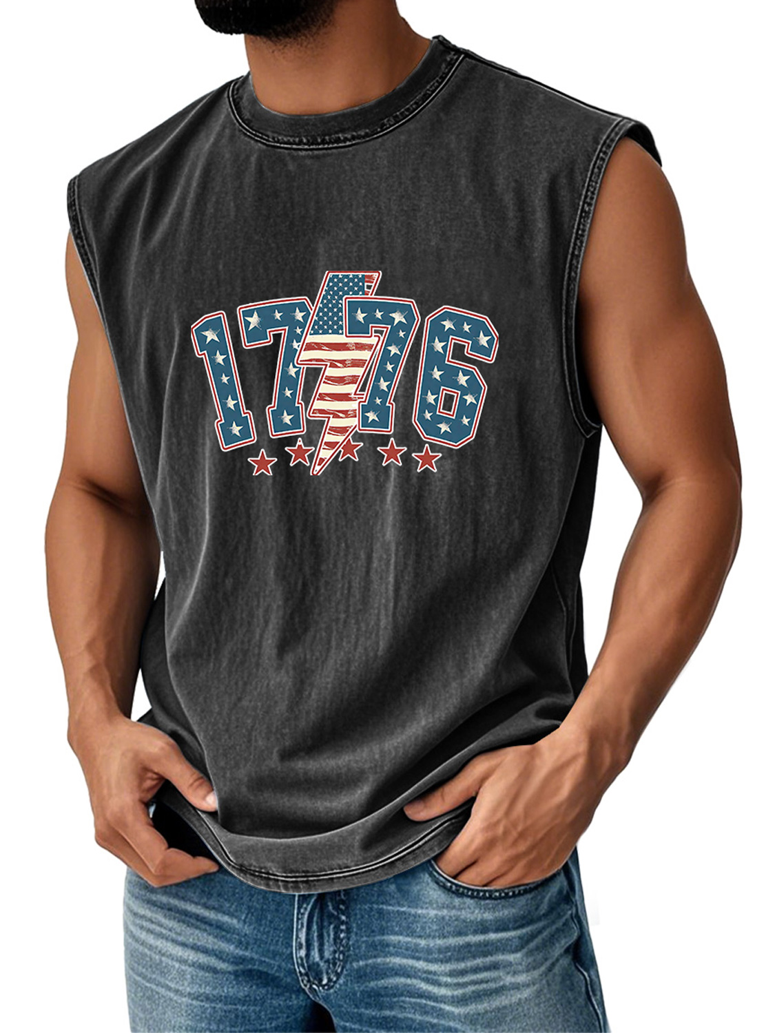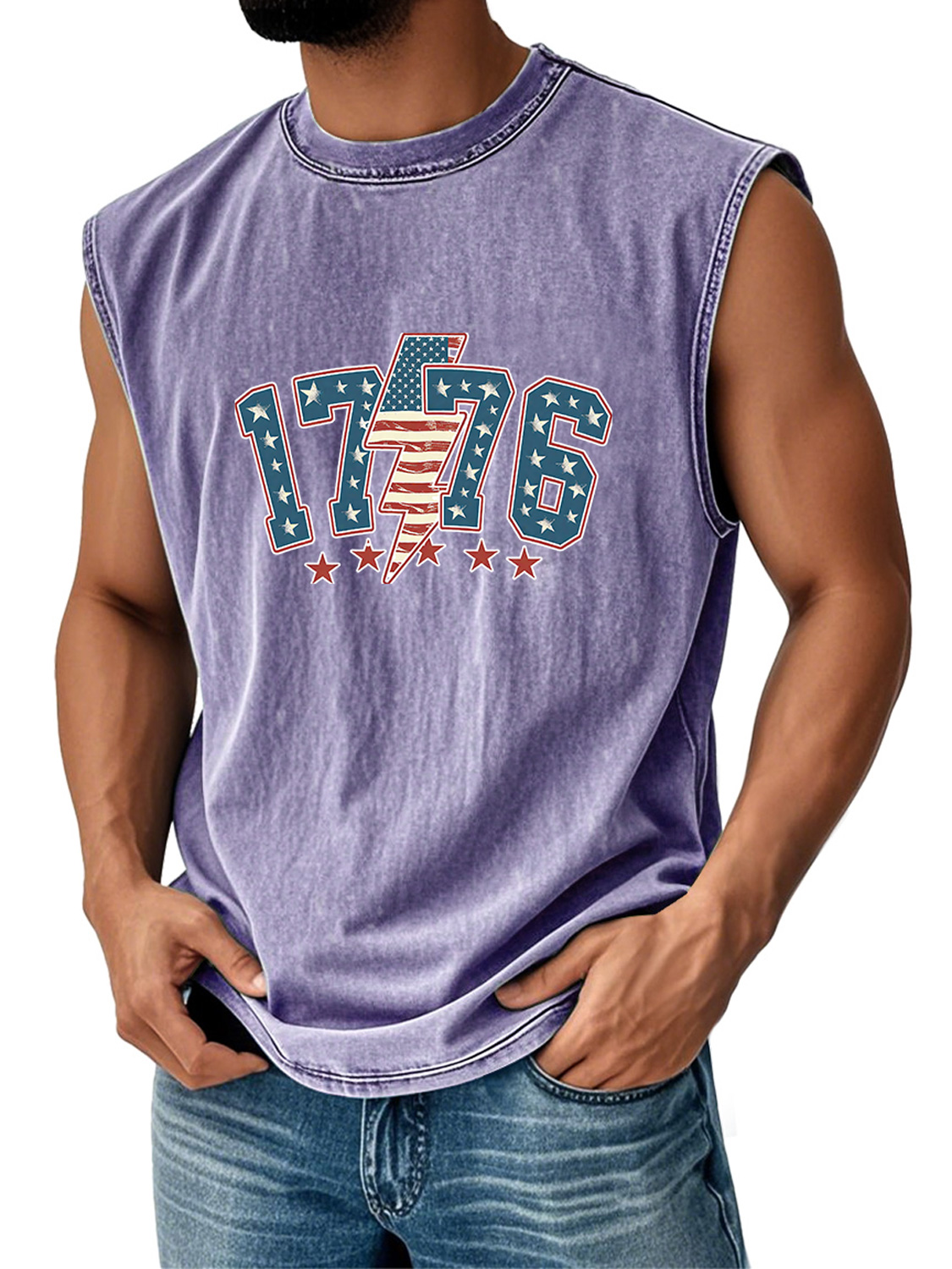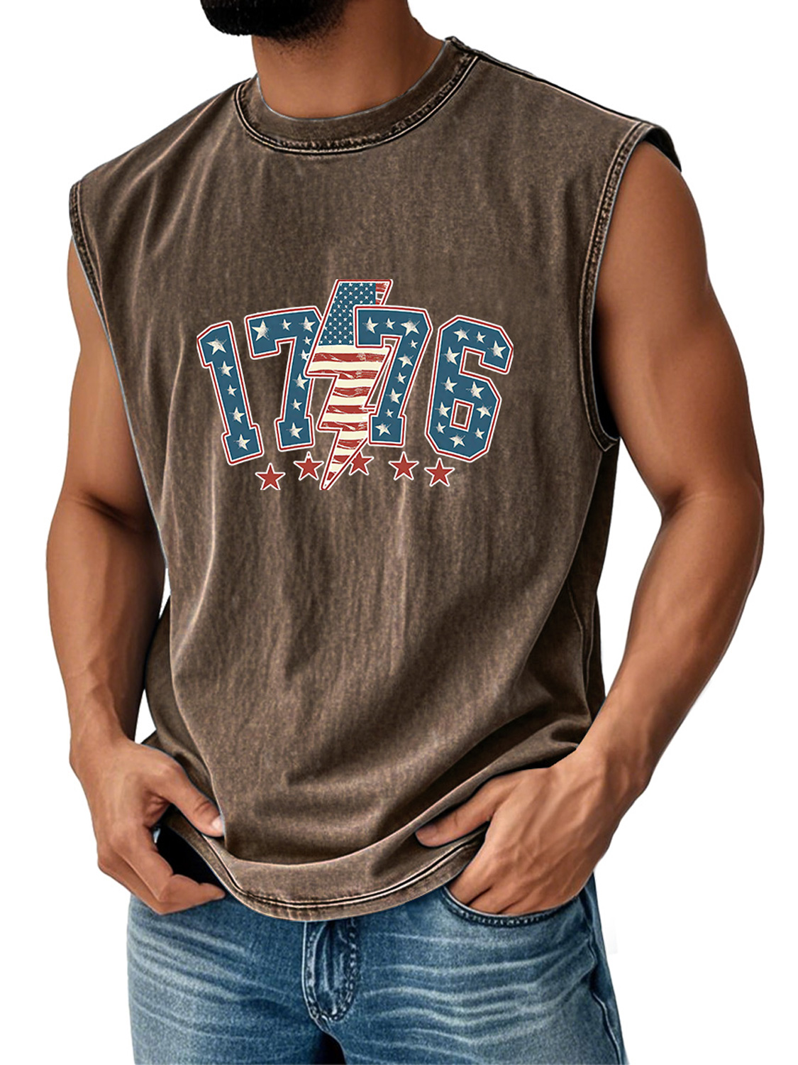 Men's Retro Everyday Independence Day 1776 Printed Casual Round Neck Sleeveless Vest