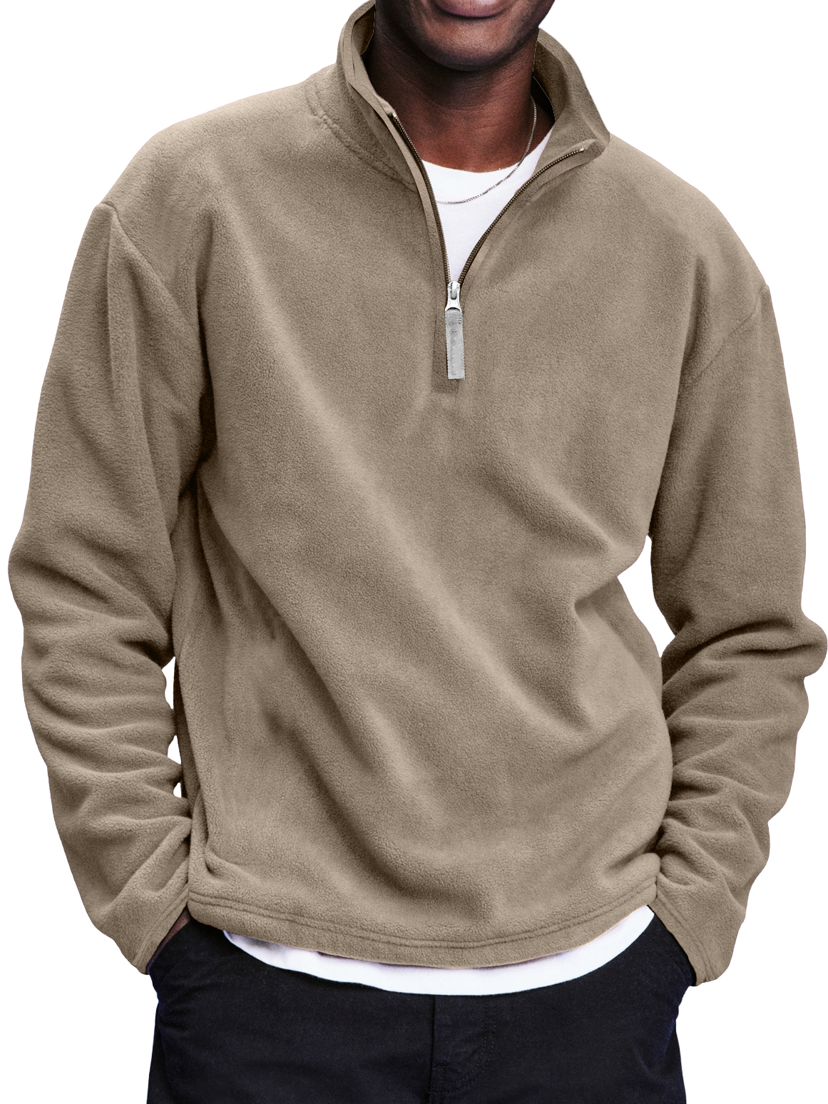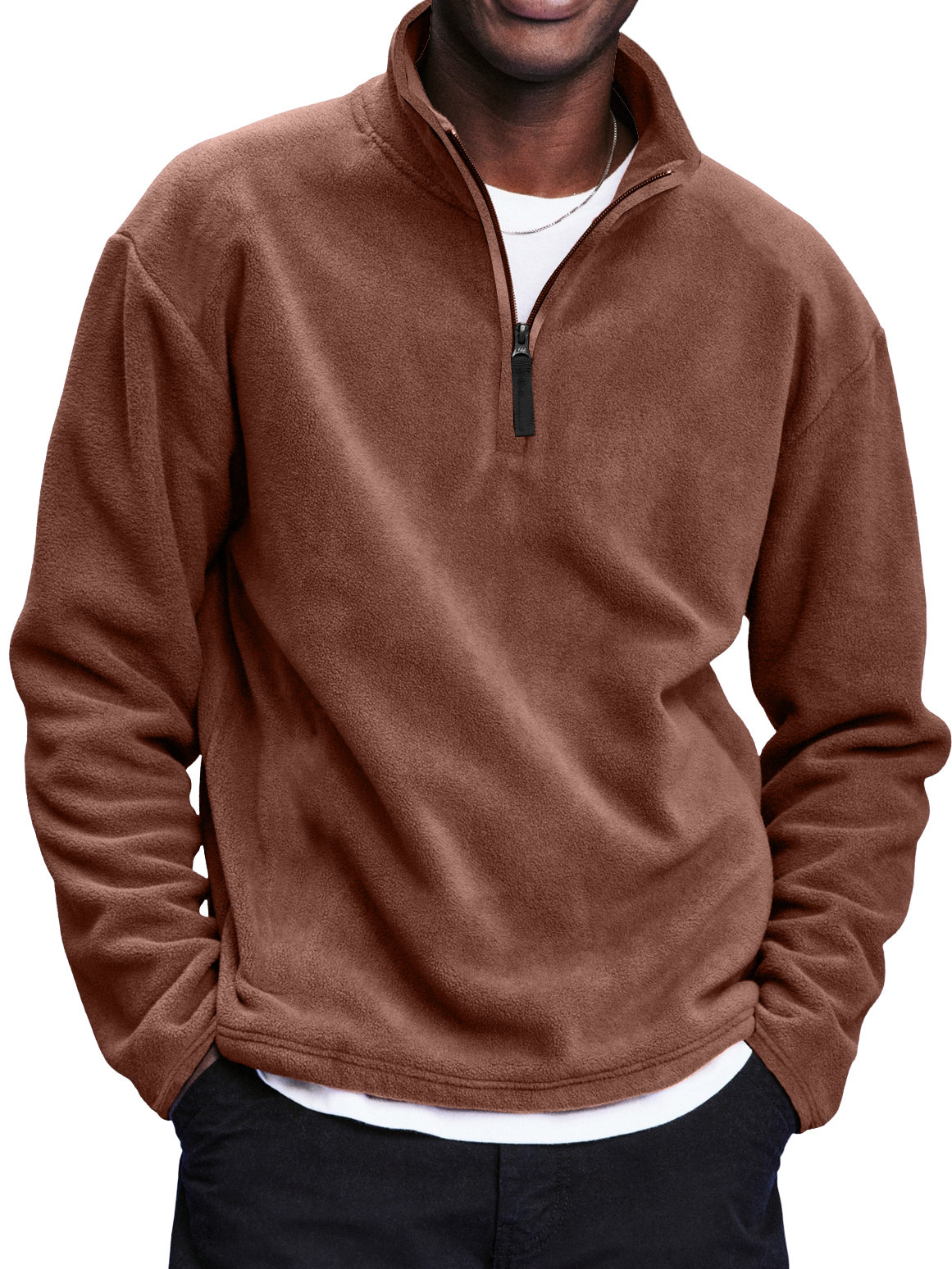 Men's Retro Polar Fleece Quarter Zip Stand Collar Casual Sweatshirt