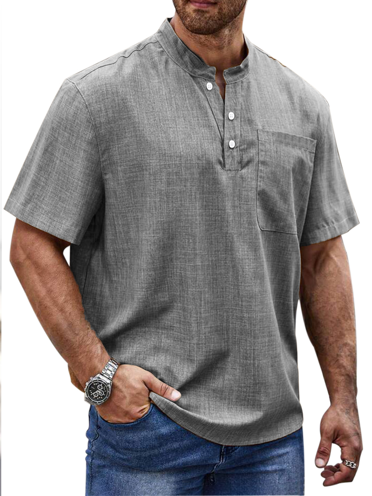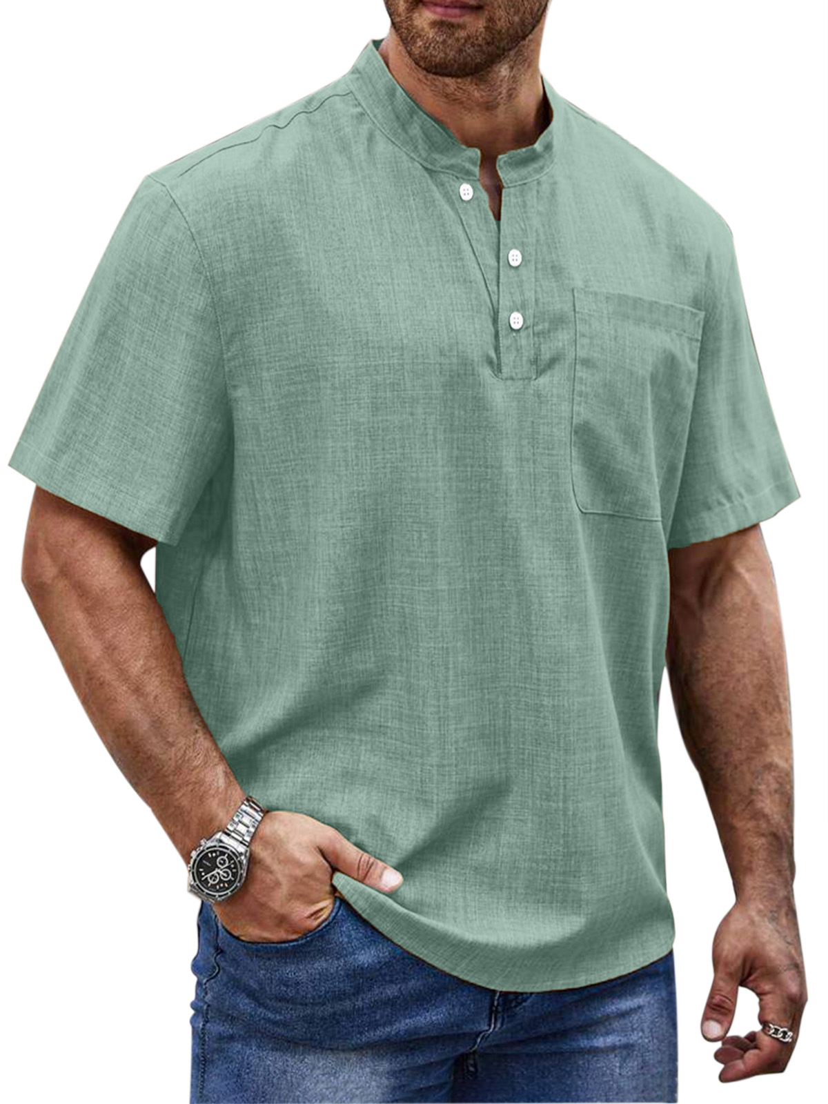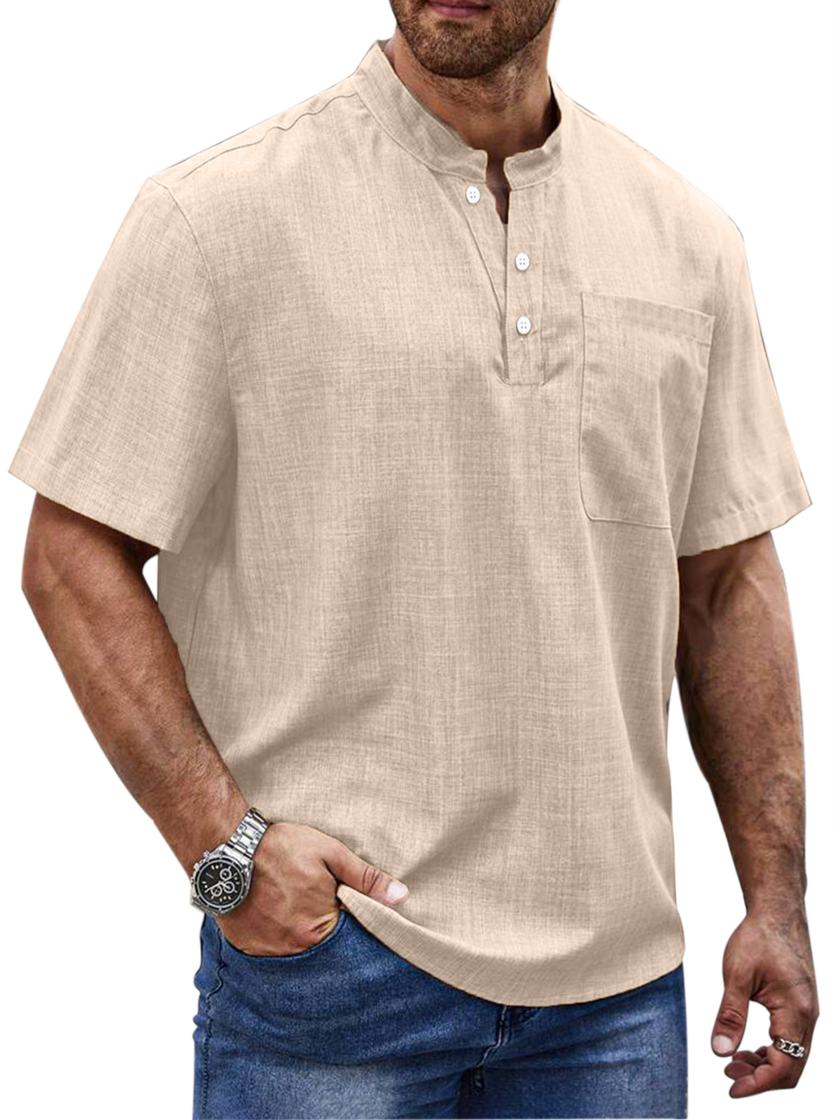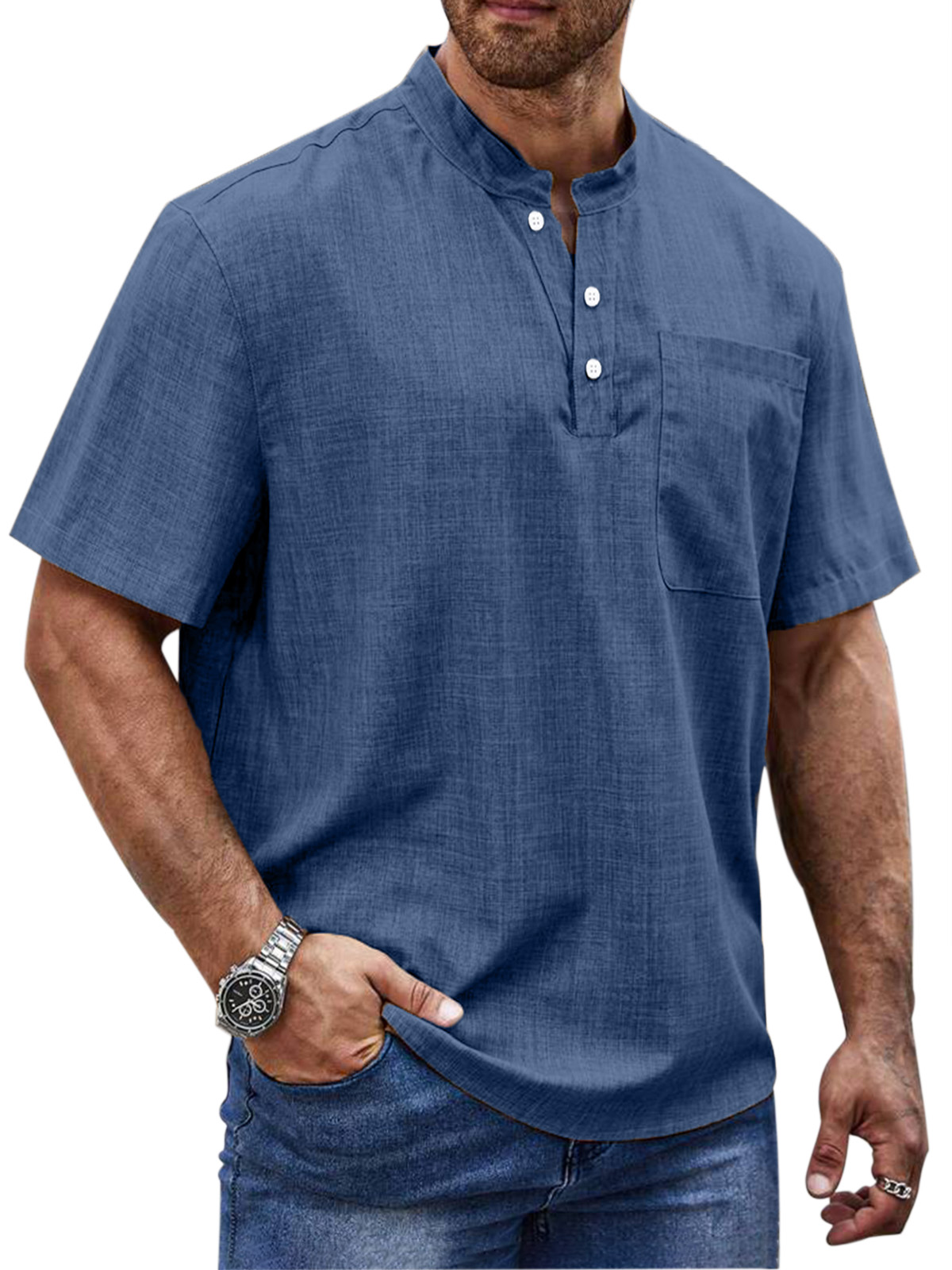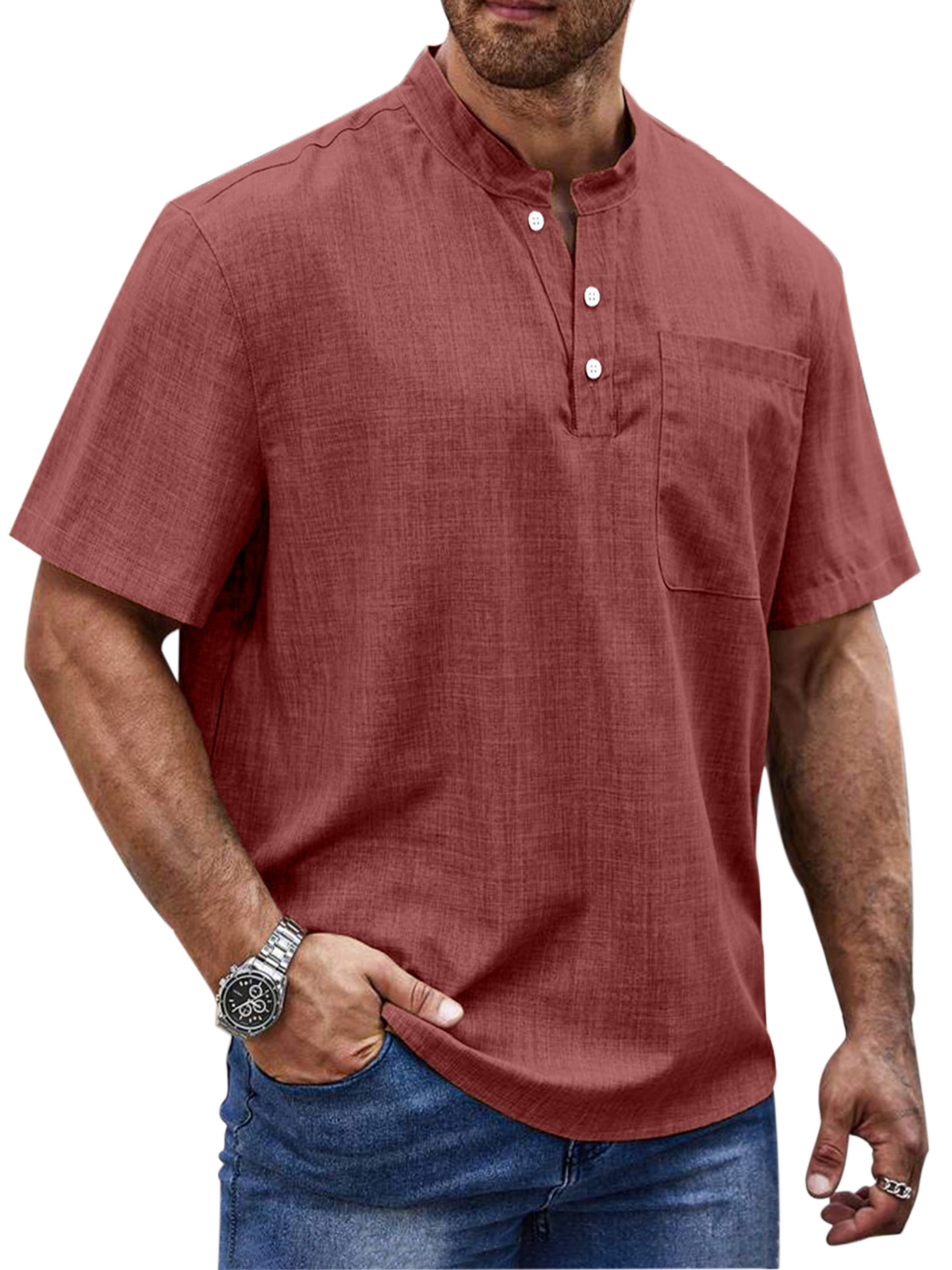 Men's Simple Daily Solid Color Short Sleeve Button Stand Collar Polo Shirt