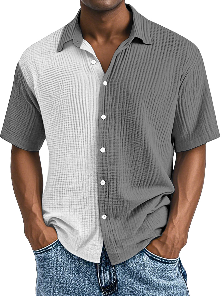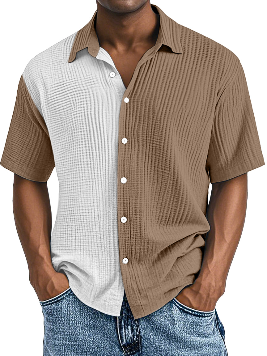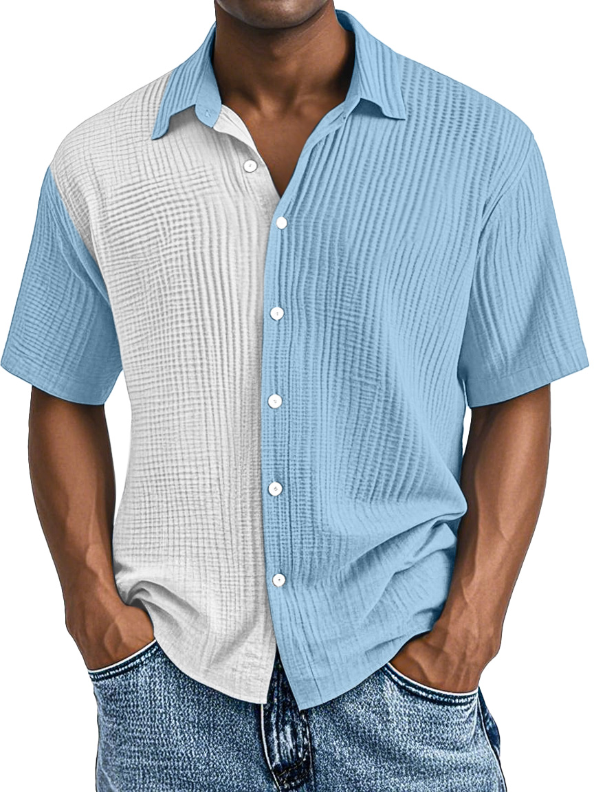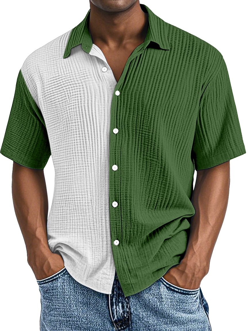 Men's Simple Fashion Contrast Color Pleated Button Lapel Short Sleeve Shirt