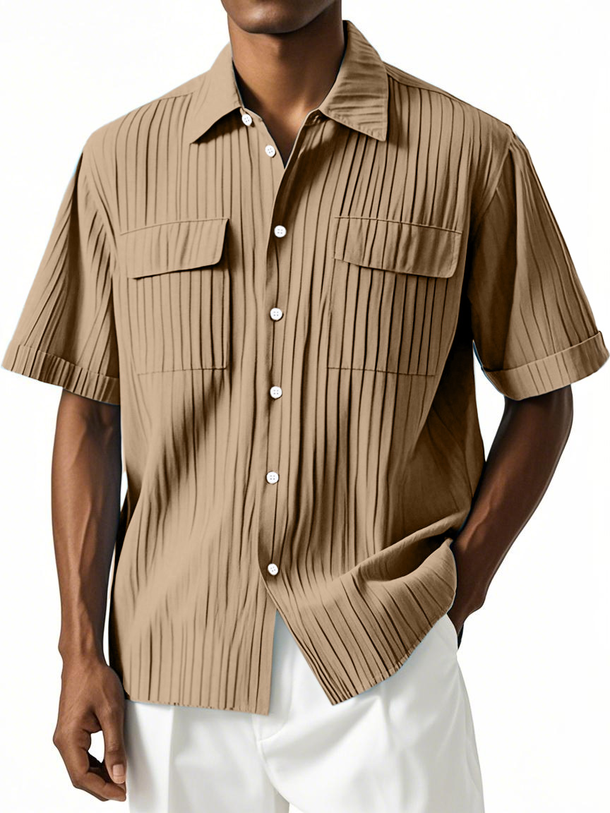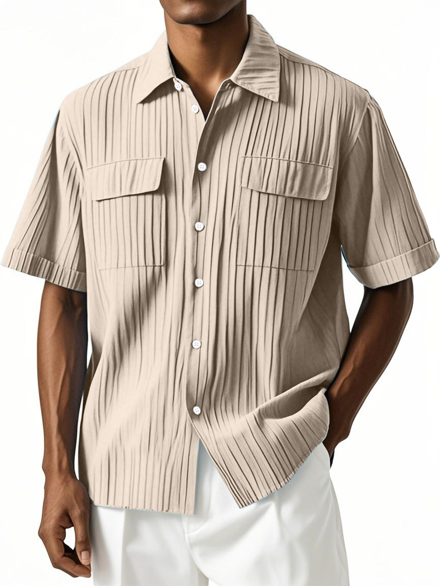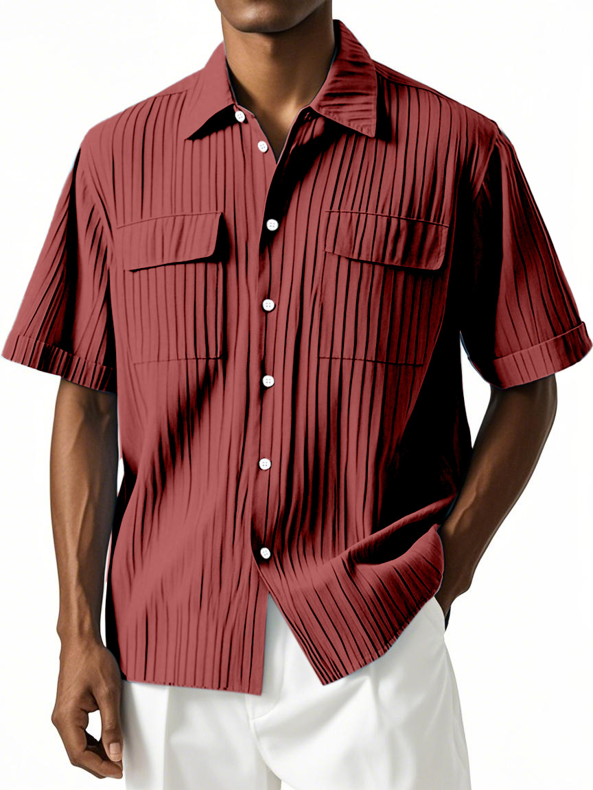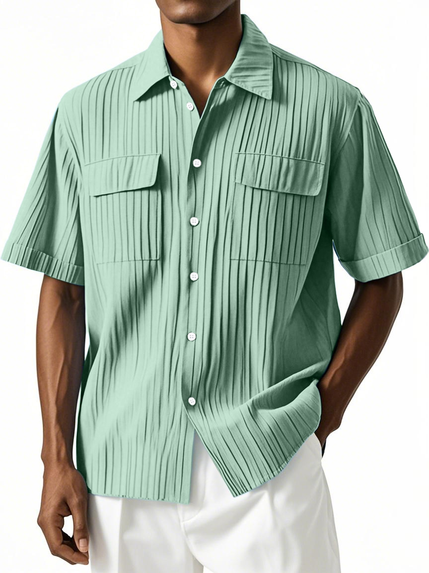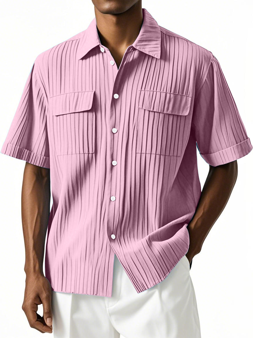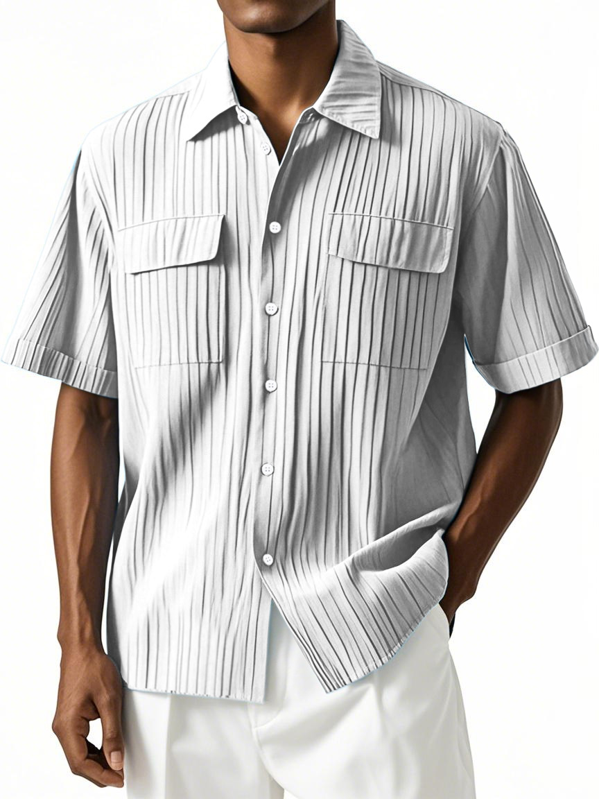 Men's Simple Hawaiian Comfort Double Pocket Short Sleeve Shirt