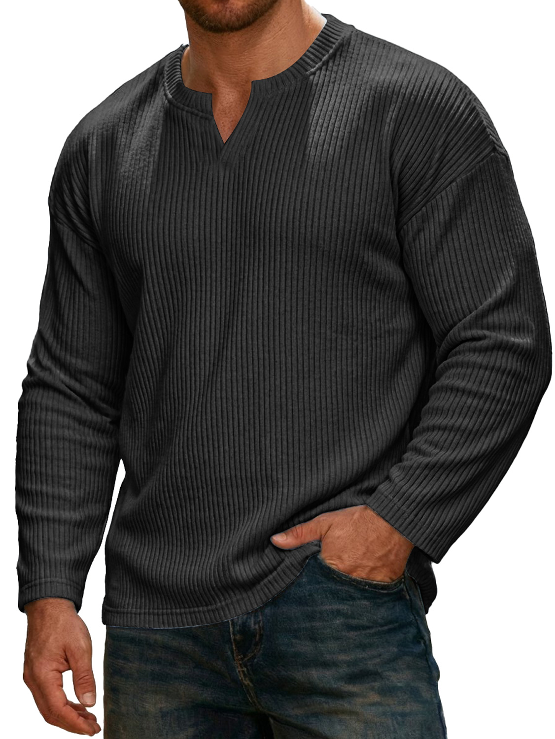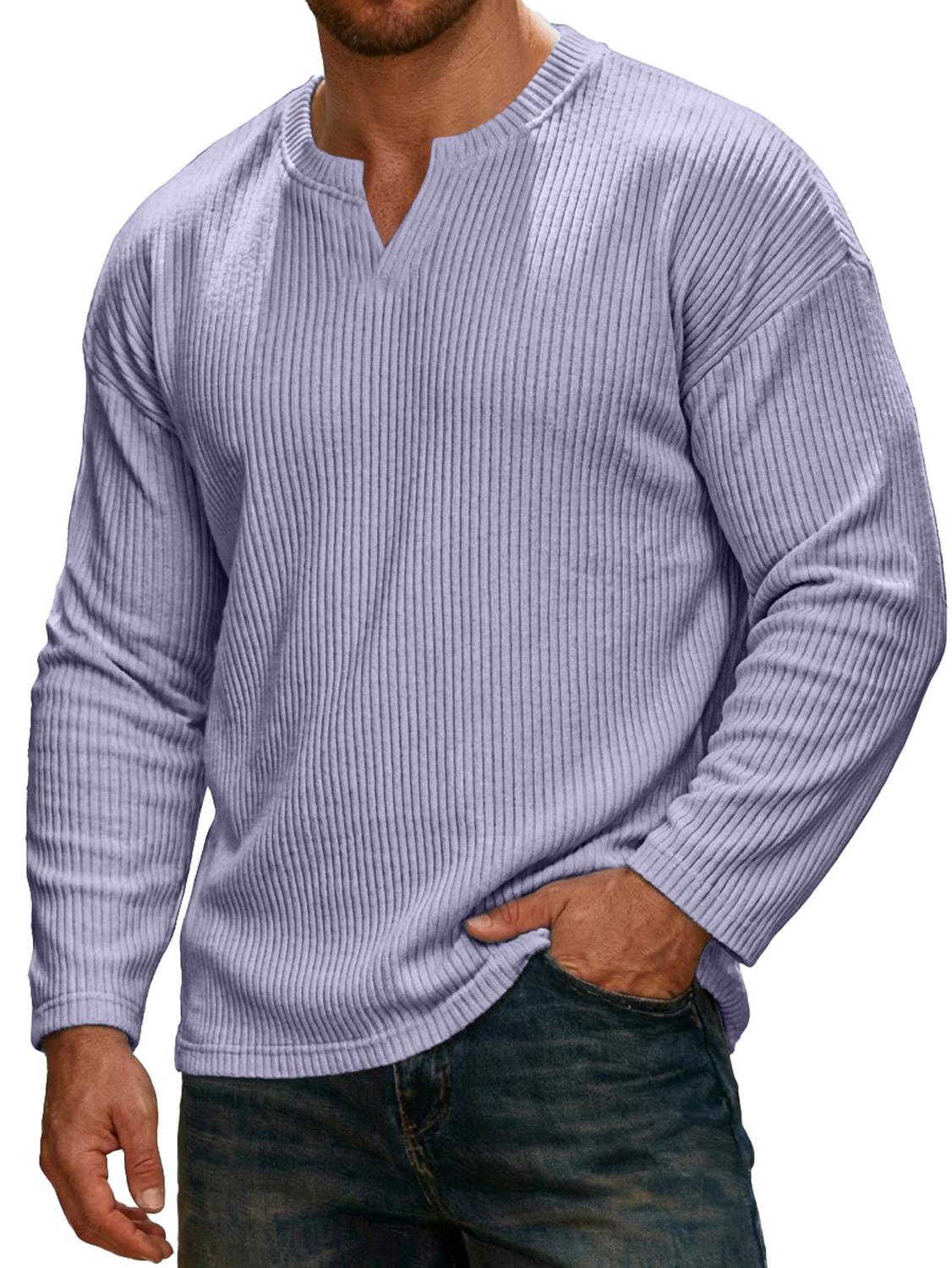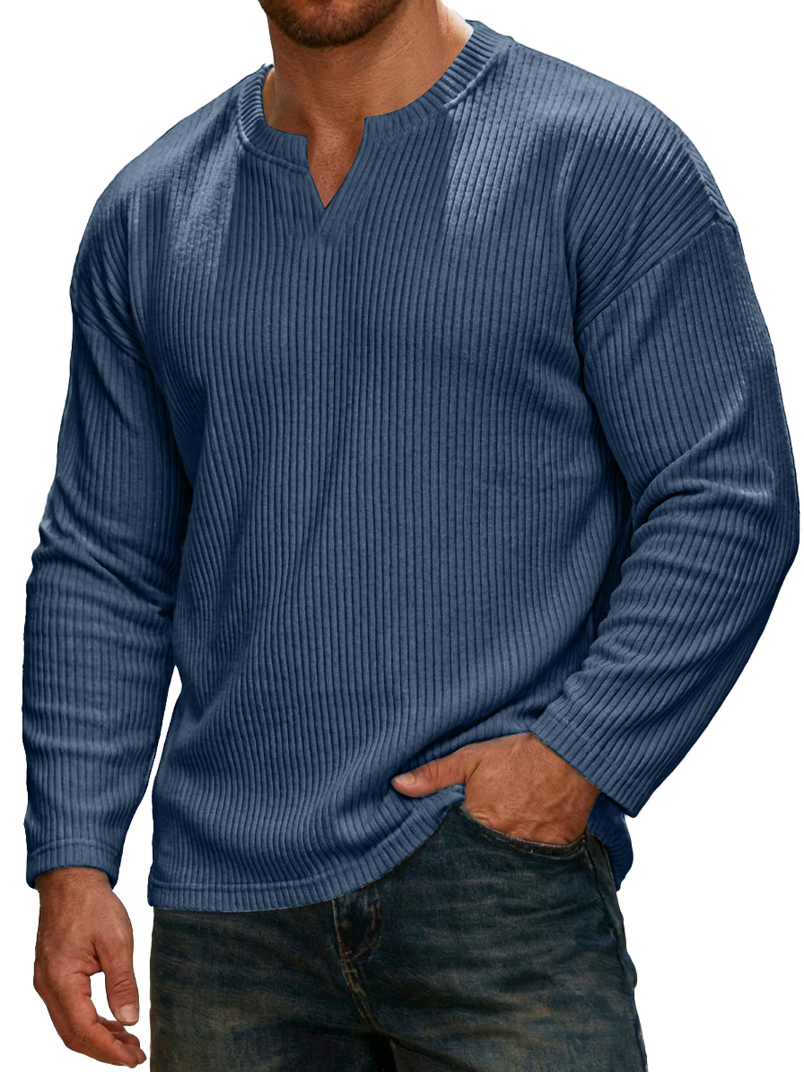 Men's Simple Ribbed V-neck Long-sleeved Casual T-shirt