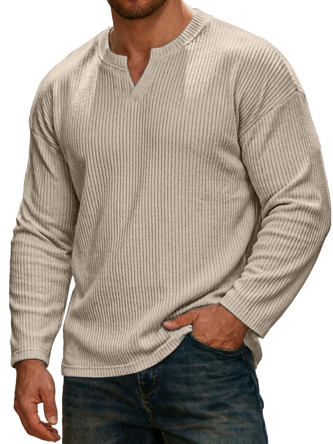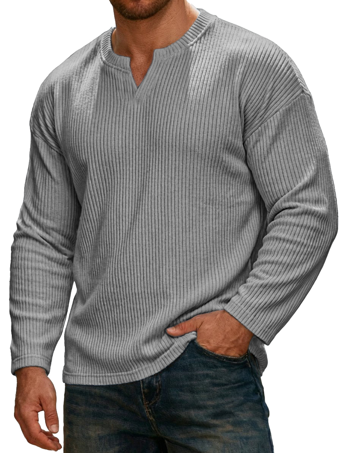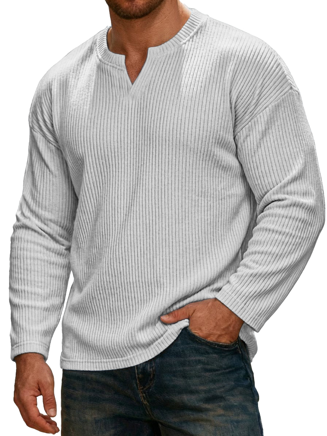 Men's Simple Ribbed V-neck Long-sleeved Casual T-shirt