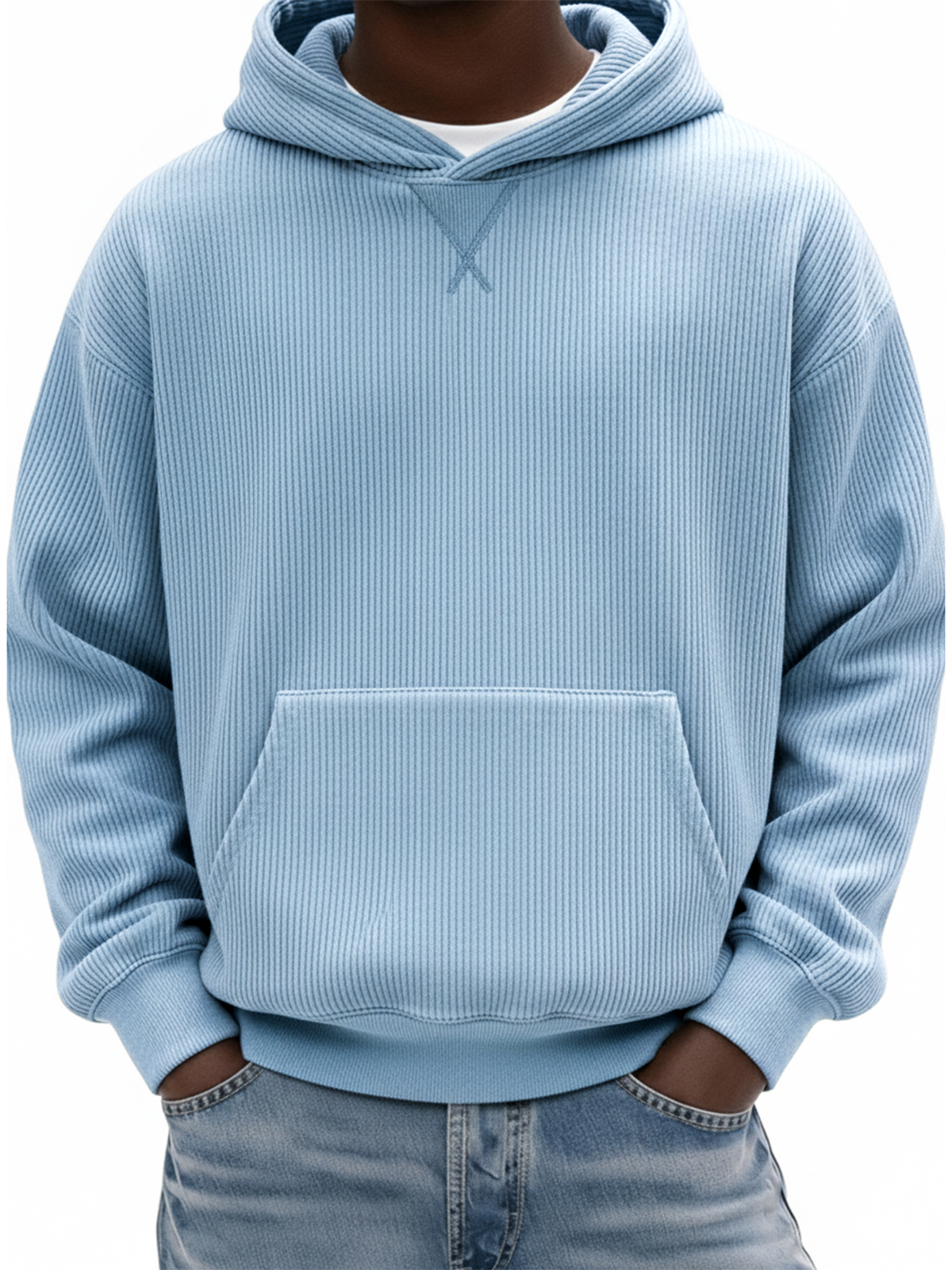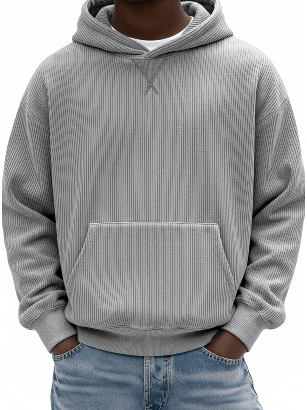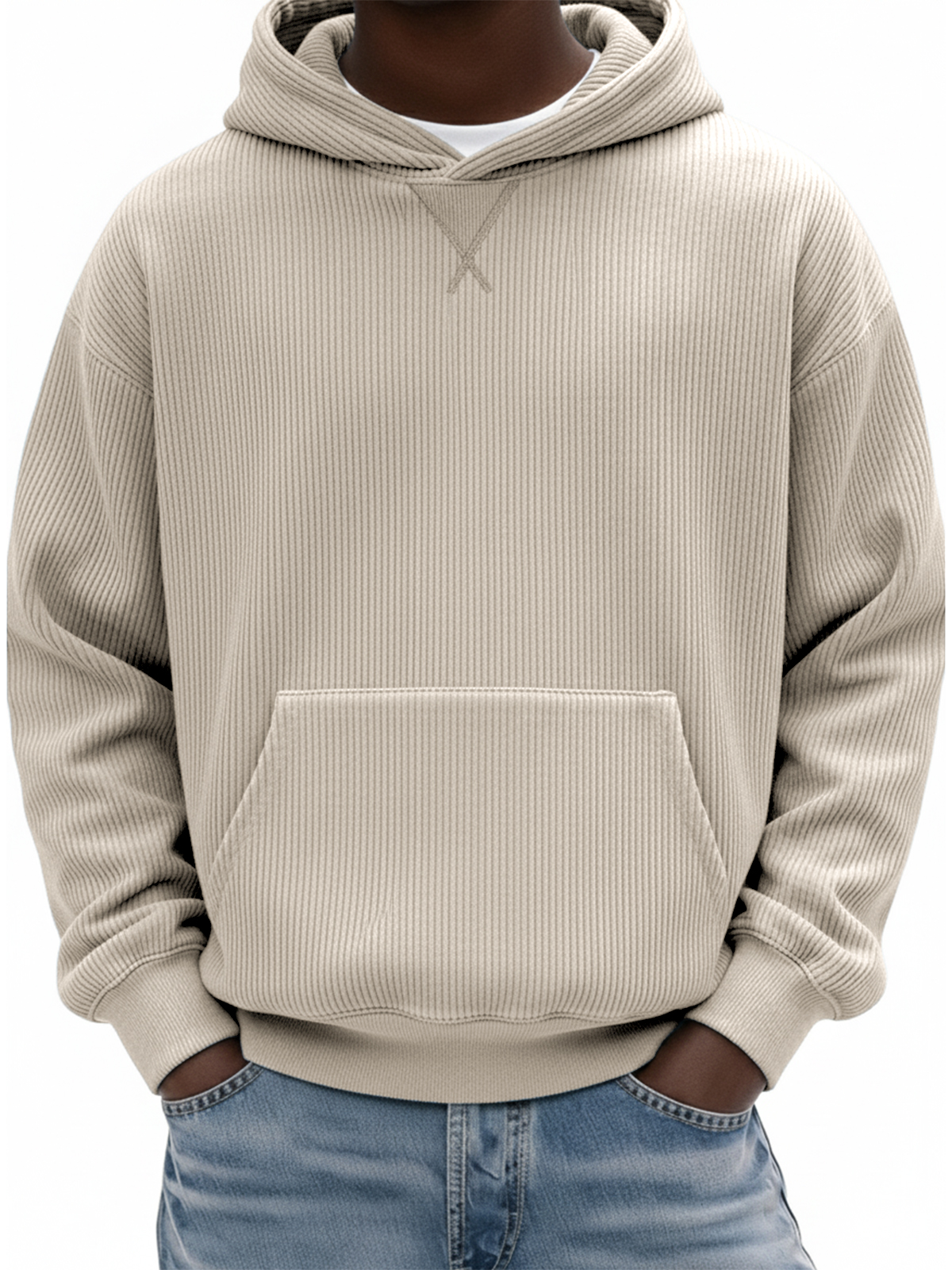 Men's Simple Ribbed X-stitch Basic Pullover Hoodie