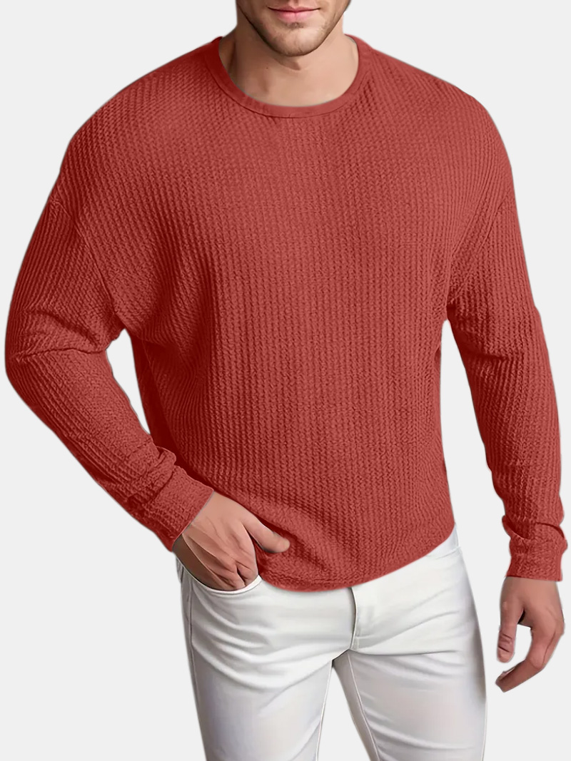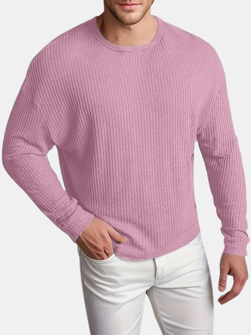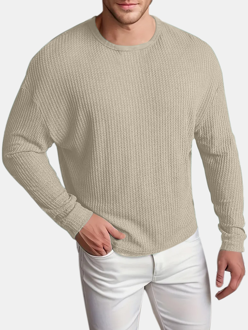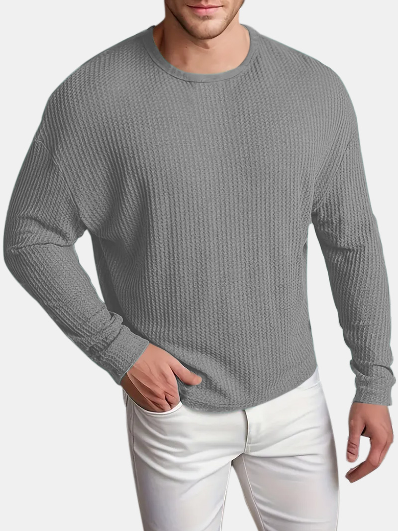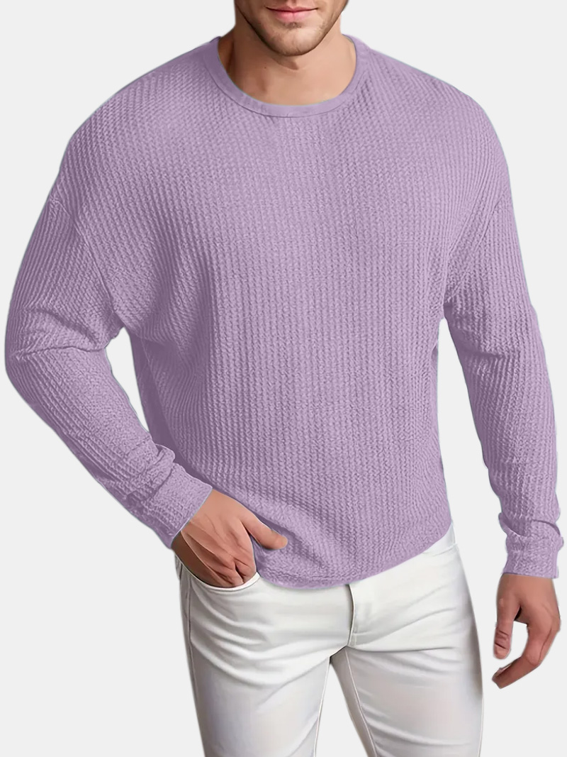 Men's Solid Color Comfortable Textured Long Sleeve T-shirt