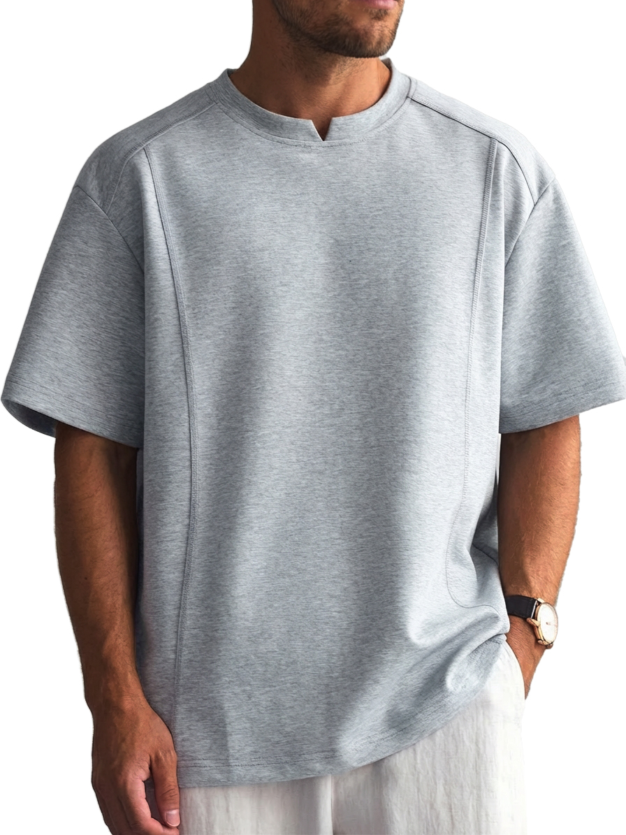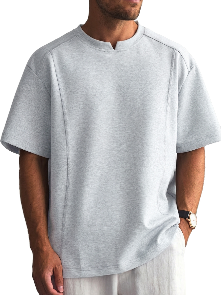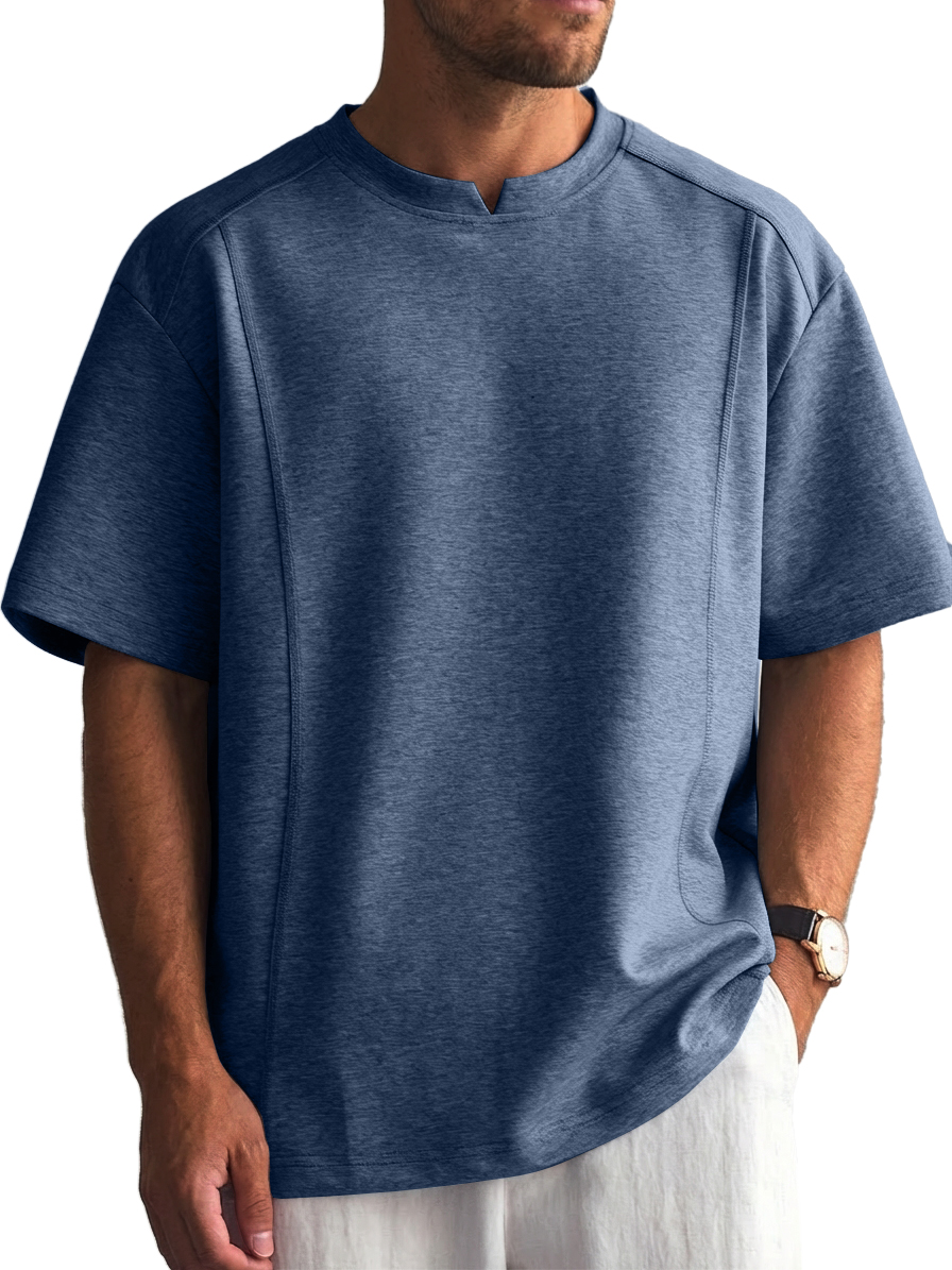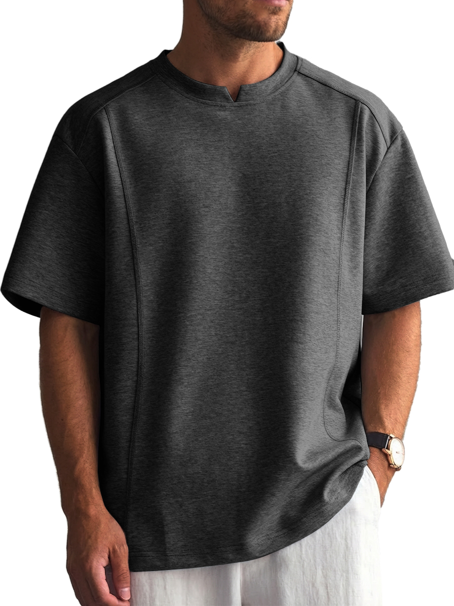 Men's Solid Color Deconstructed Short Sleeve T-Shirt with Shallow V-Neck