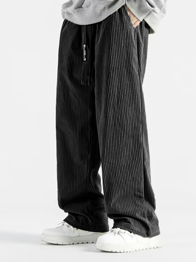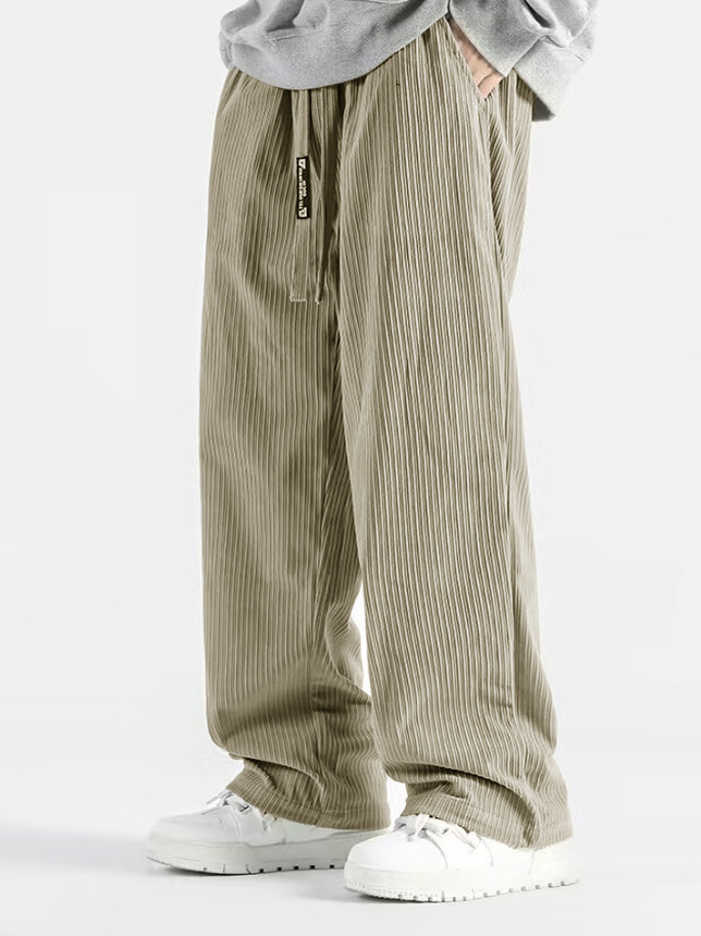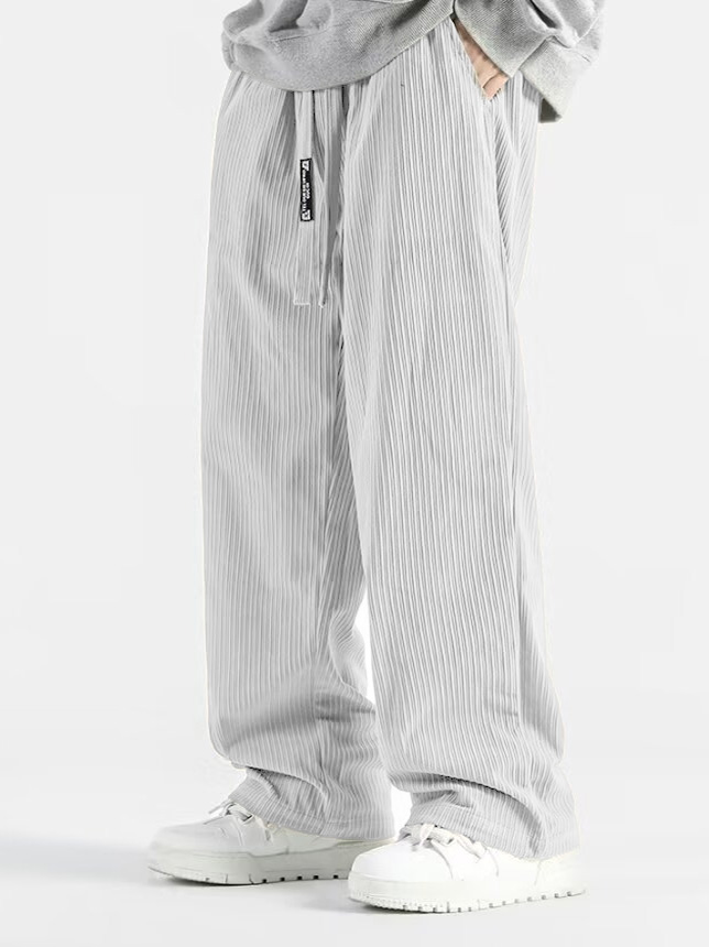 Men's Stylish Casual Loose-fitting Textured Fabric Pants With Pockets And Drawstrings And An Elastic Waistband