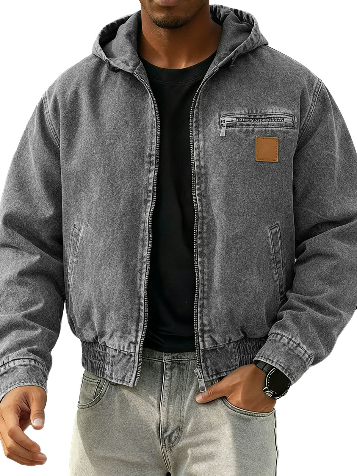 Men's Stylish Retro Long-sleeved Hooded Motorcycle Jacket