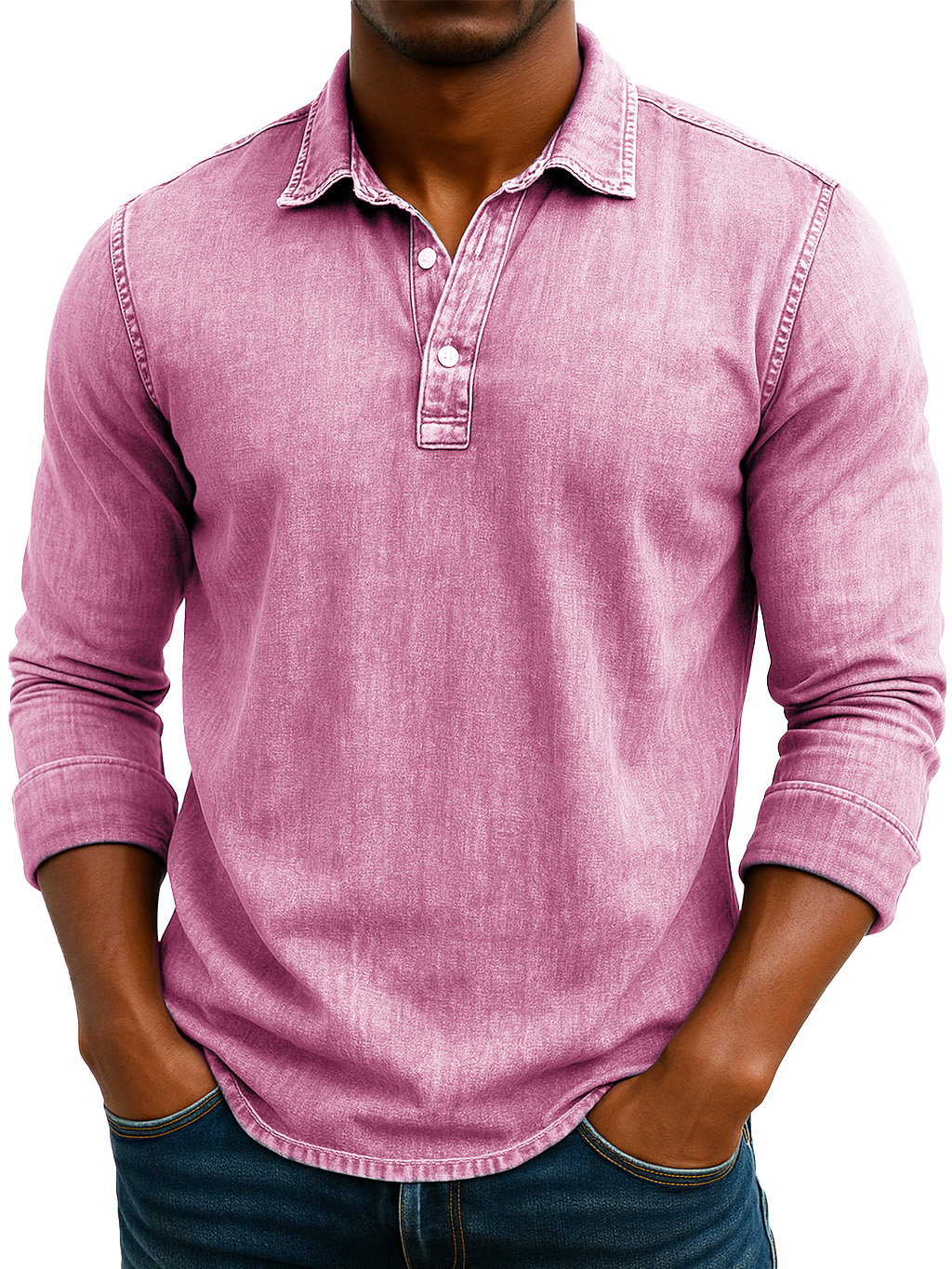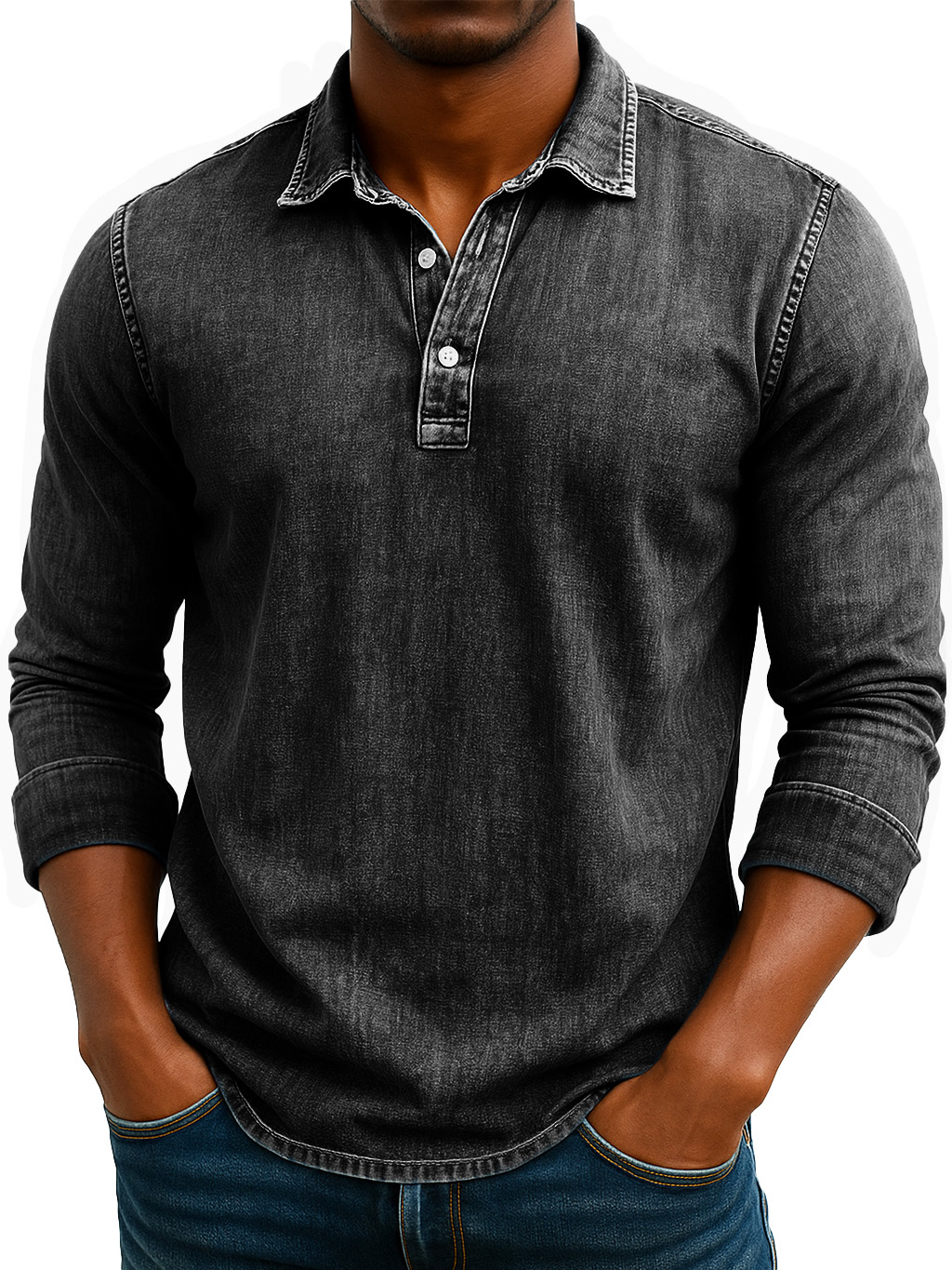 Men's Stylish Retro Washed And Distressed Lapel Long-sleeved Polo Shirt