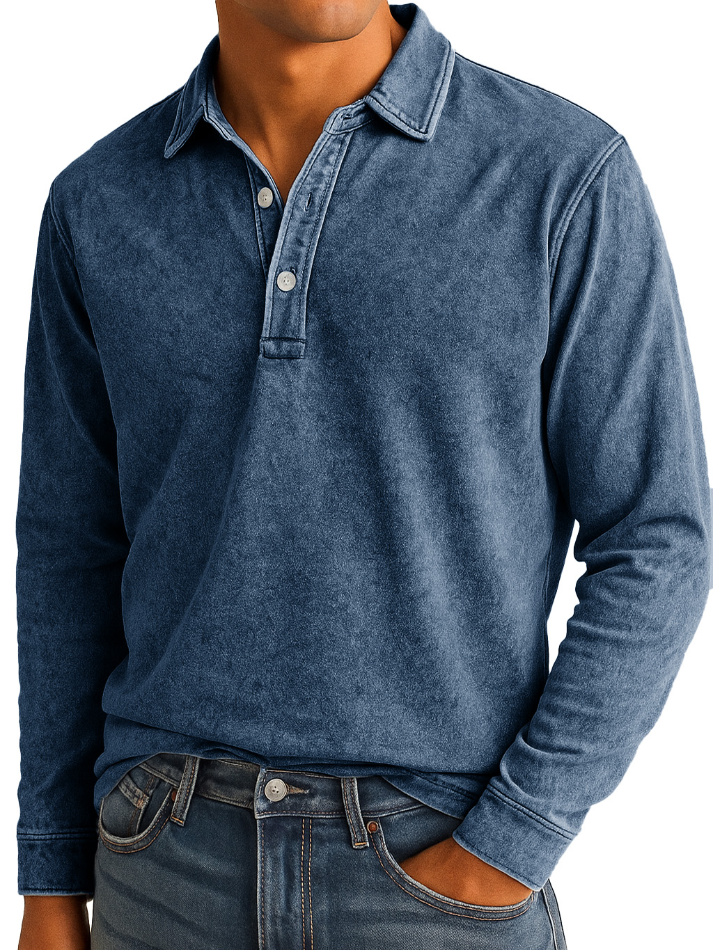 Men's Stylish Vintage Washed And Distressed Lapel Long-sleeved Polo Shirt