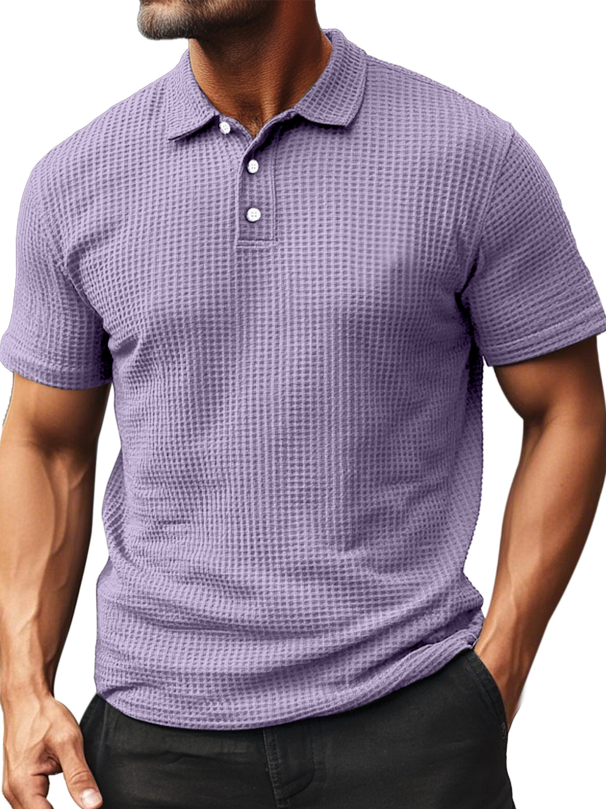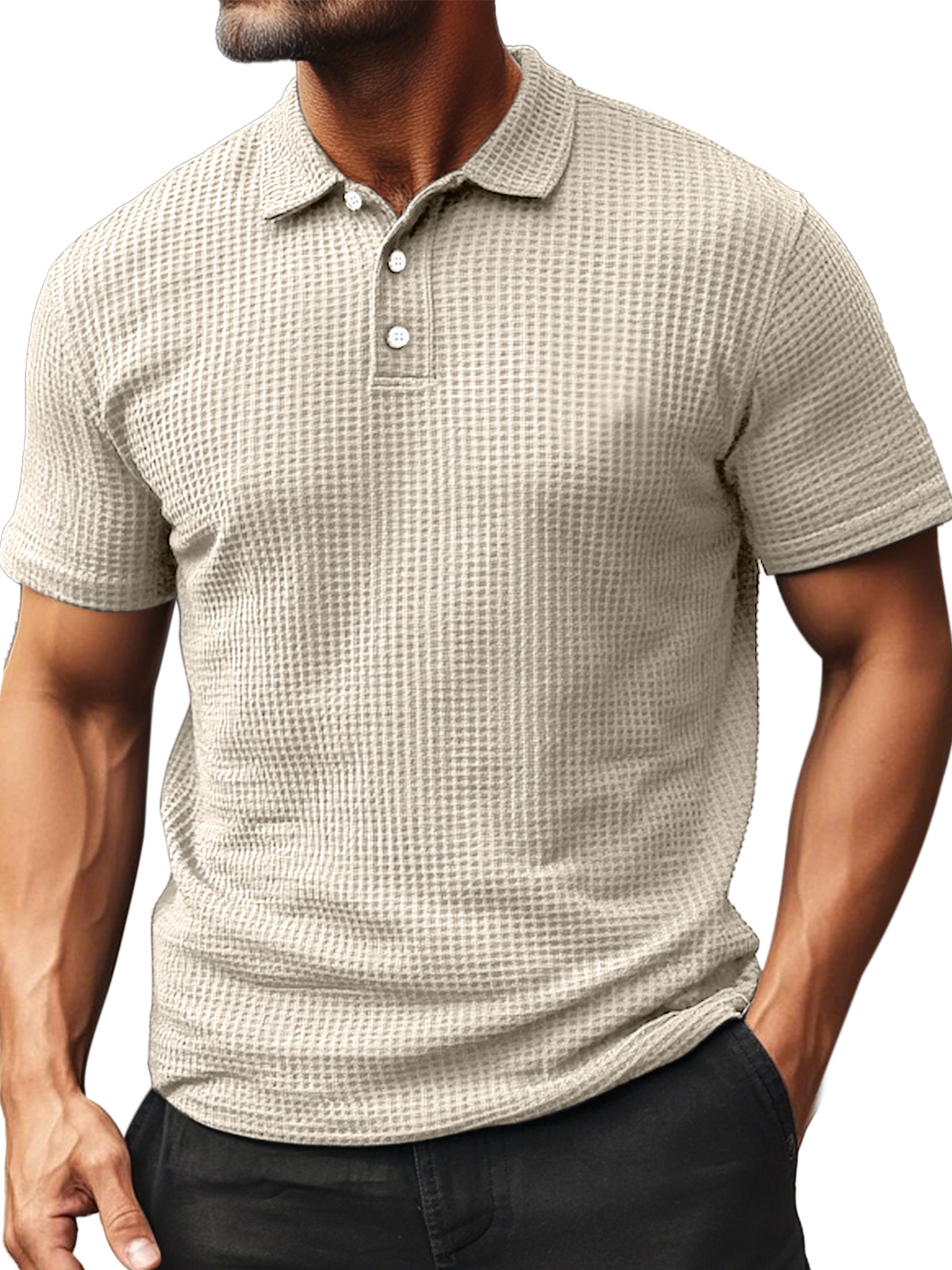 Men's Summer Daily Waffle Texture Short Sleeve Button-up Polo Shirt