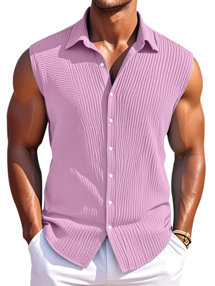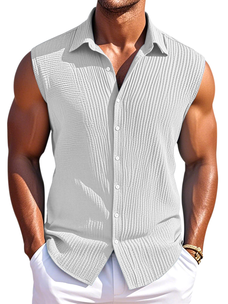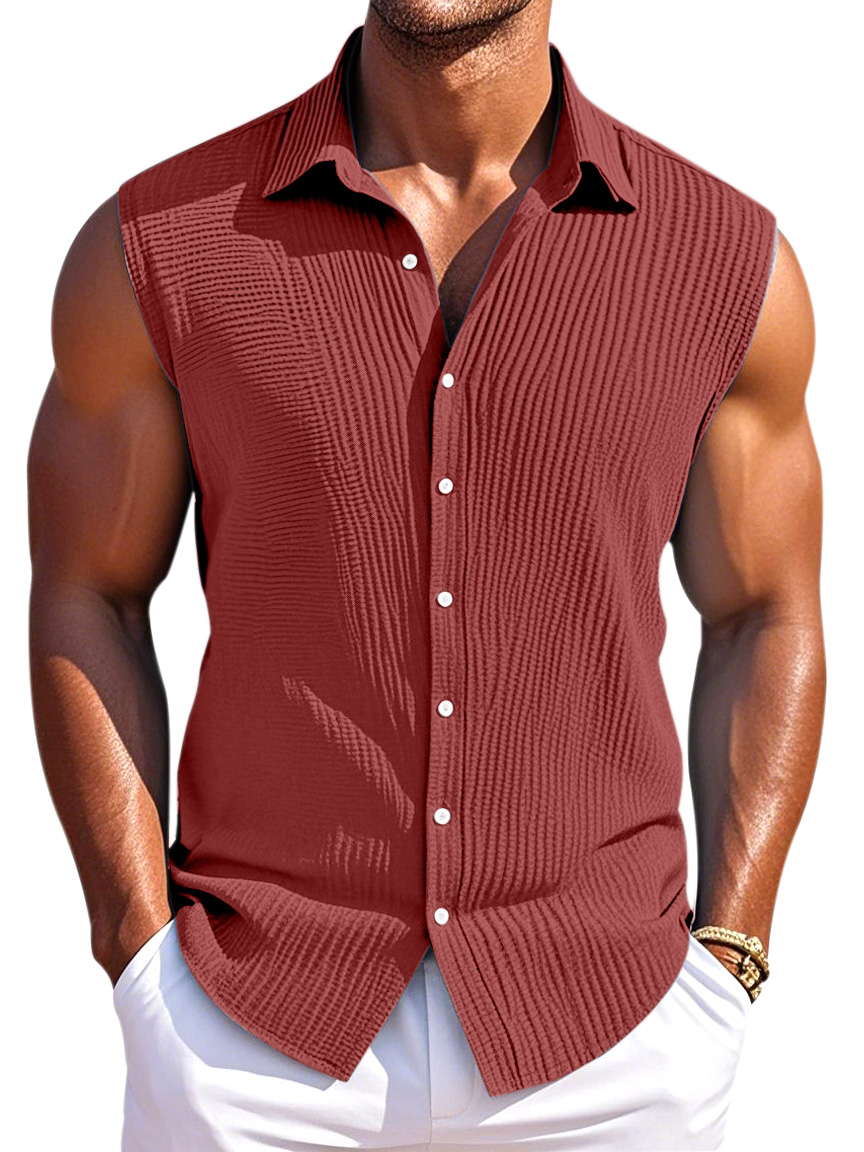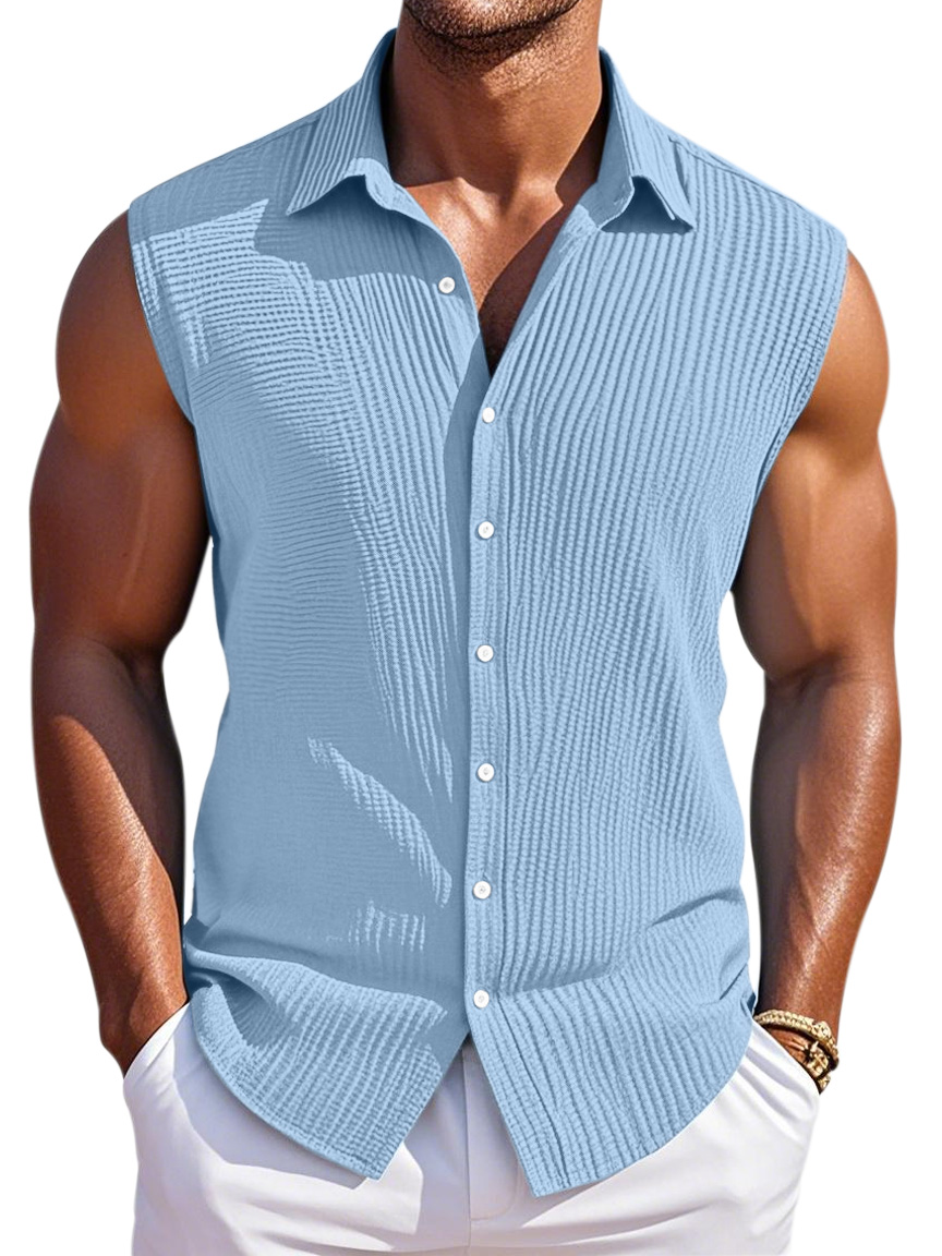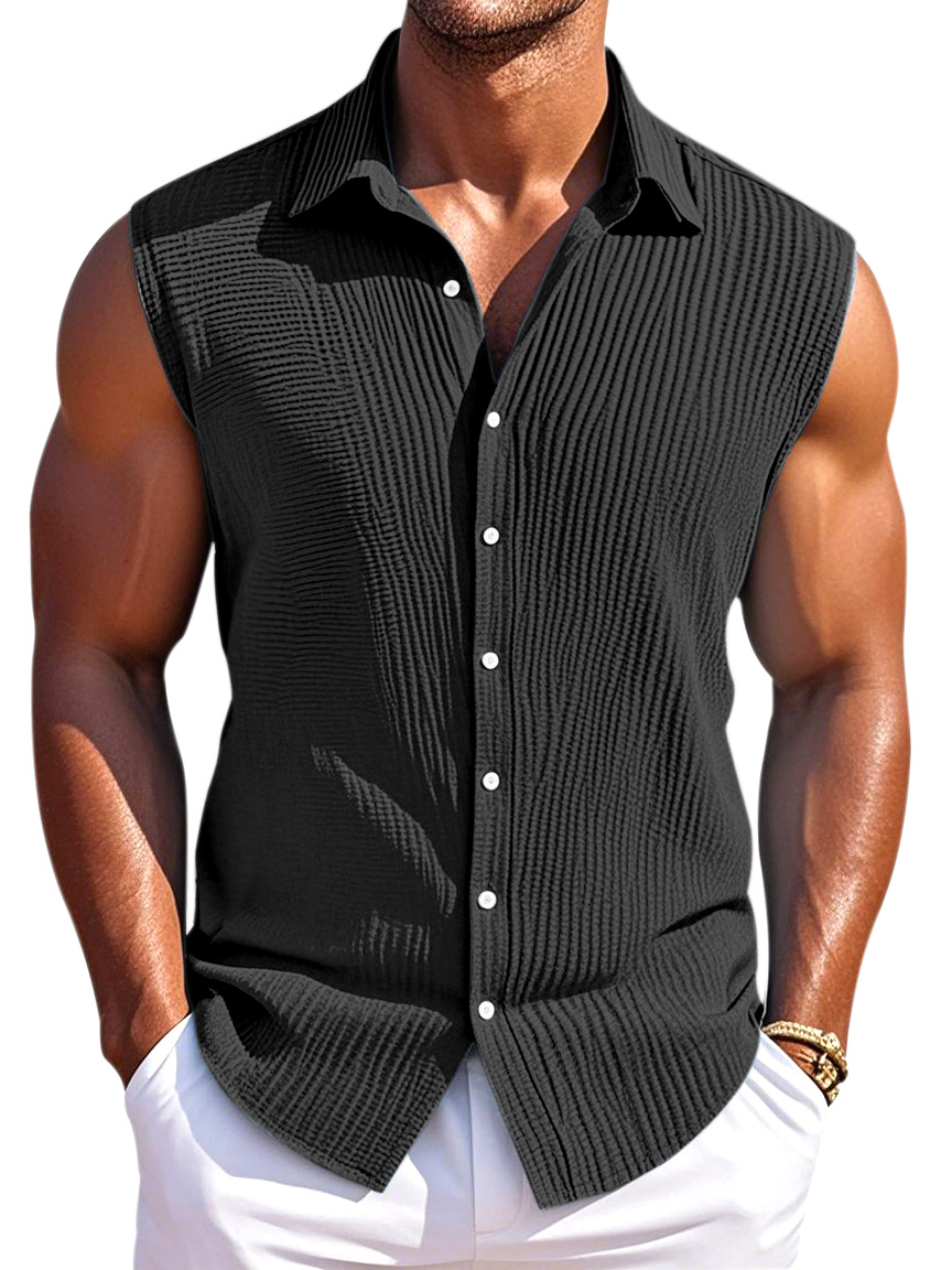 Men's Summer Simple Pleated Texture Daily Lapel Button Sleeveless Shirt