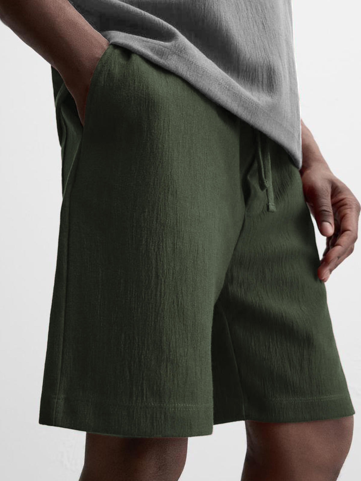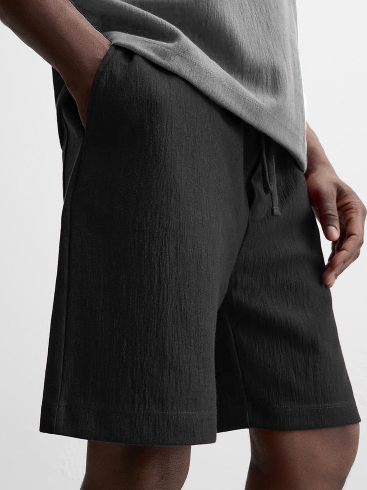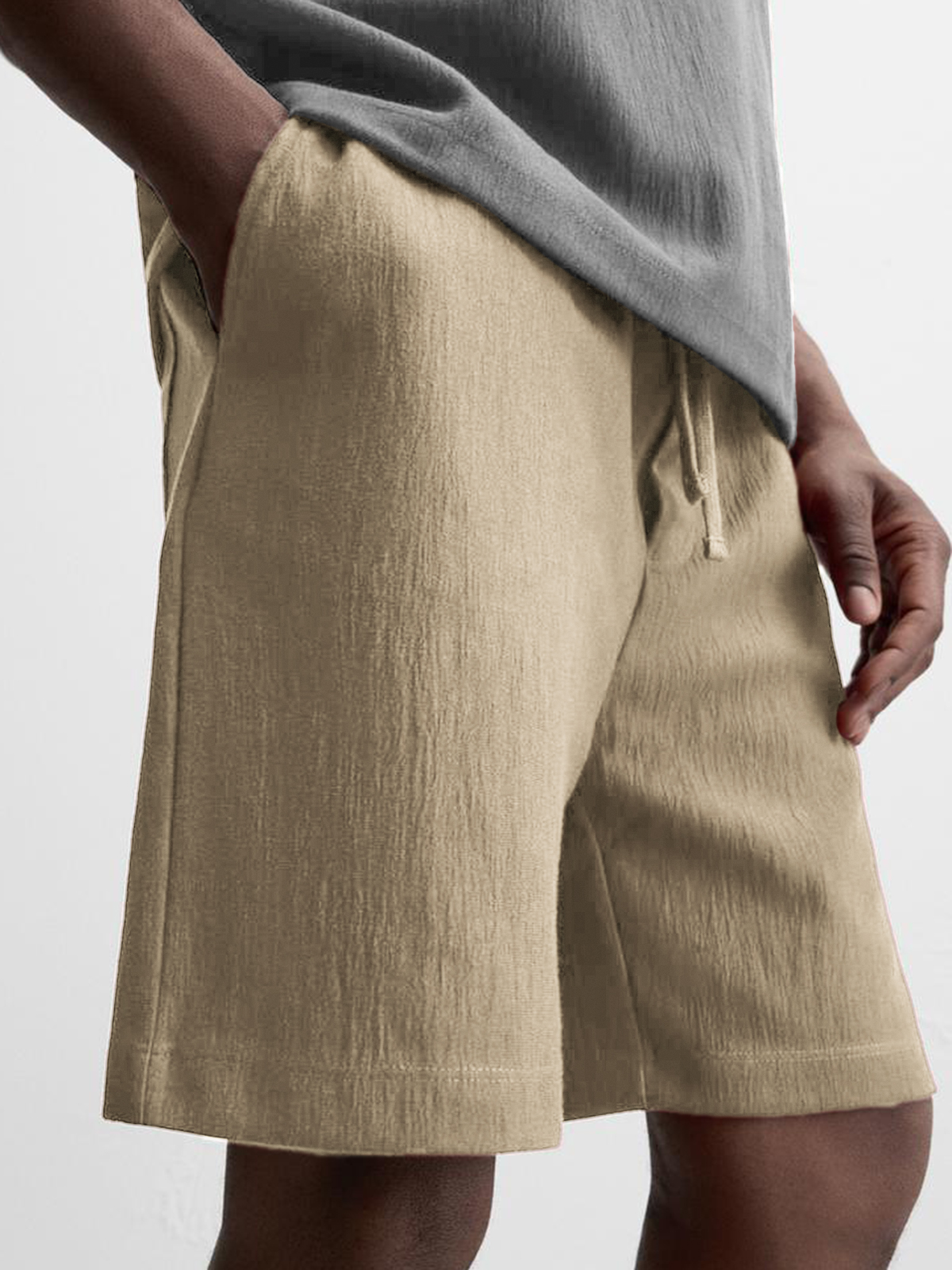 Men's Texture Crinkled Daily Casual Shorts Drawstring Elastic Waist Shorts