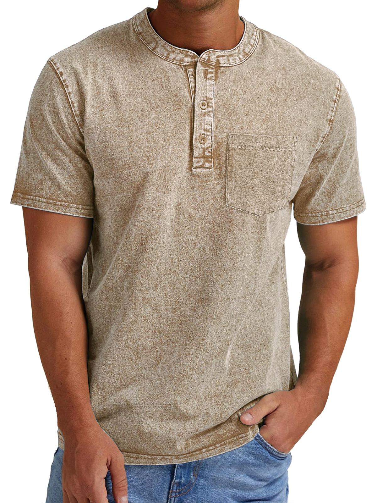 Men's Vintage Casual Button Pocket Short Sleeve Henley Shirt