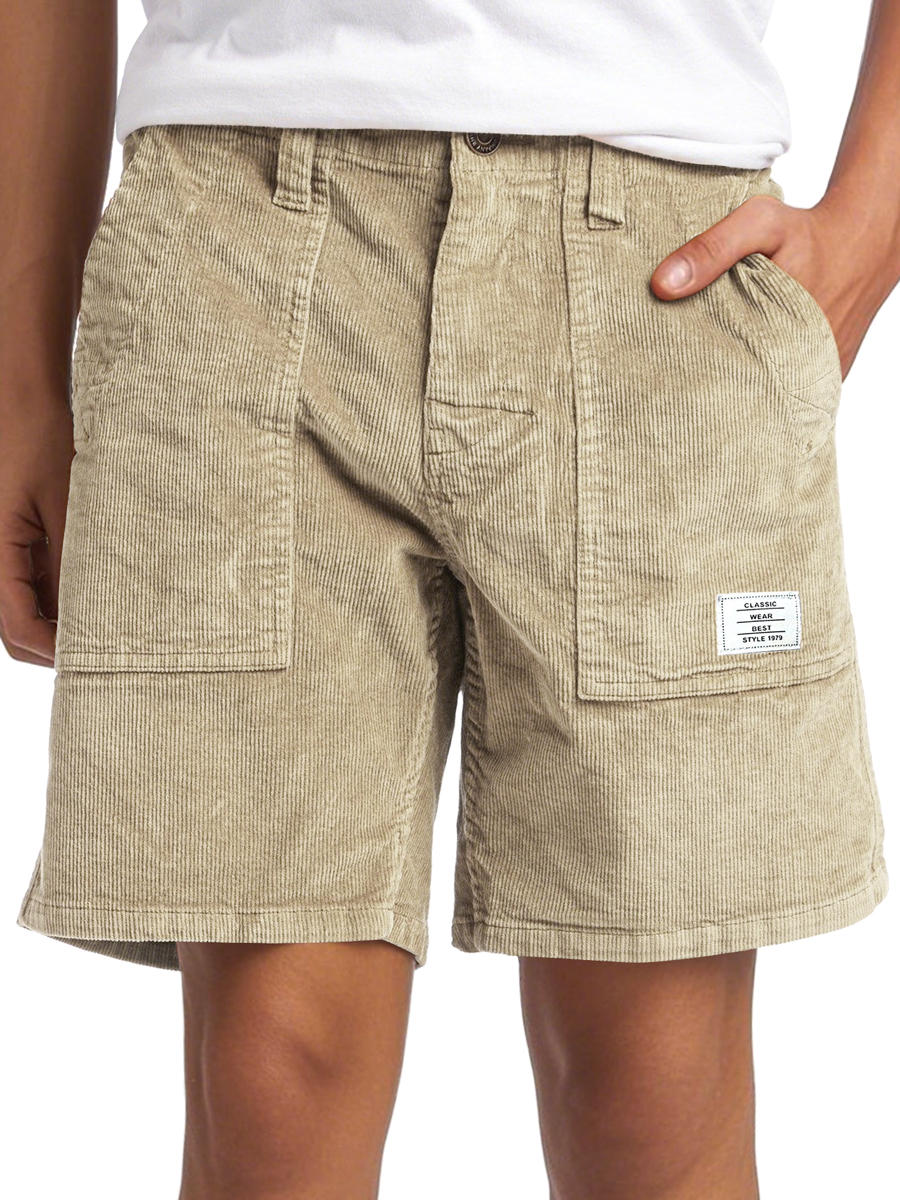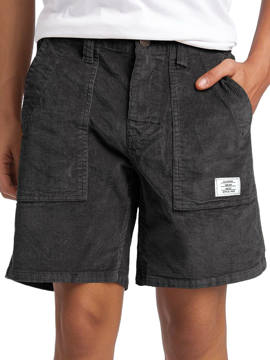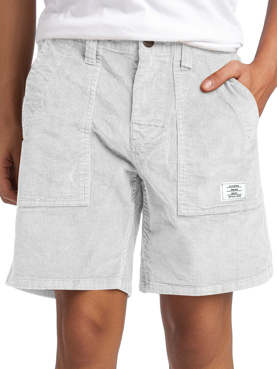 Men's Vintage Corduroy Embroidered Logo Casual Solid Color Comfort Shorts