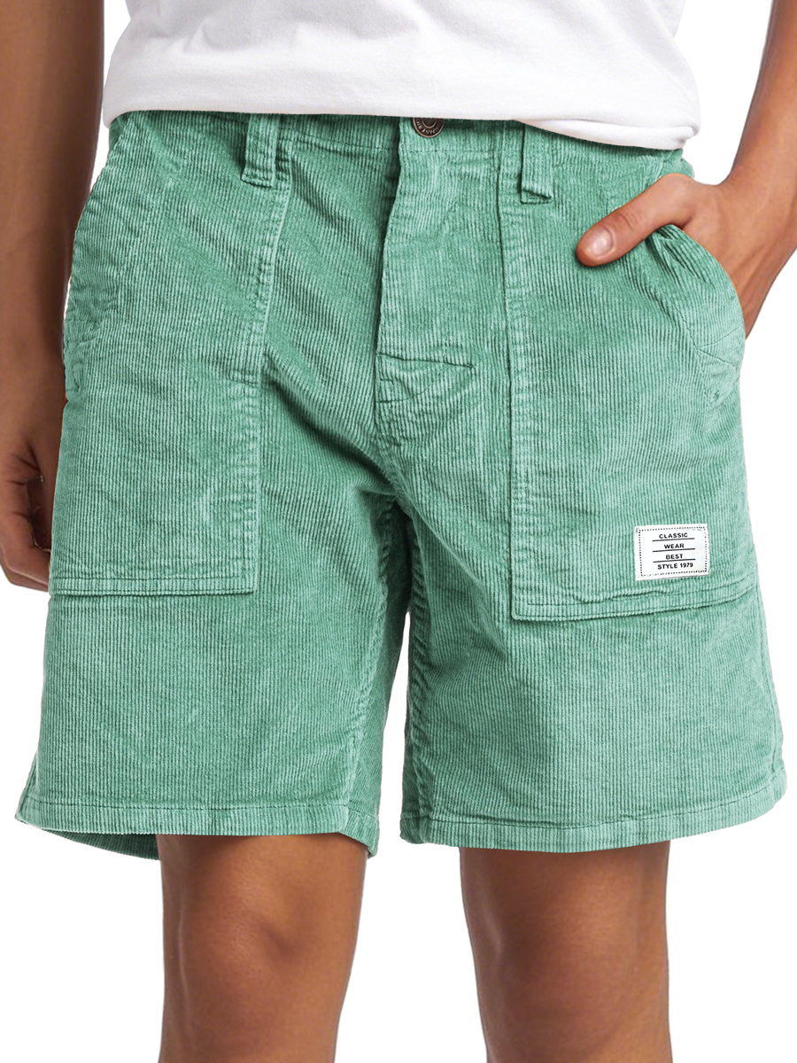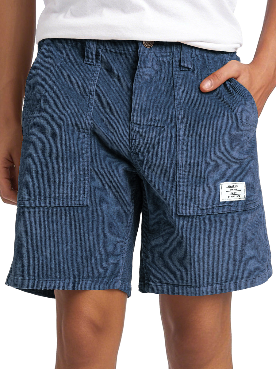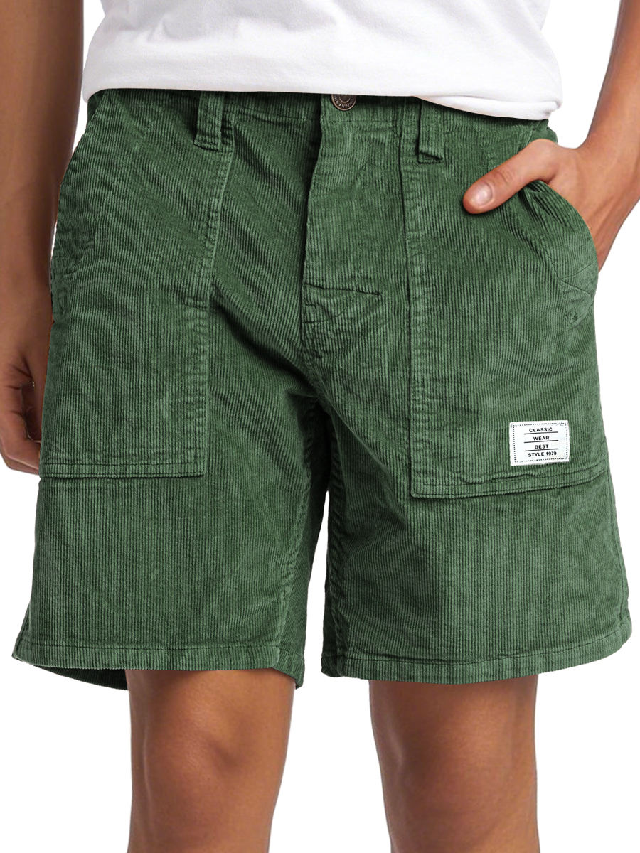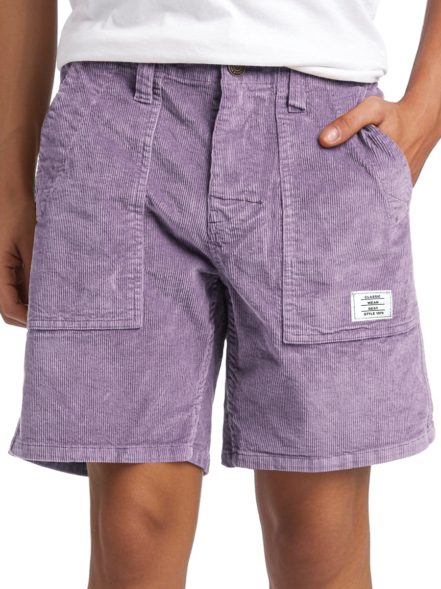 Men's Vintage Corduroy Embroidered Logo Casual Solid Color Comfort Shorts