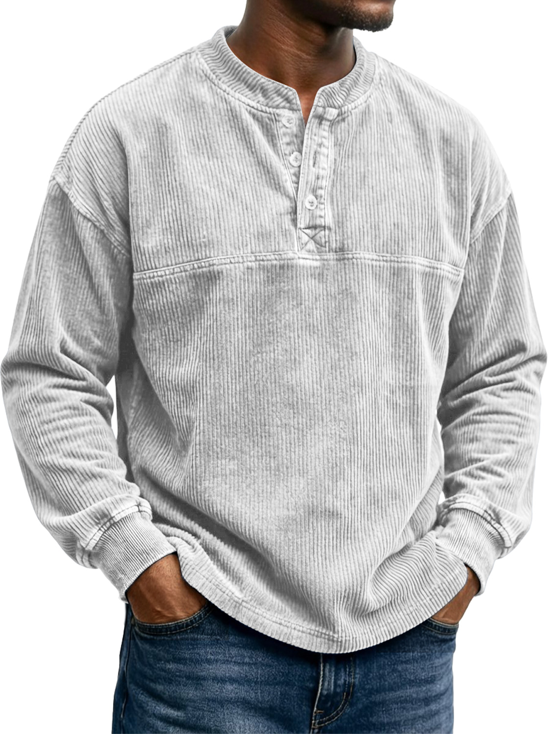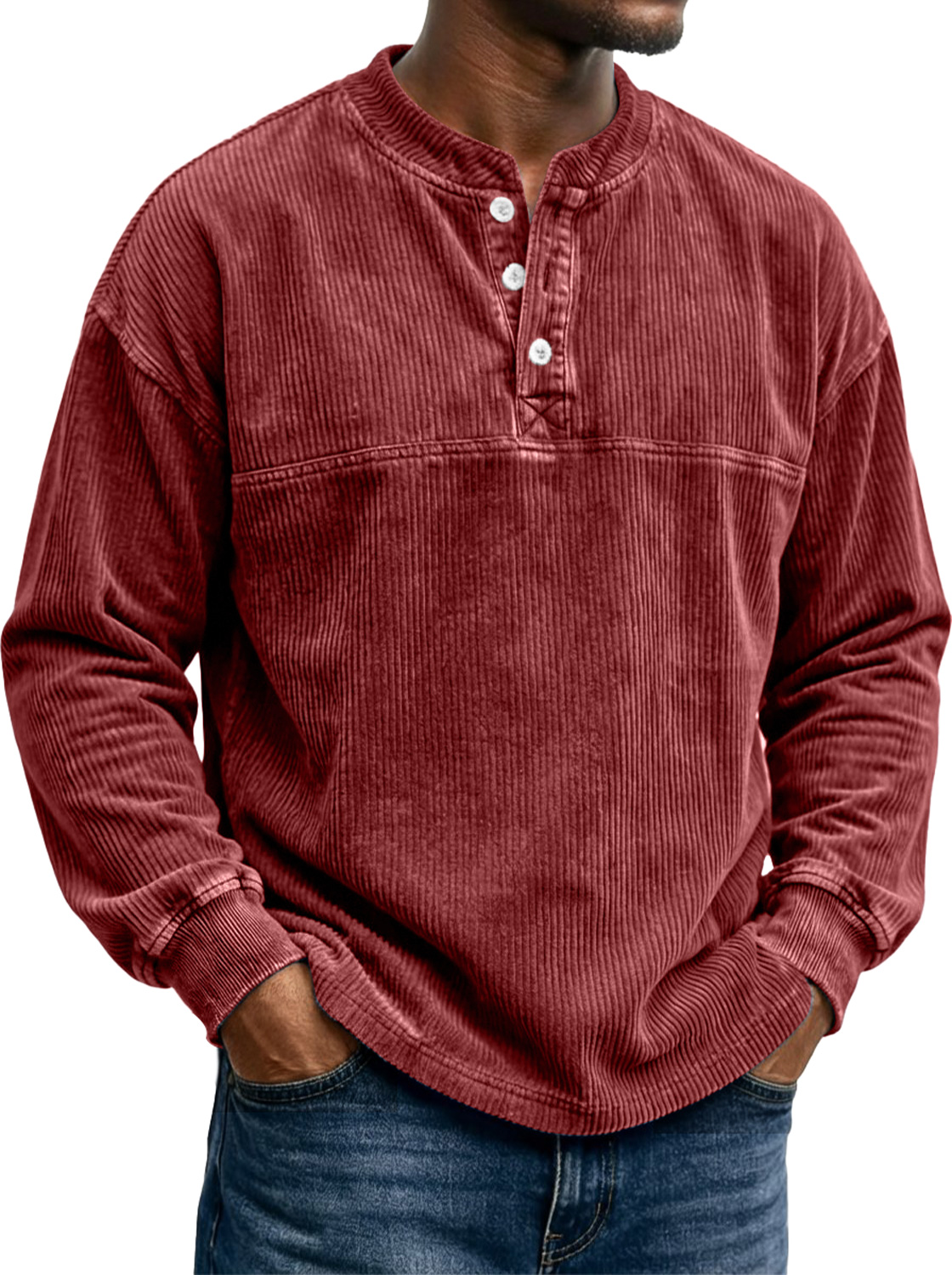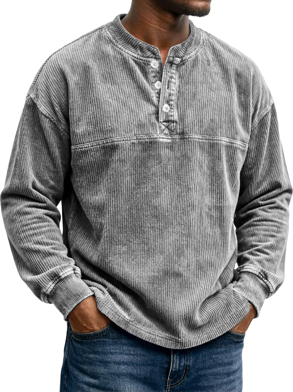 Men's Vintage Corduroy Long-sleeved Henley Shirt With A Stylish Design