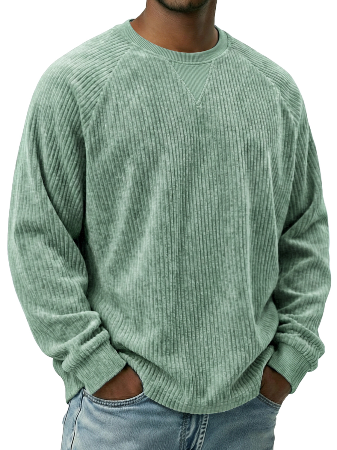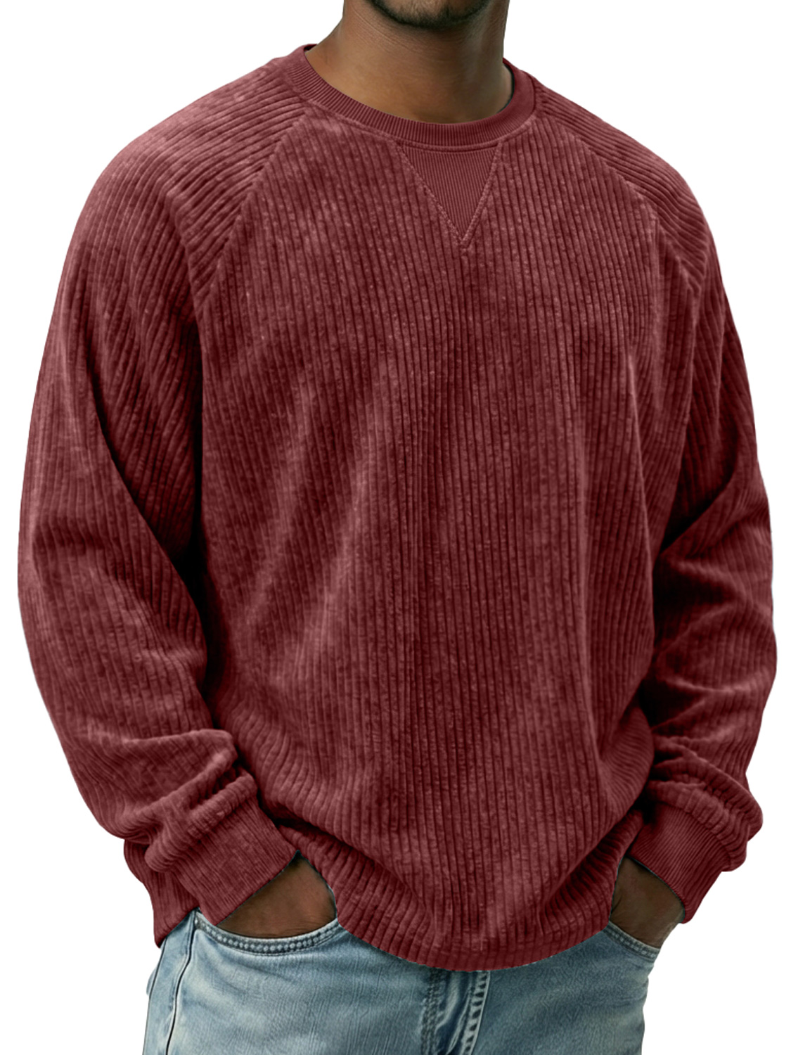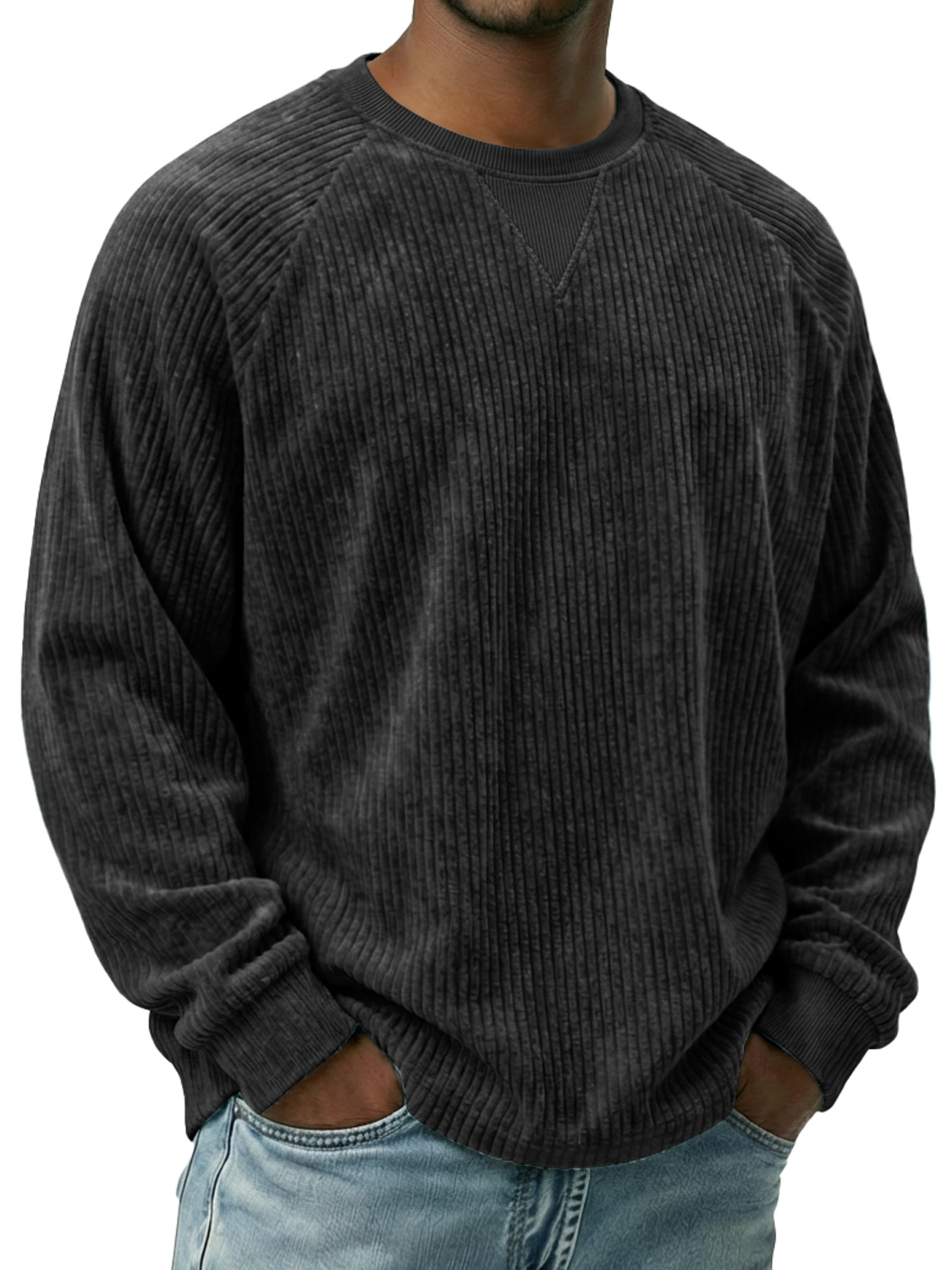 Men's Vintage Corduroy Long-sleeved T-shirt With Inverted Triangle Design
