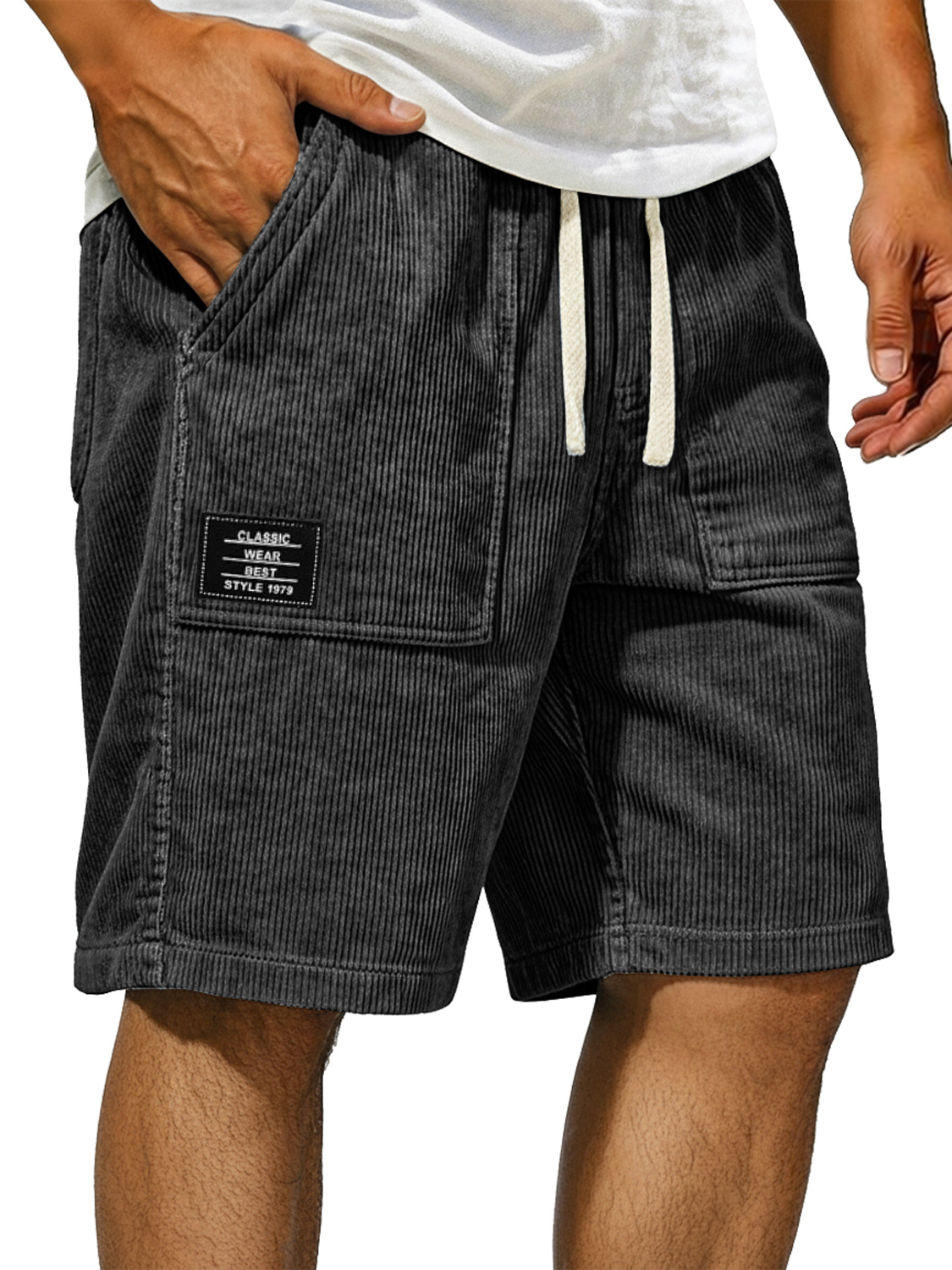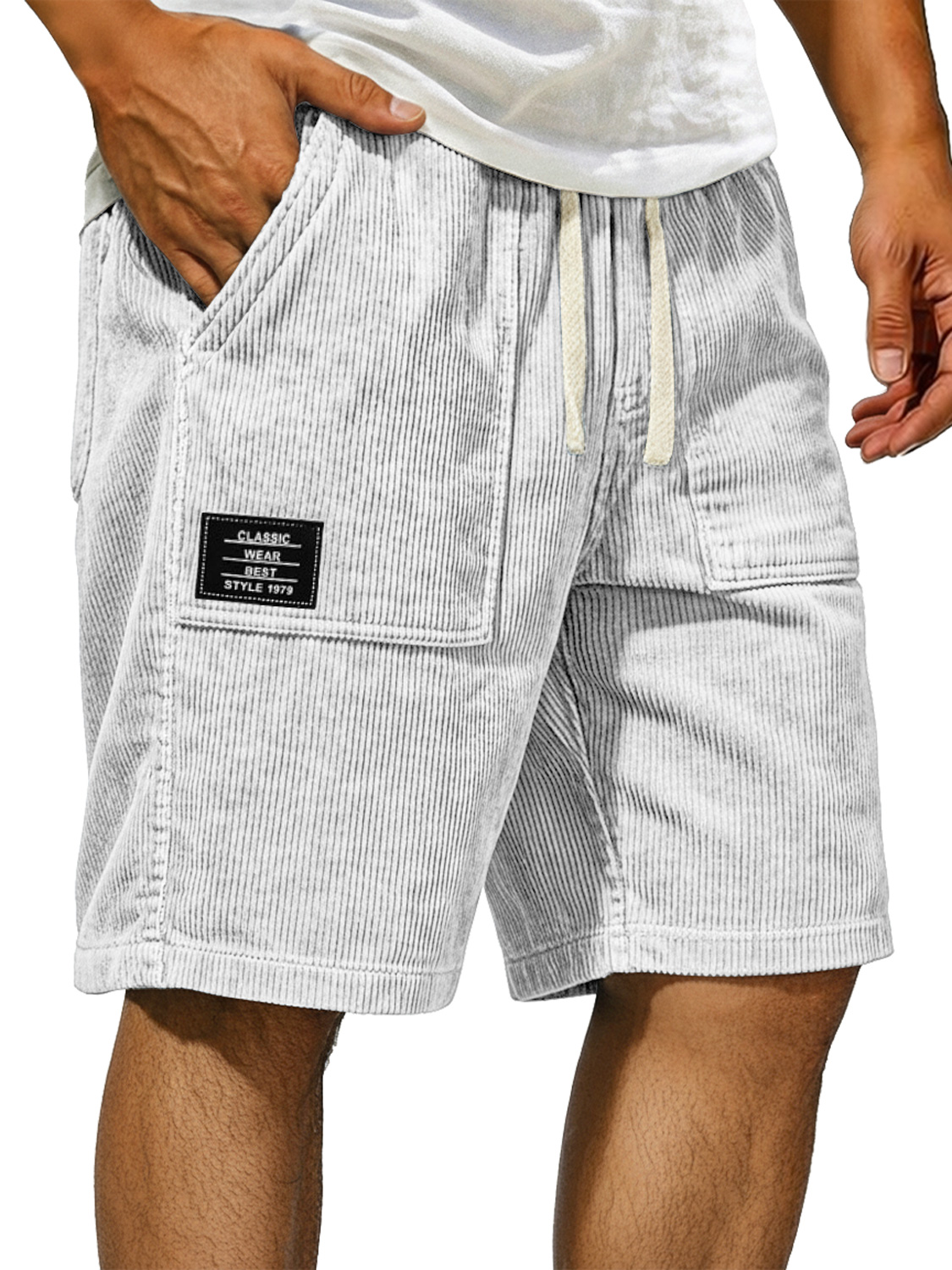Men's Vintage Corduroy Shorts With Patch Pockets And Embroidered Logo