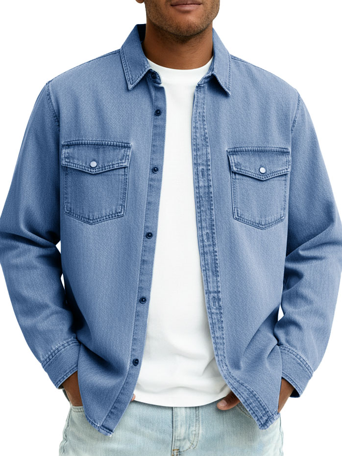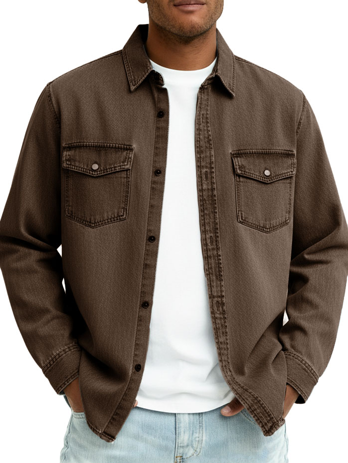 Men's Fashionable Casual Retro Double Pocket Long-Sleeved Shirt$43.99 USD -