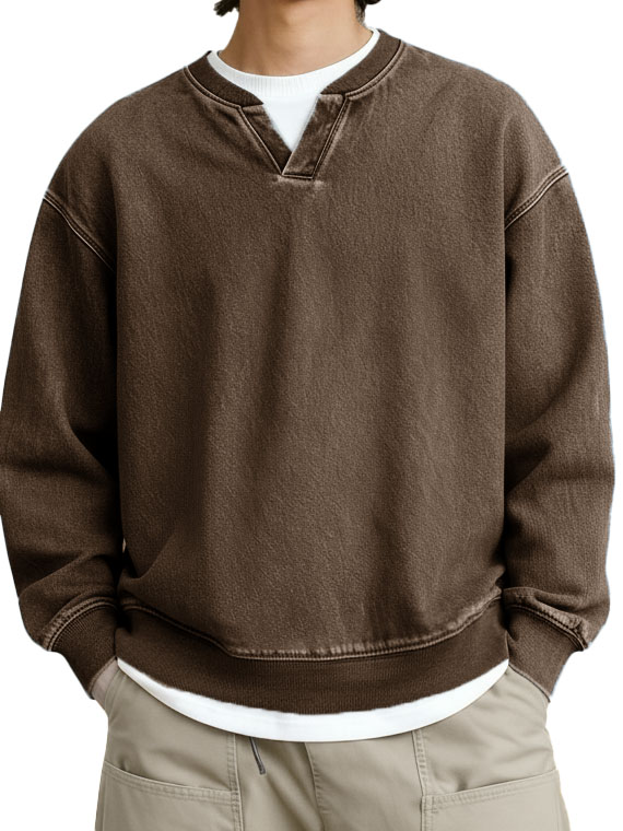 Men's Stylish Vintage Color-blocked Collar Pullover Henley Top$41.99 USD -