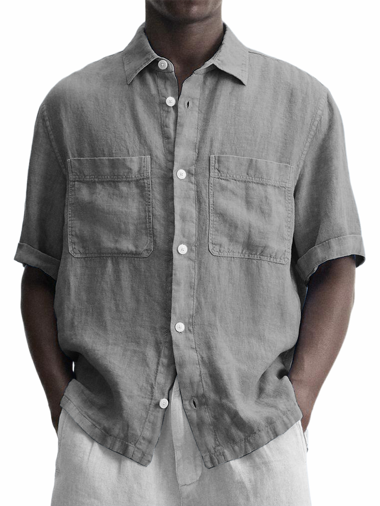 Men's Cotton And Linen Double Pocket Classic Casual Versatile Short-sleeved Shirt$39.99 USD -