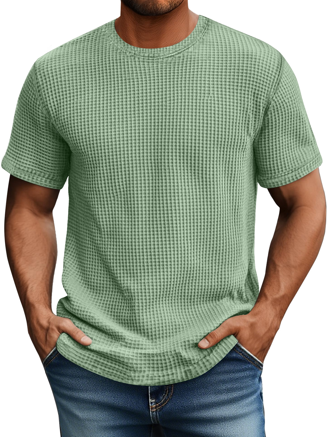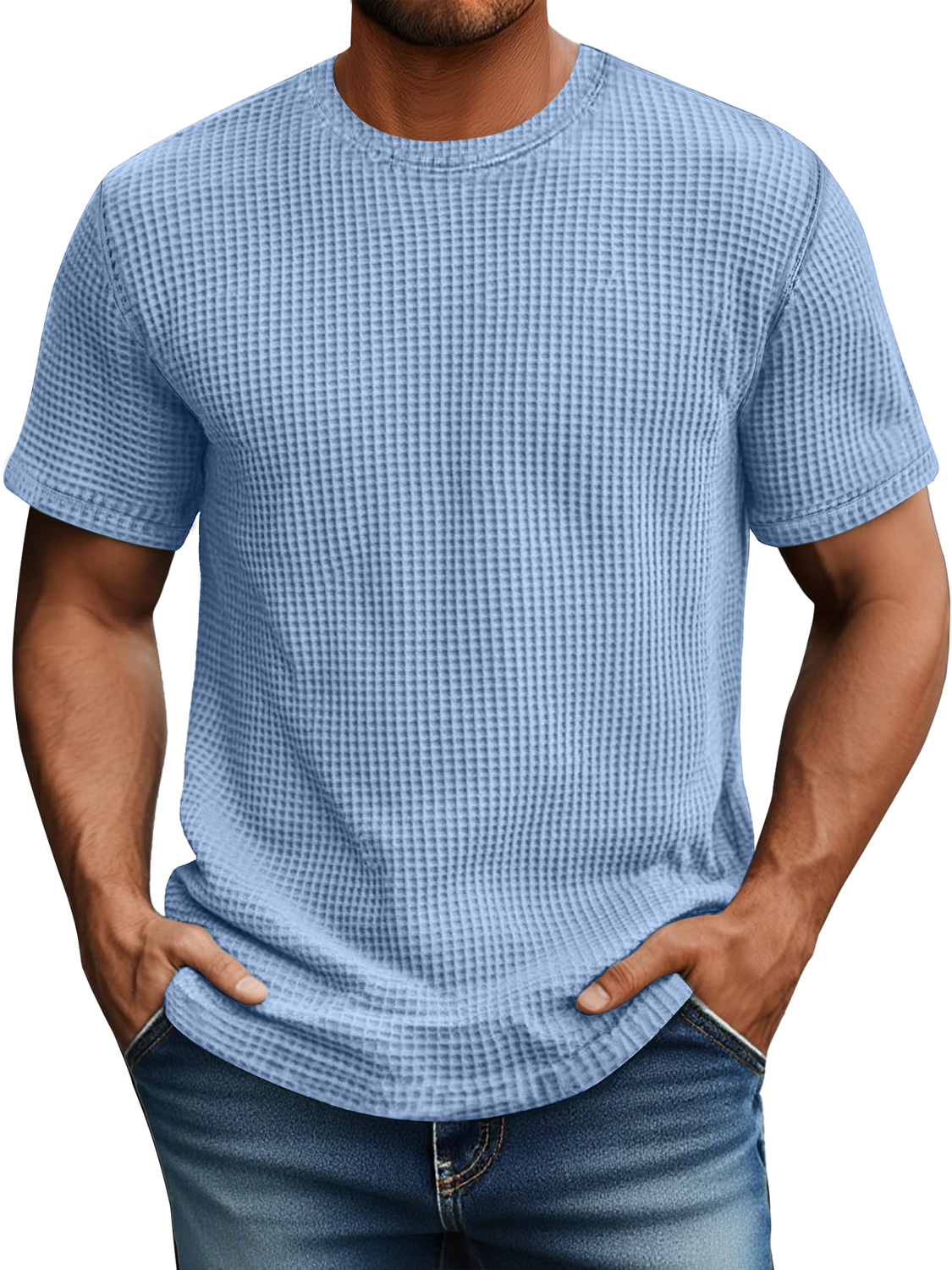 Men's Daily Waffle Casual Round Neck Comfortable Short Sleeve T-Shirt$39.99 USD -
