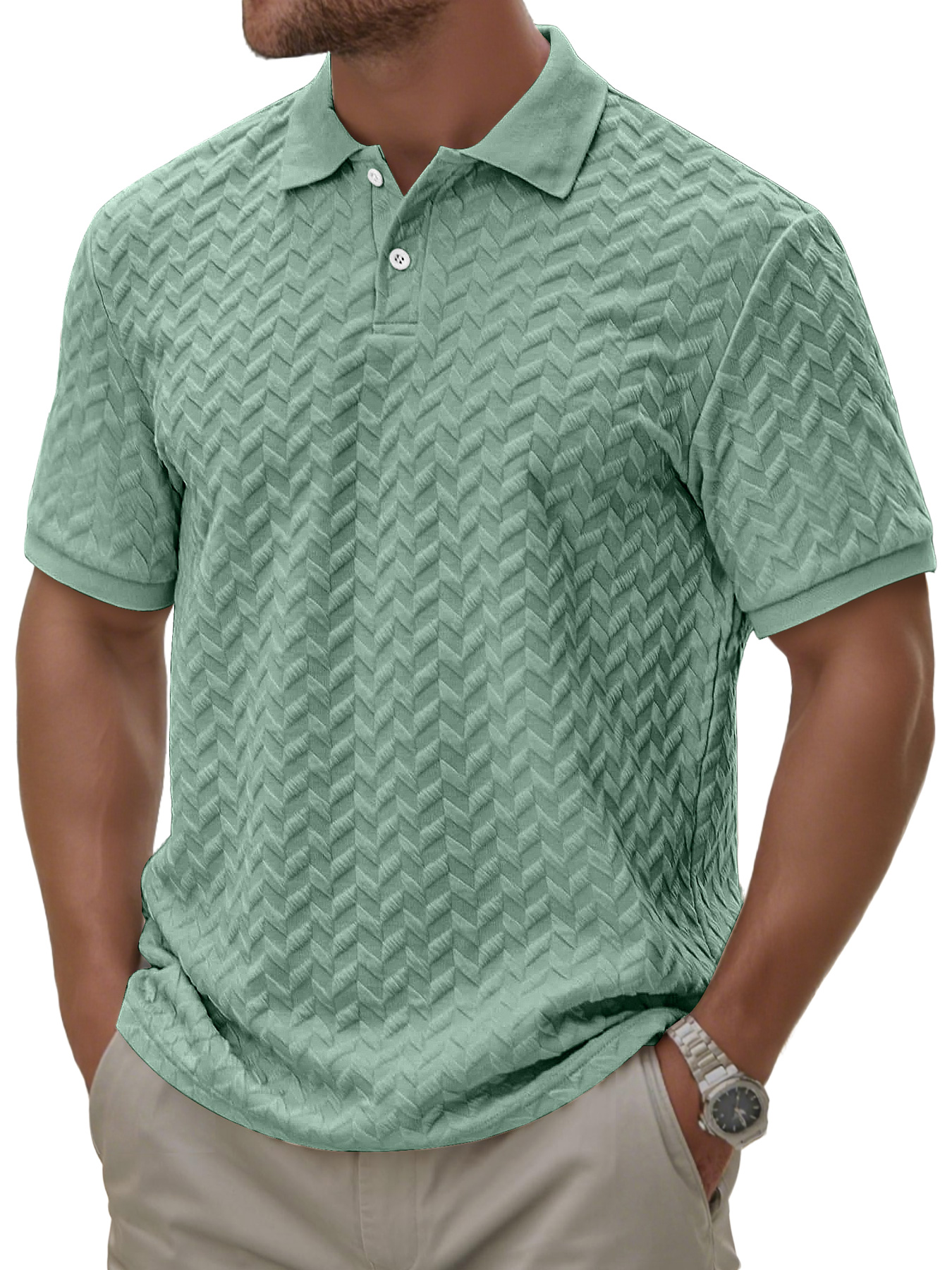 Men's Daily Texture Casual Lapel Button Comfortable Short-sleeved Polo Shirt$39.99 USD -