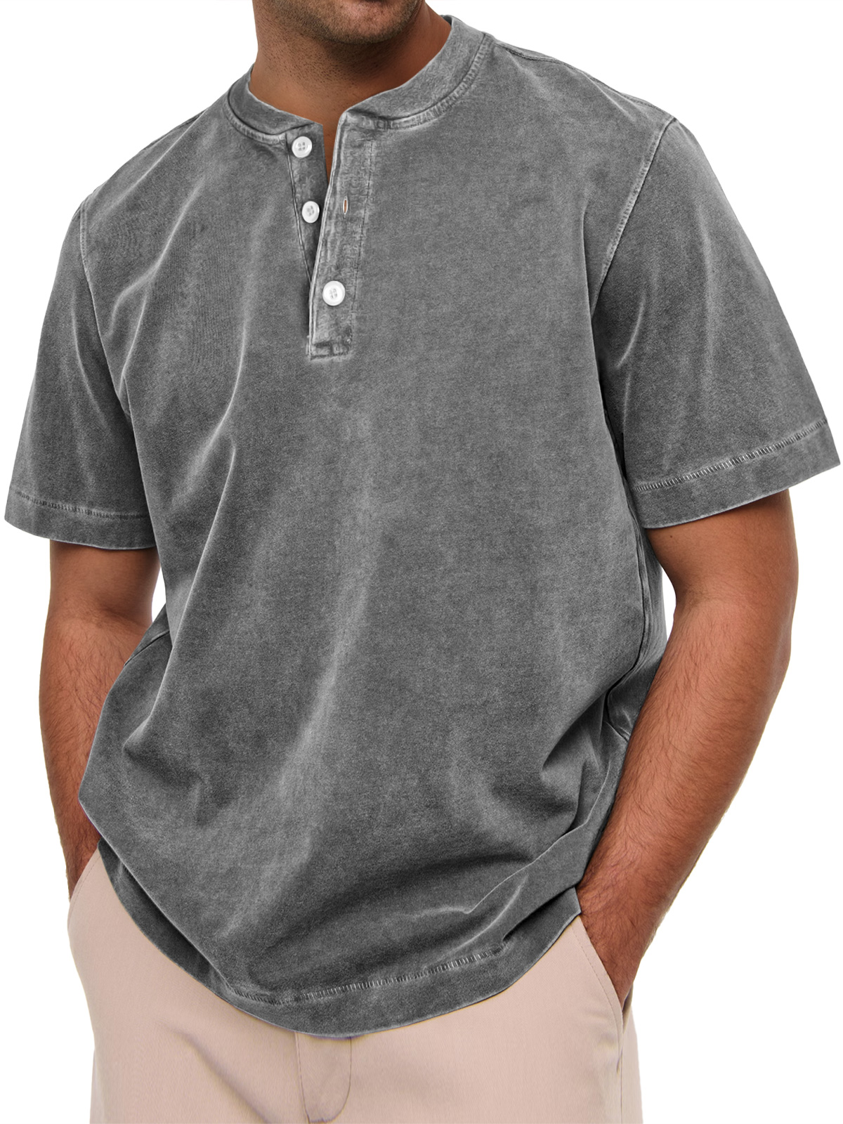 Men's Casual Vintage Button Solid Color Short Sleeve Henley Shirt$39.99 USD -