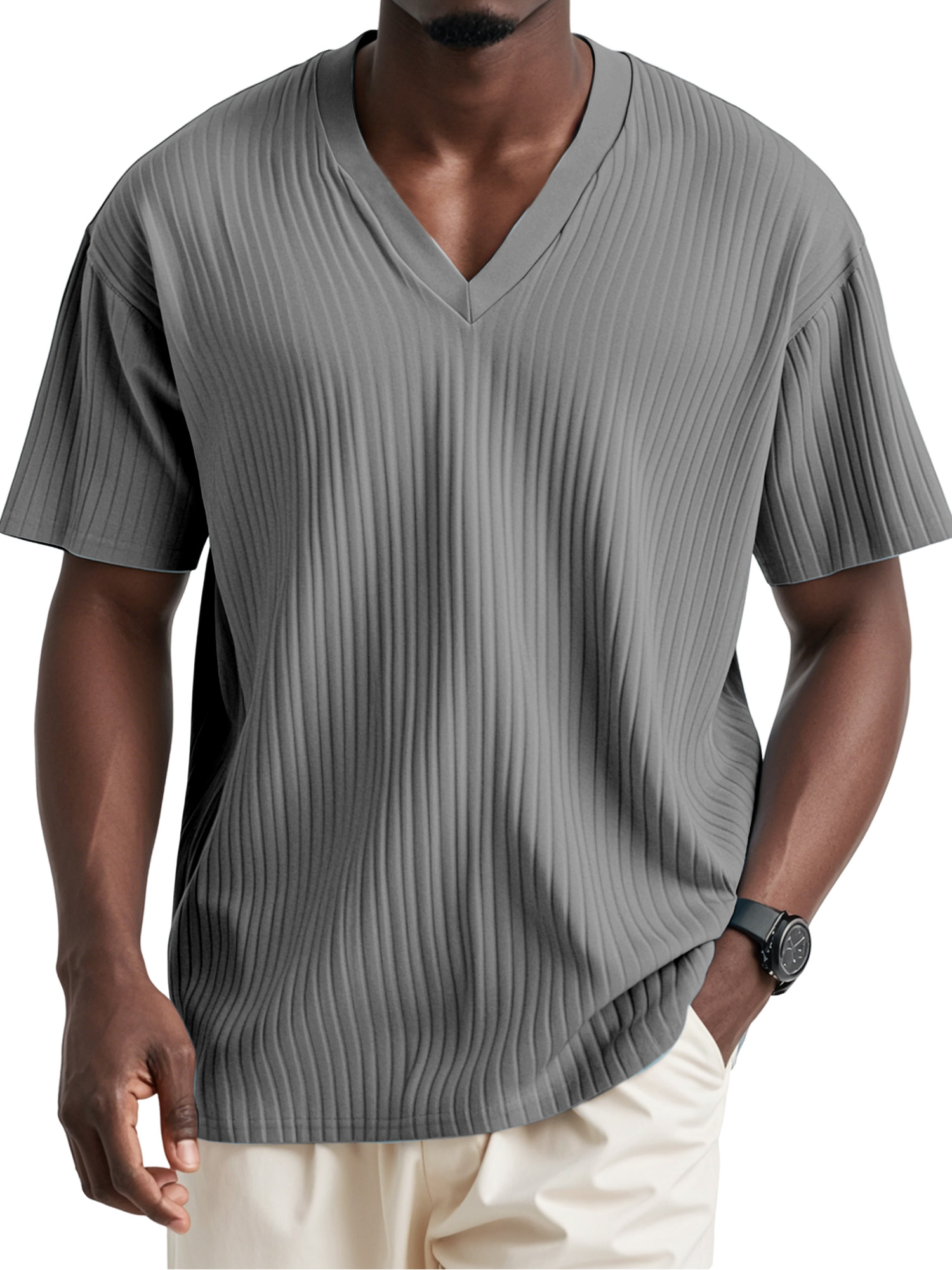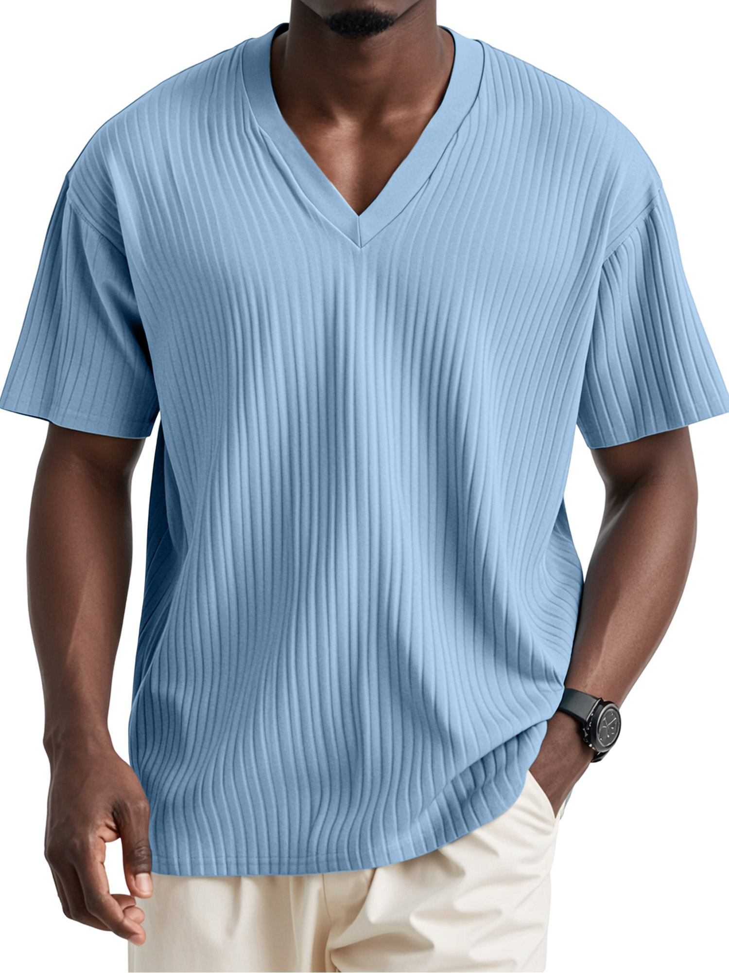 Men's Casual Daily Solid Color Pit V-neck Short-sleeved T-shirt$39.99 USD -