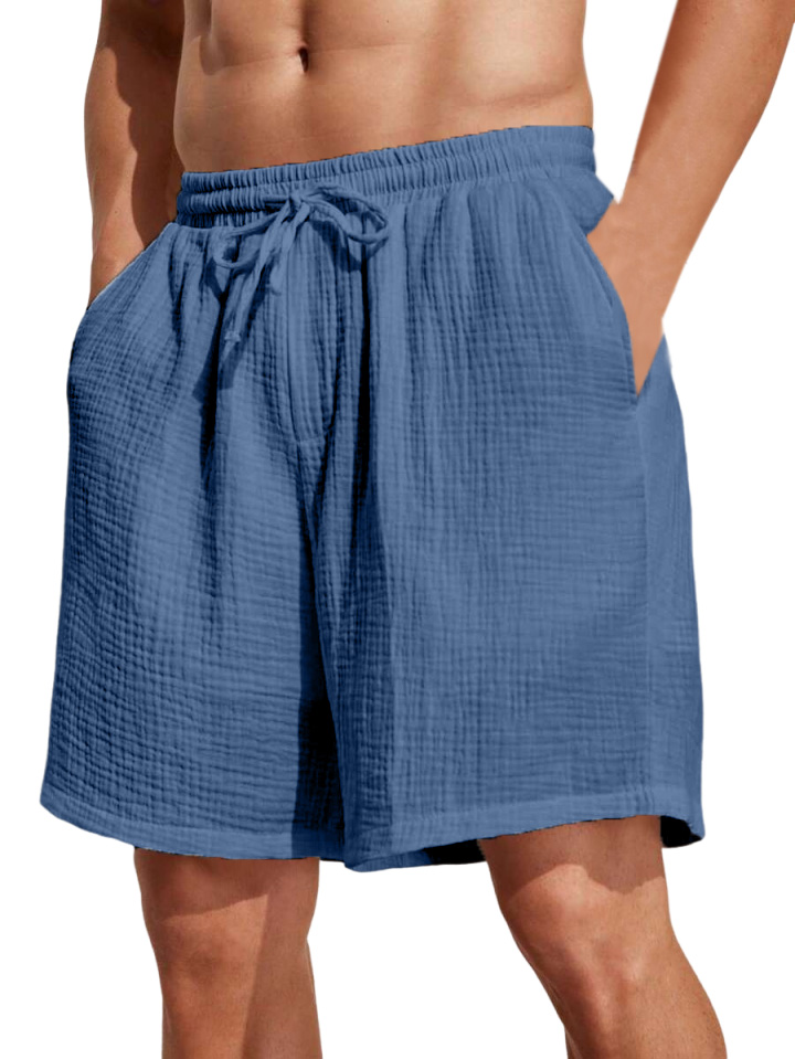 Men's Solid Color Vacation Lace Cotton and Linen Shorts and Casual Shorts$37.99 USD