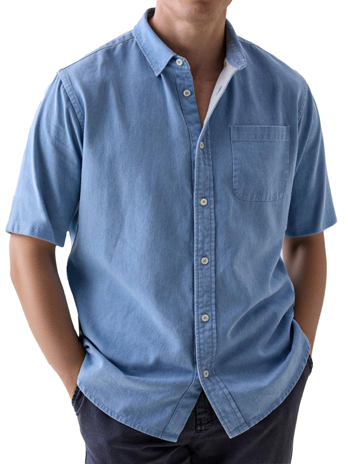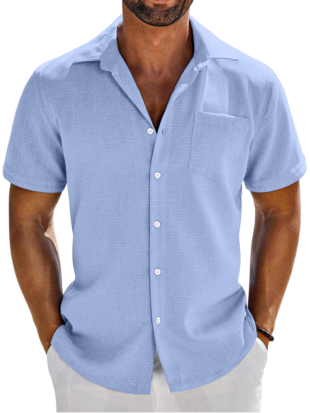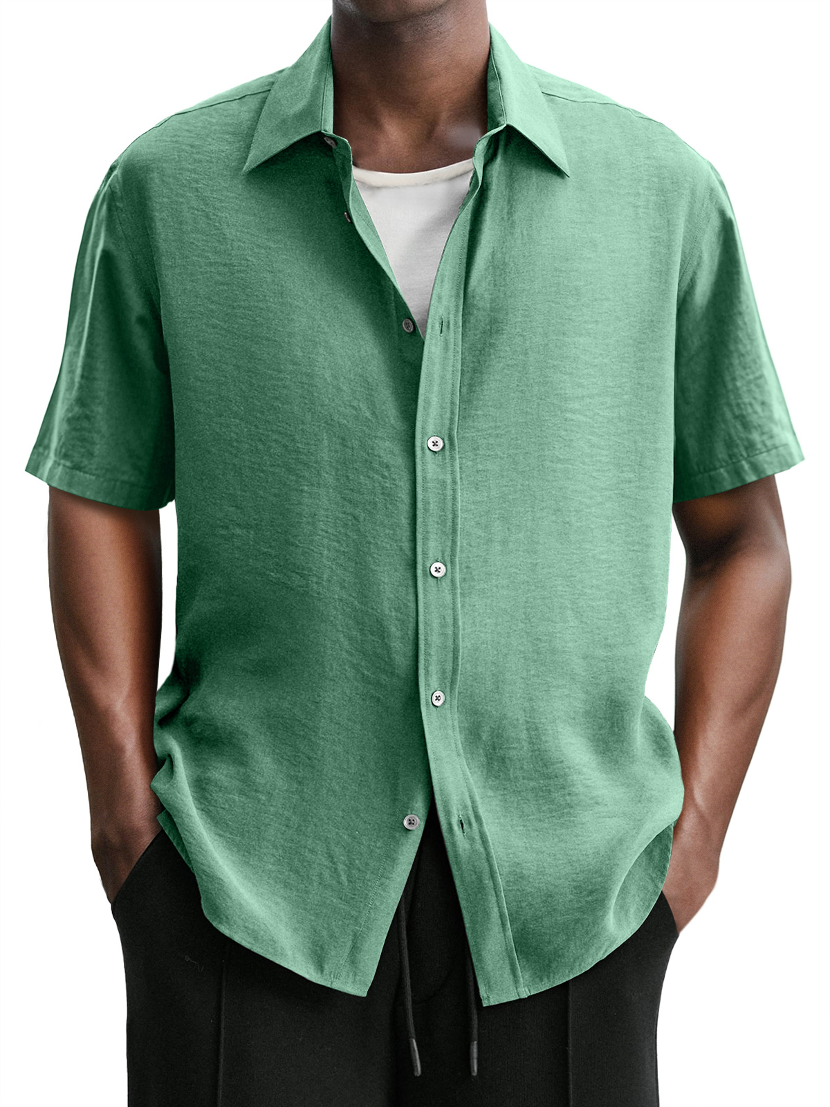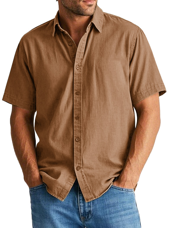 Men's Casual Lapel Comfortable Solid Color Short Sleeve Shirt$39.99 USD