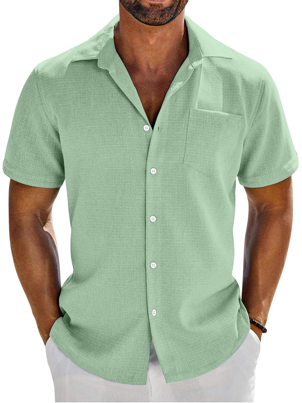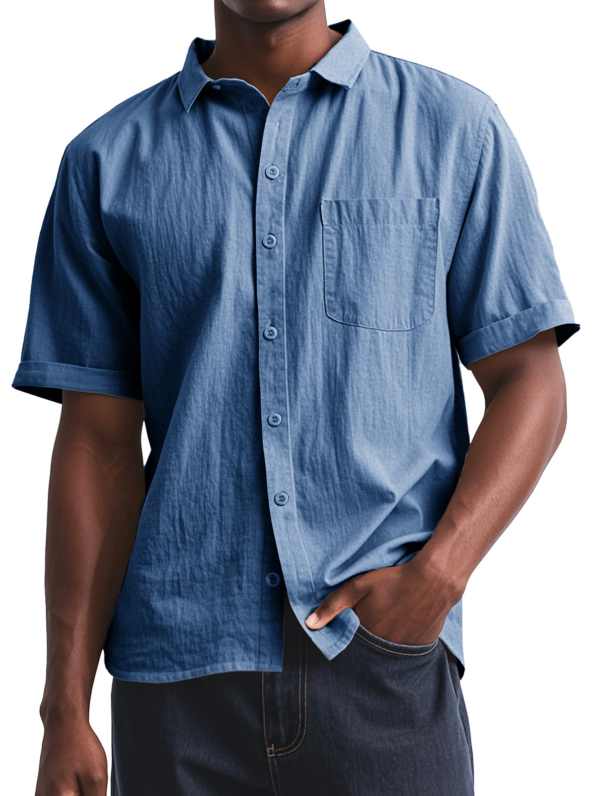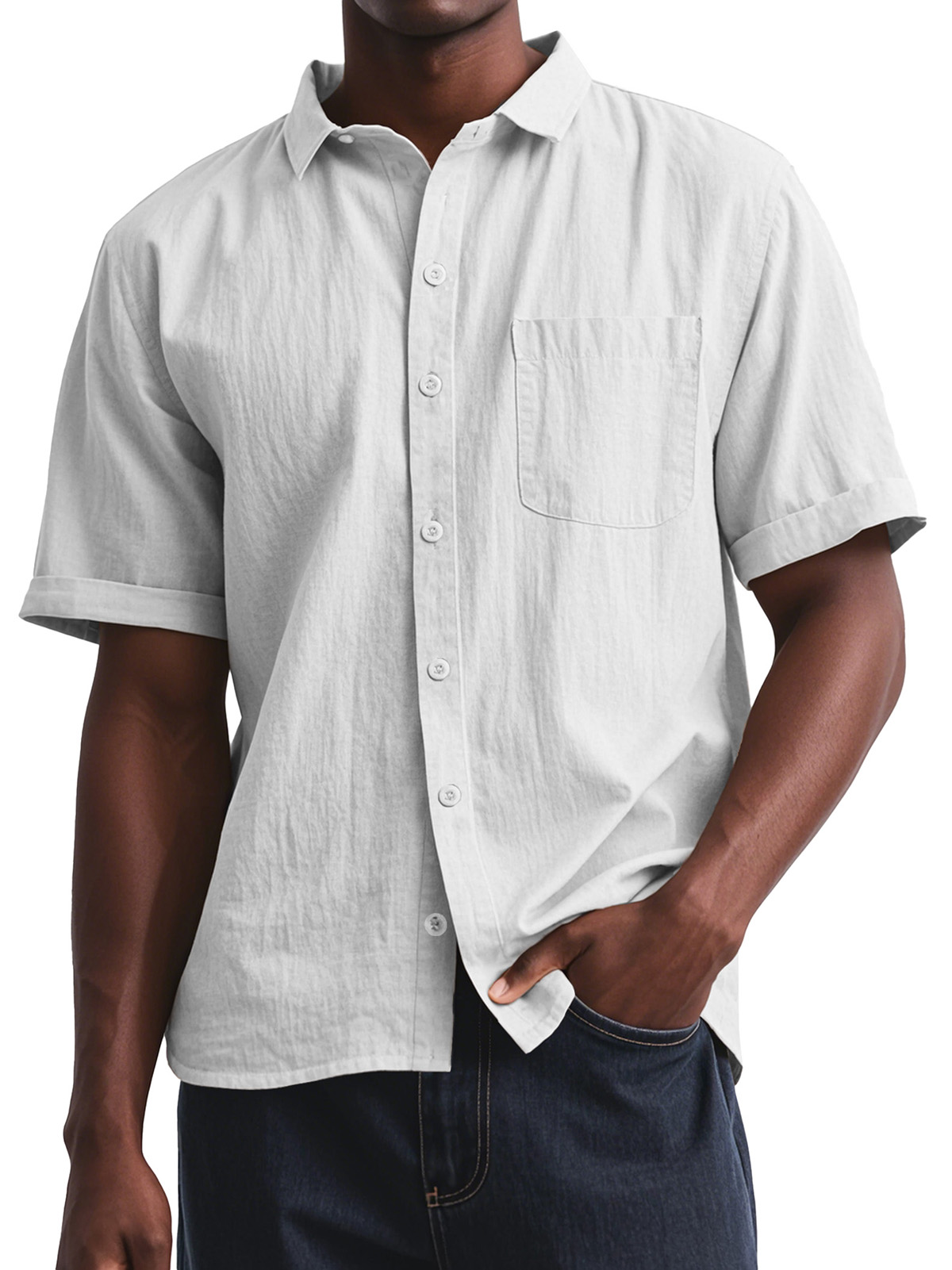 Men's Casual Daily Loose And Comfortable Solid Color Short-sleeved Shirt$39.99 USD -