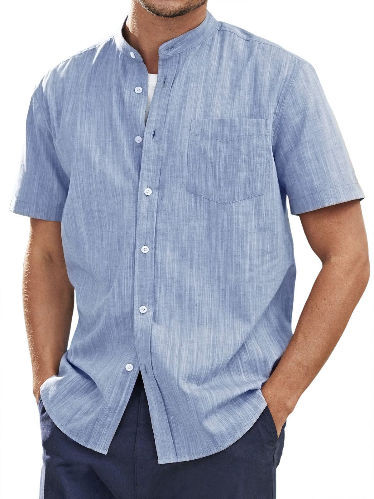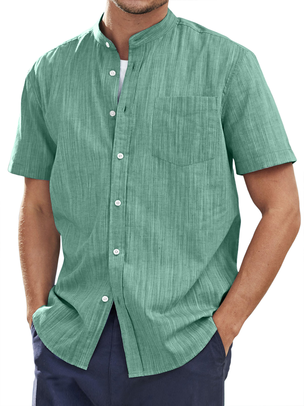 Men's Casual Stand Collar Solid Color Comfortable Short Sleeve Shirt$39.99 USD -