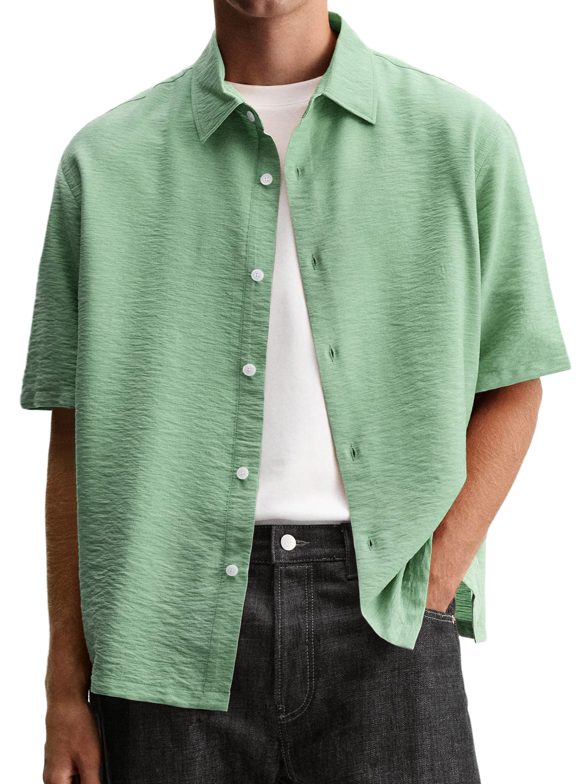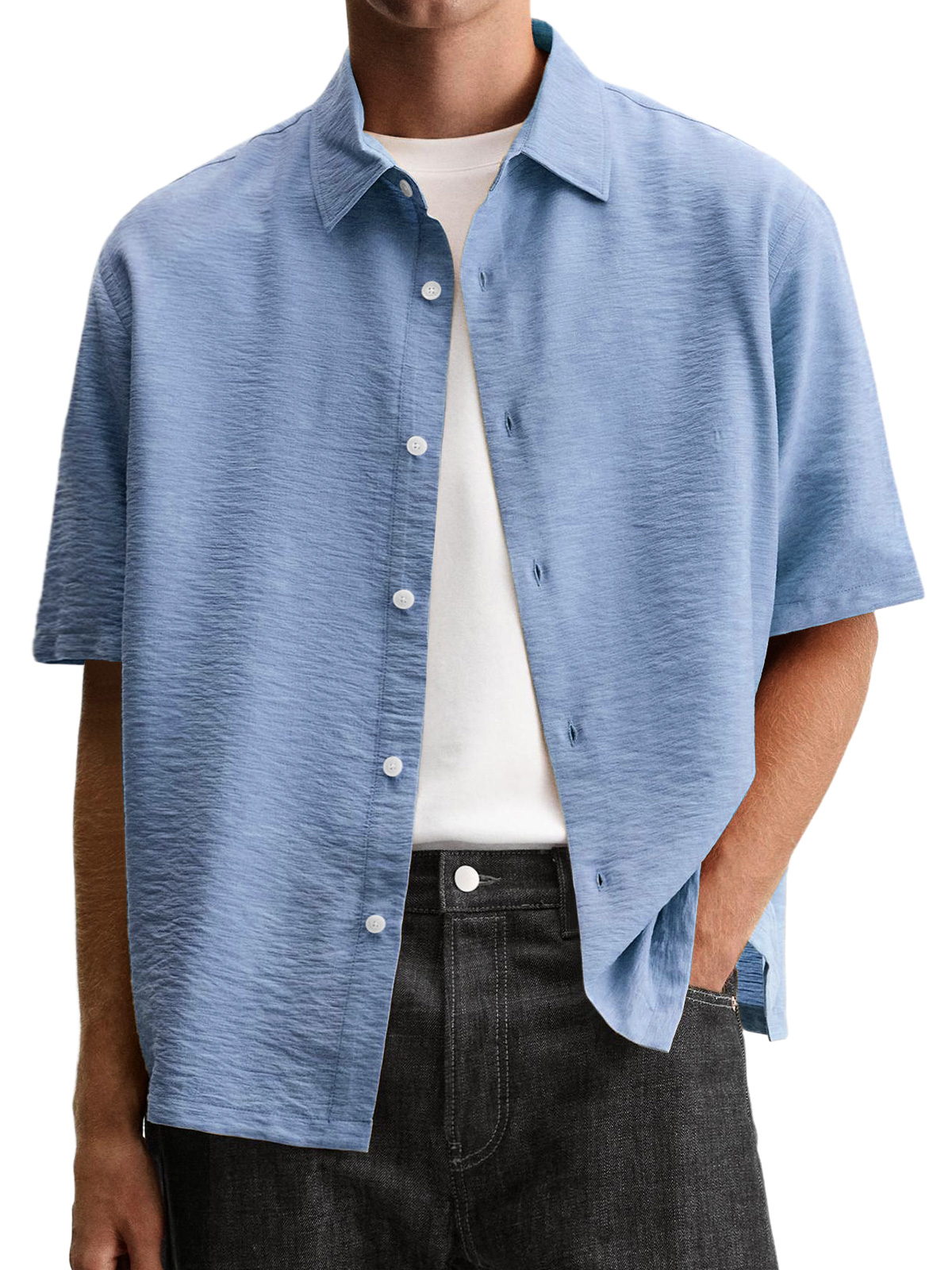 Men's Comfortable Fit Crinkled Stylish Texture Button-Down Lapel Short-Sleeved Shirt$39.99 USD -