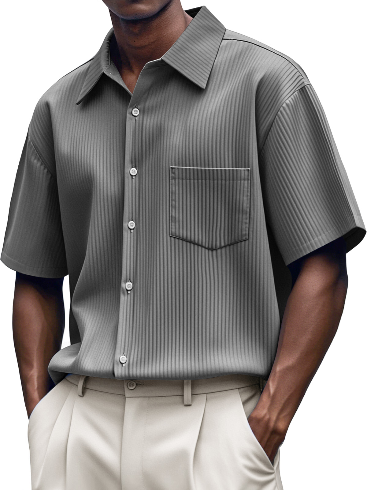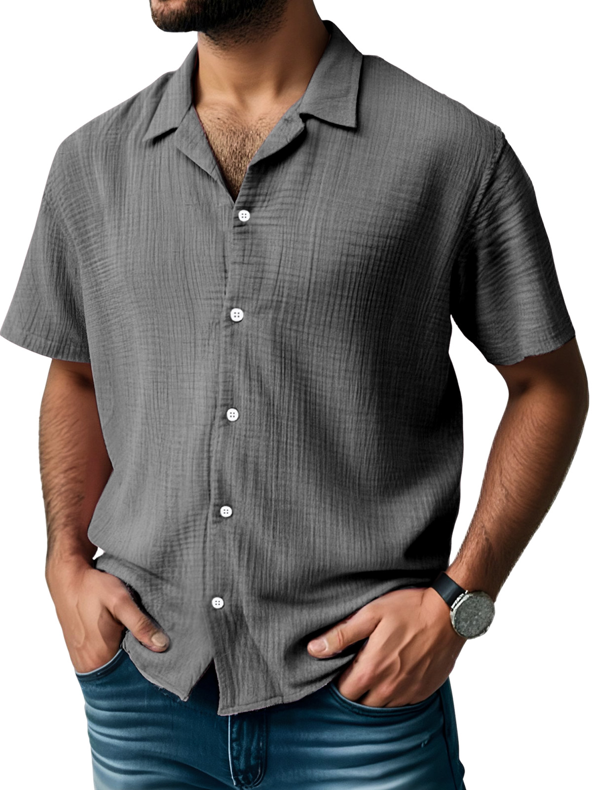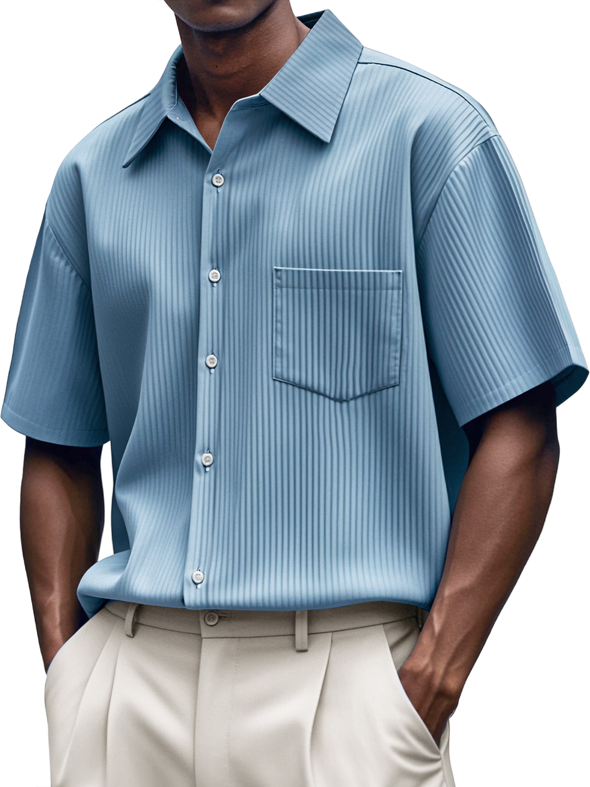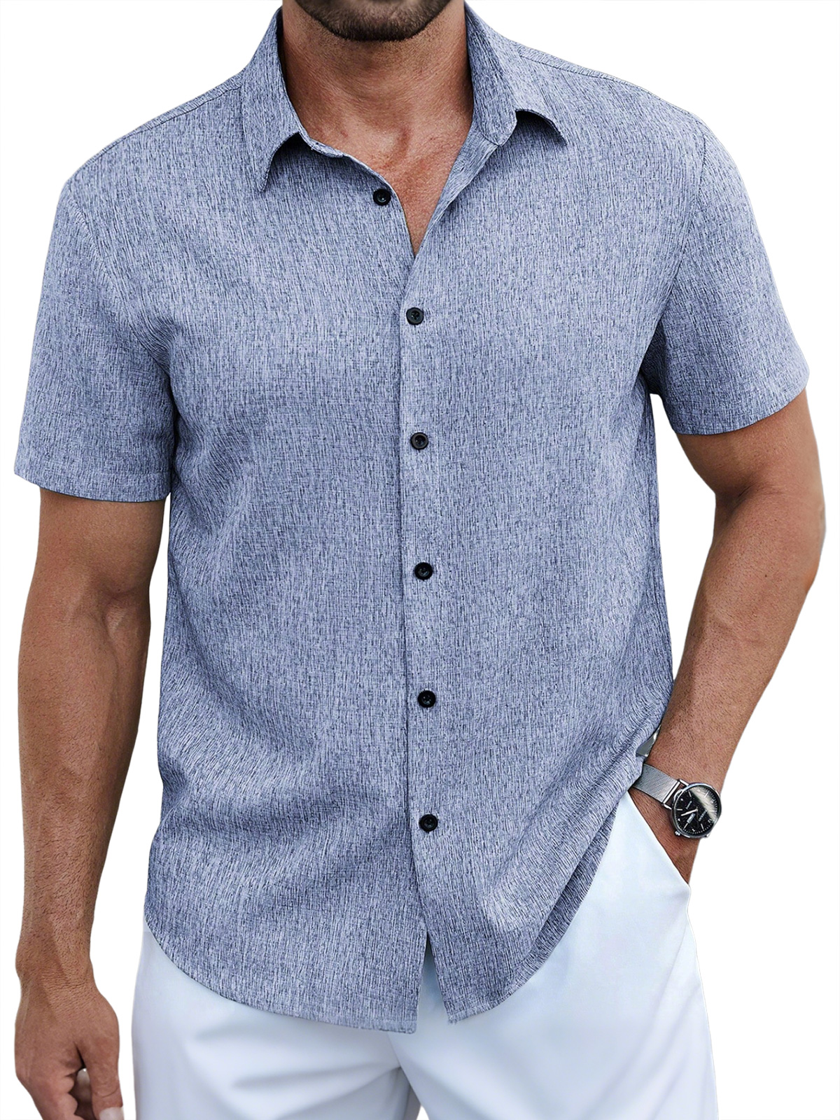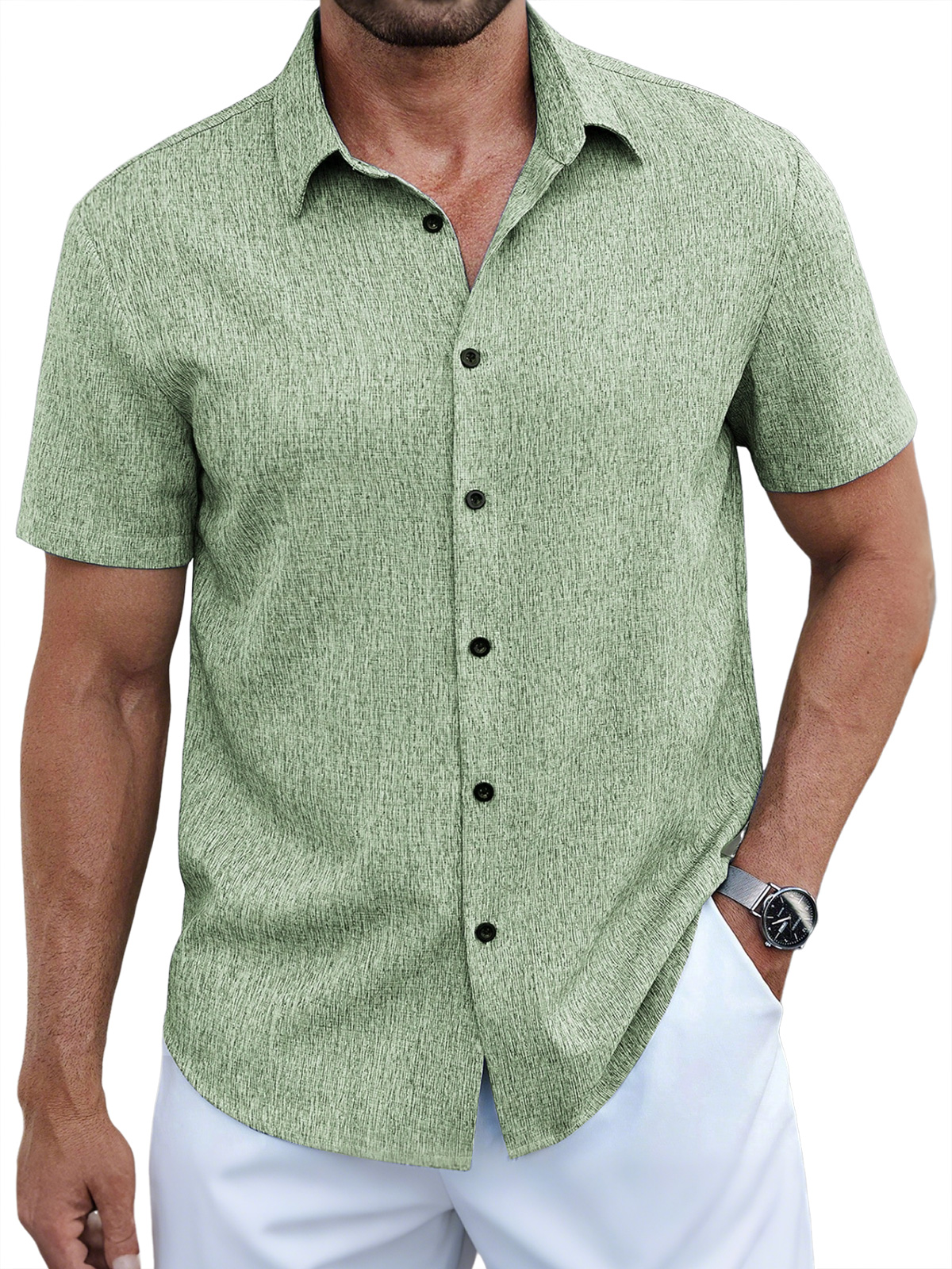 Men's Pit Texture Casual Lapel Comfortable Short-sleeved Shirt$39.99 USD -