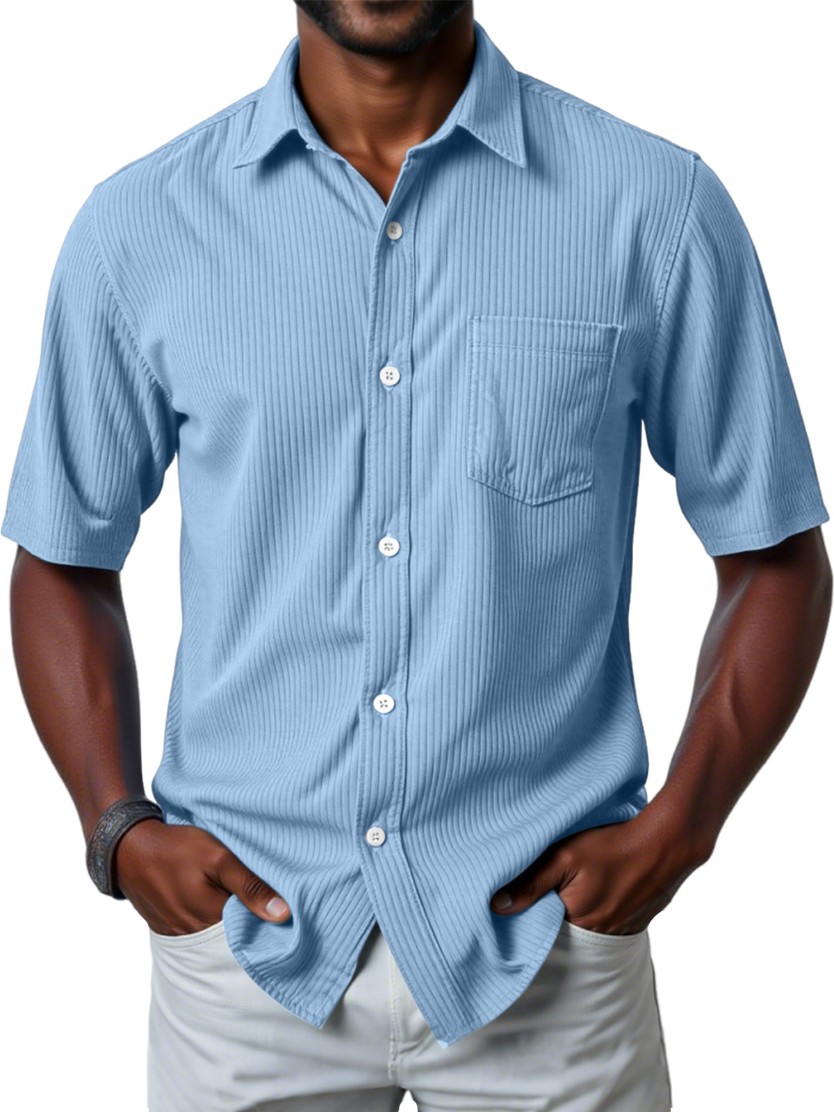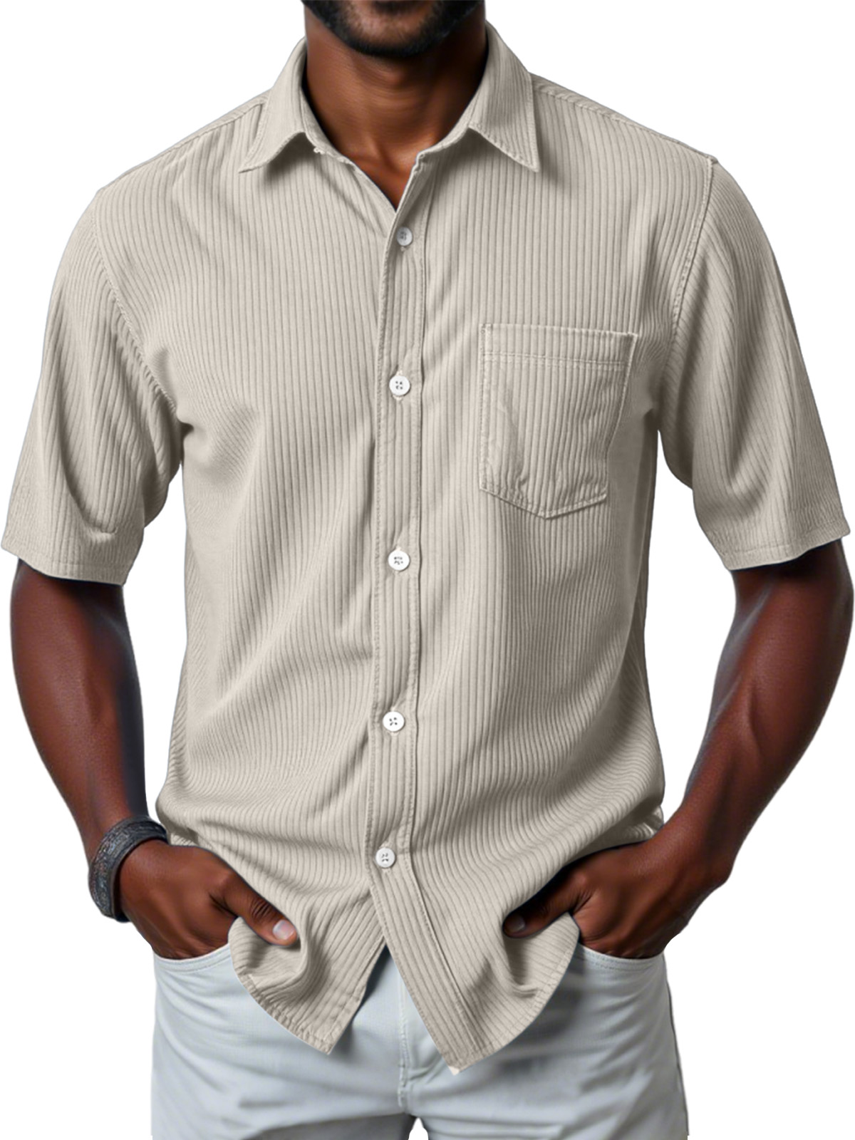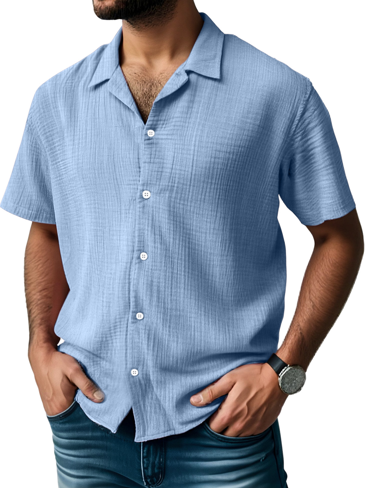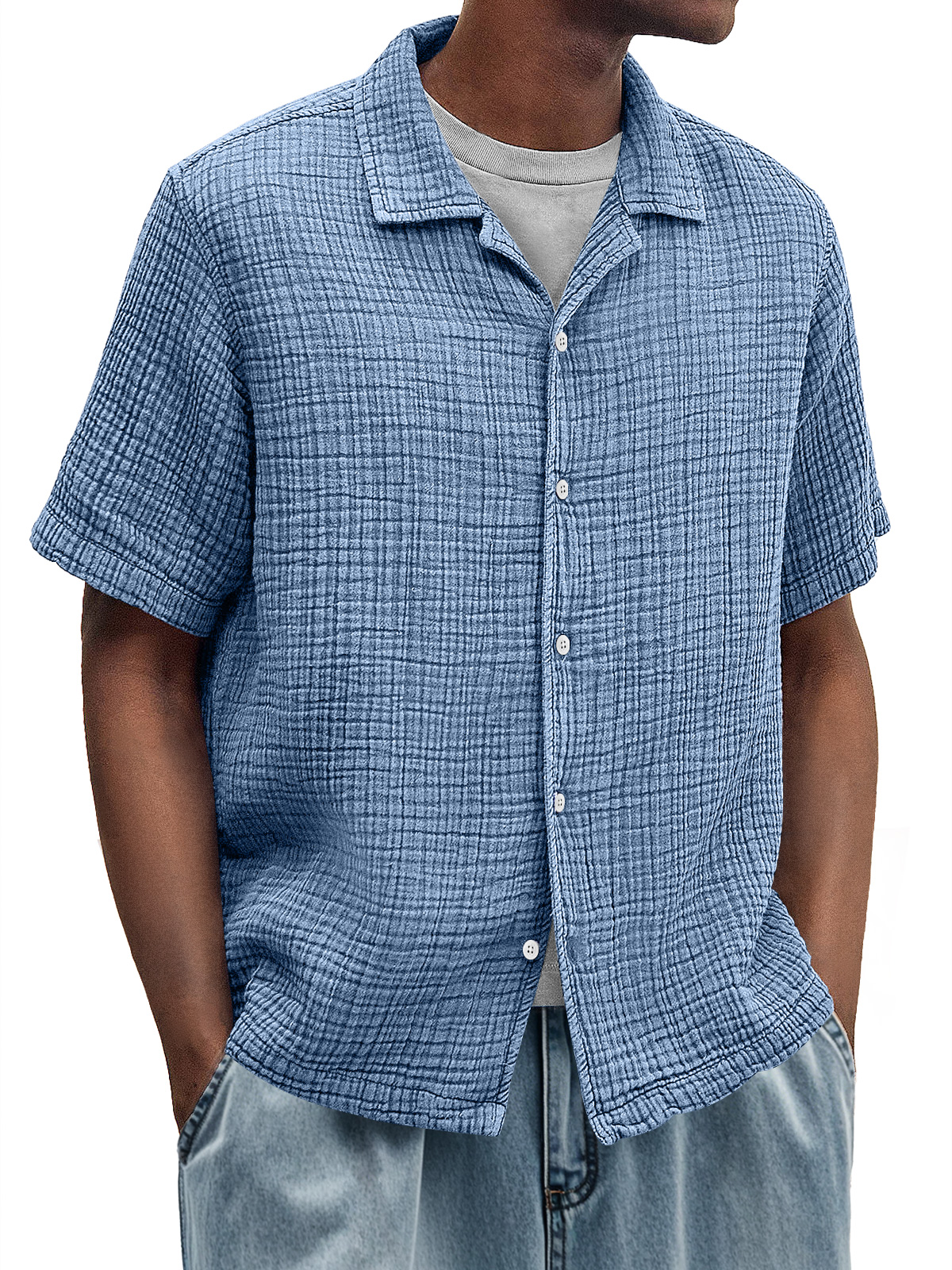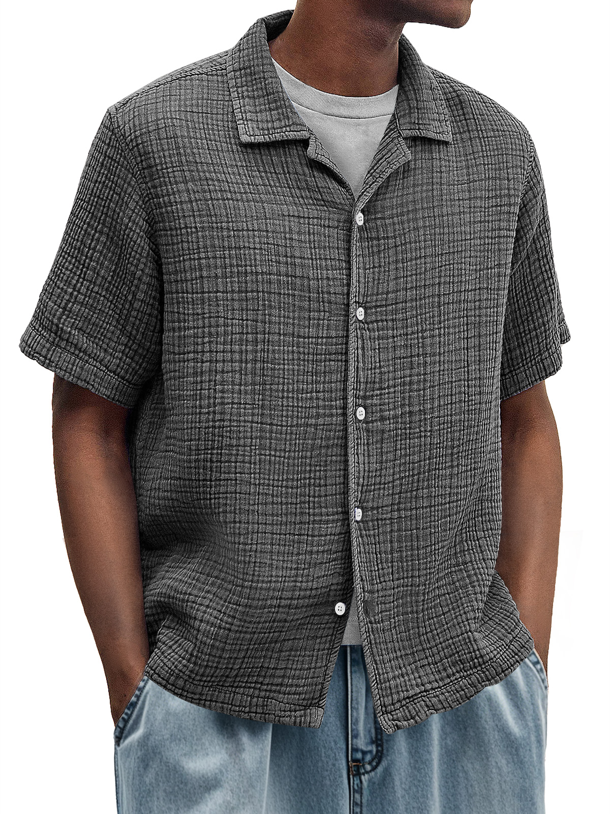 Men's Pit Texture Casual Lapel Comfortable Short-sleeved Shirt$39.99 USD -