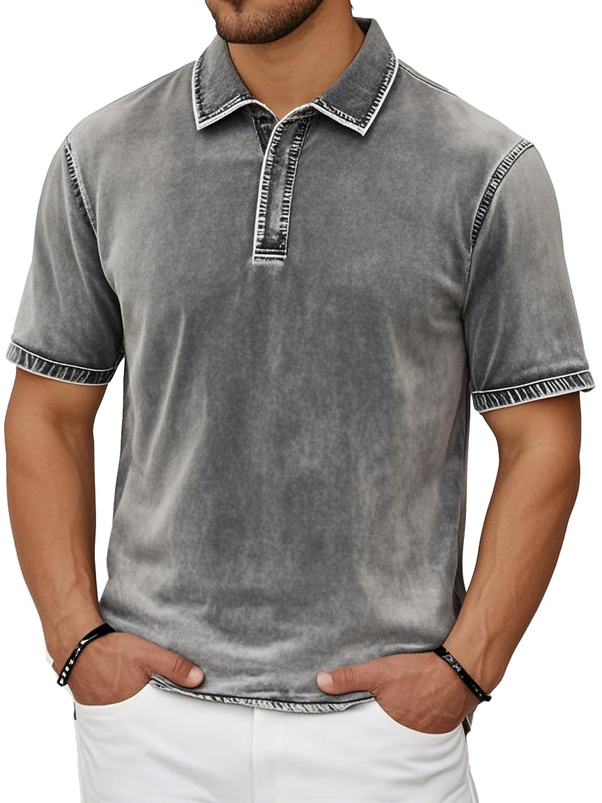 Men's Fashion Casual Retro Distressed Lapel Short-sleeved Polo Shirt$39.99 USD -