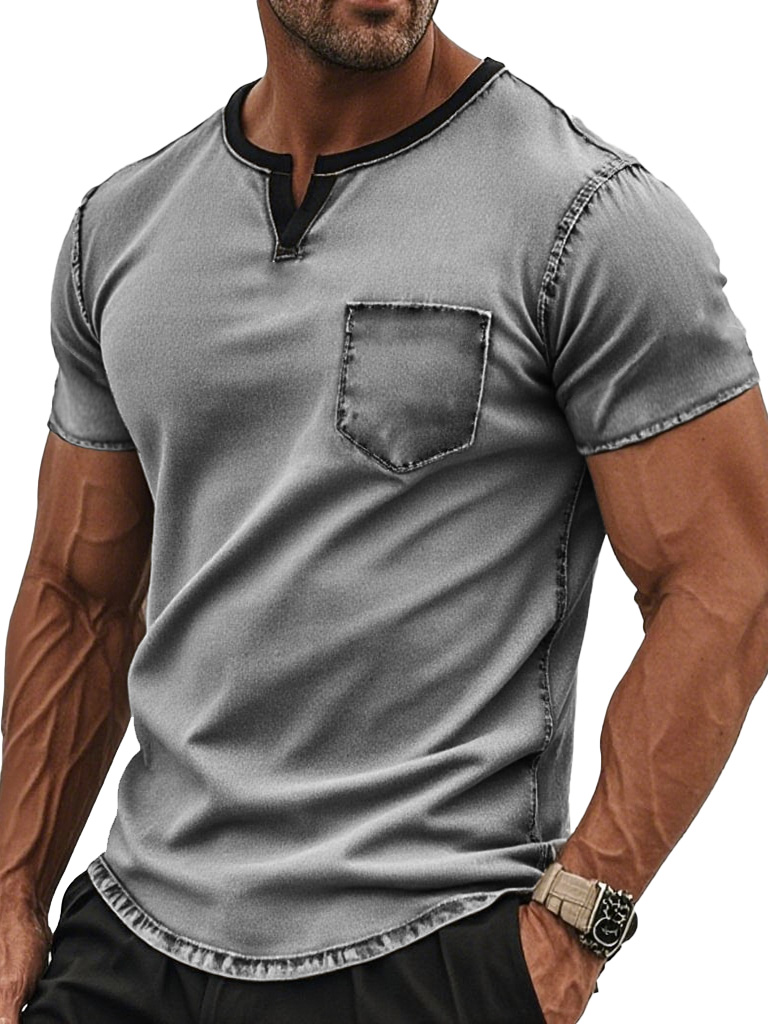 Men's Fashion Retro Pocket V-neck Pocket Short-sleeved T-shirt$39.99 USD -