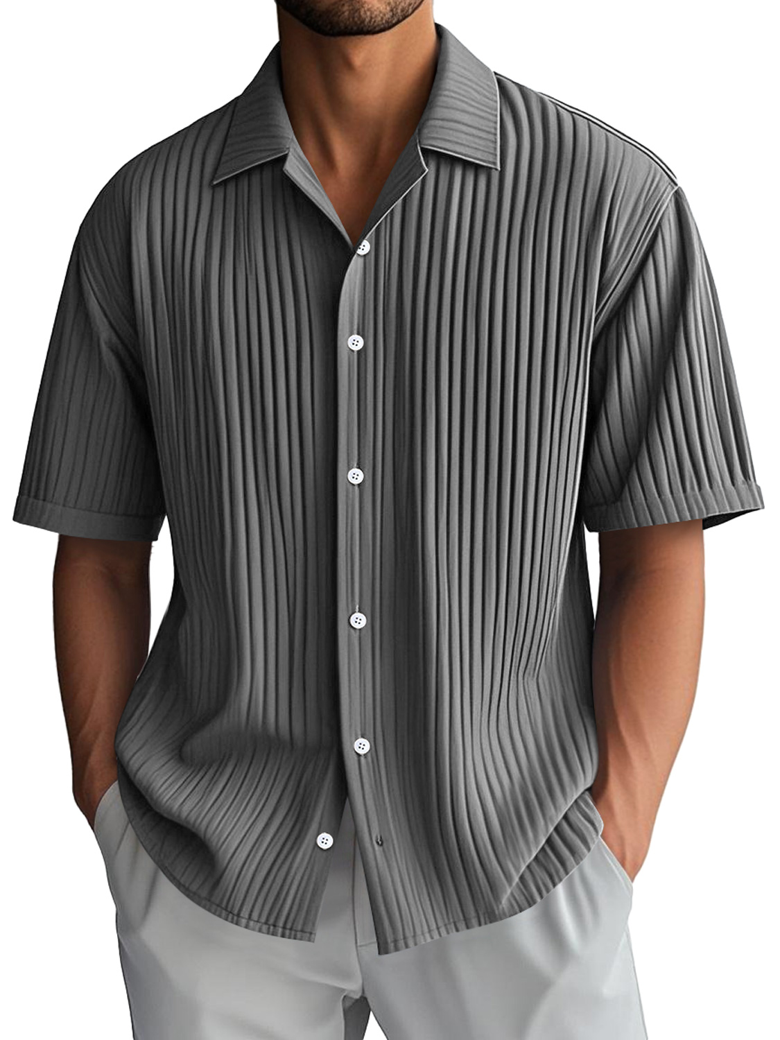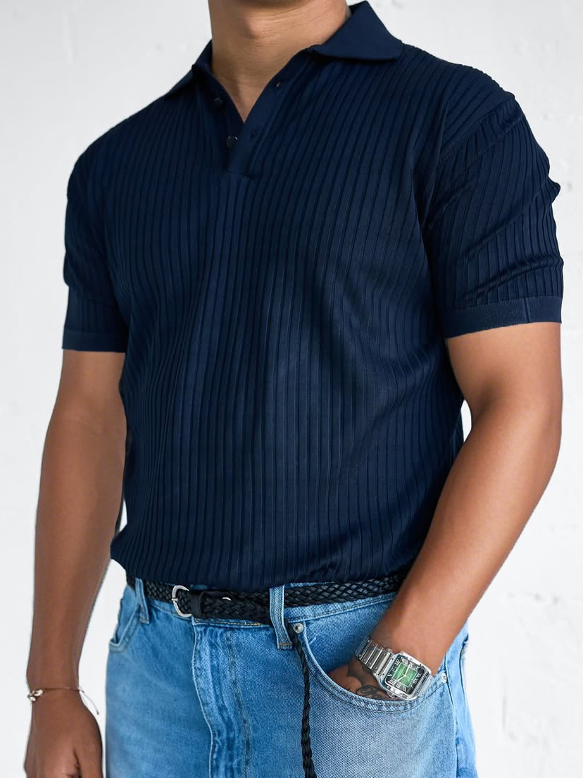 Men's Daily Casual Ribbed Lapel Comfortable Short-sleeved Shirt$39.99 USD