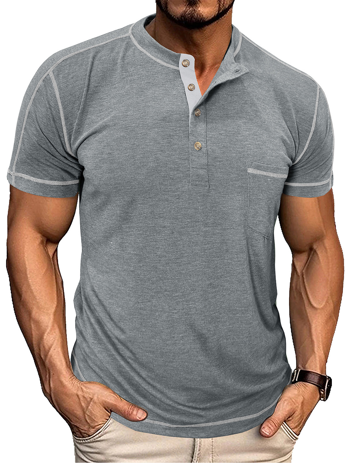 Men's Casual Simple Contrast Color Short Sleeve Henley Bottoming Shirt$39.99 USD -